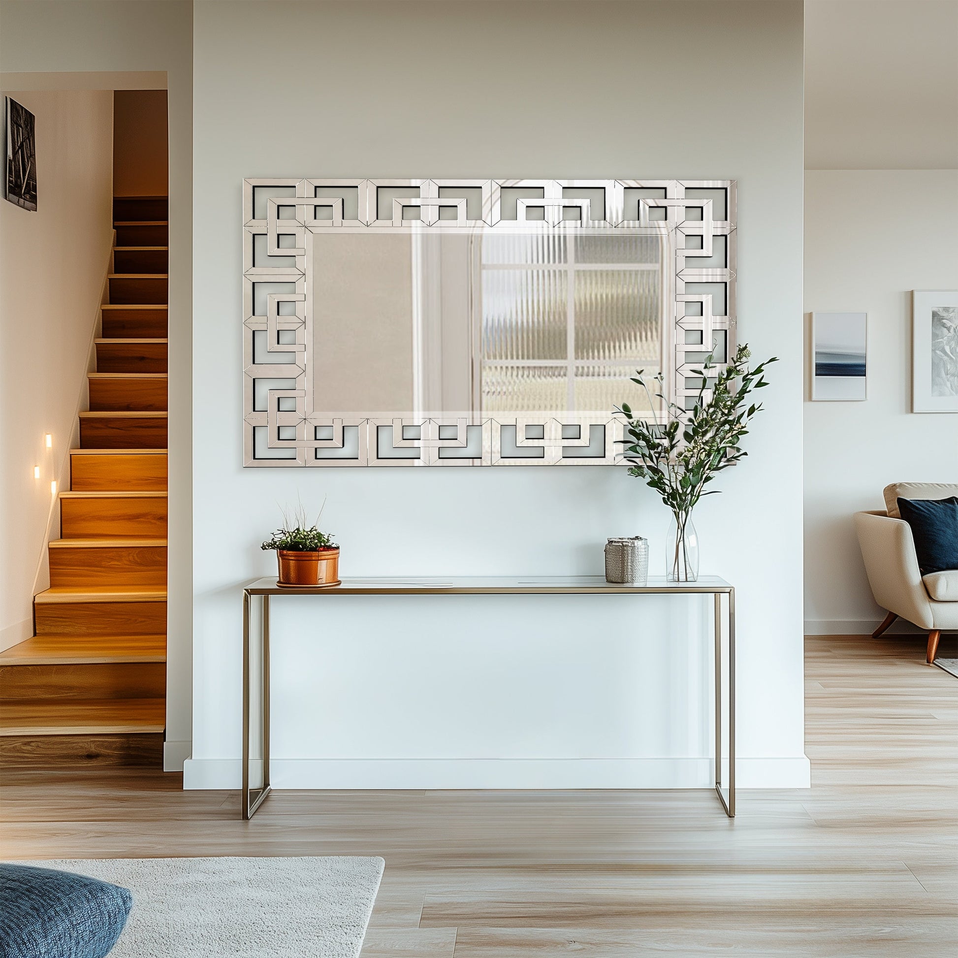 Large Wall Art Mirror Decor Silver Accent Geometric Frame