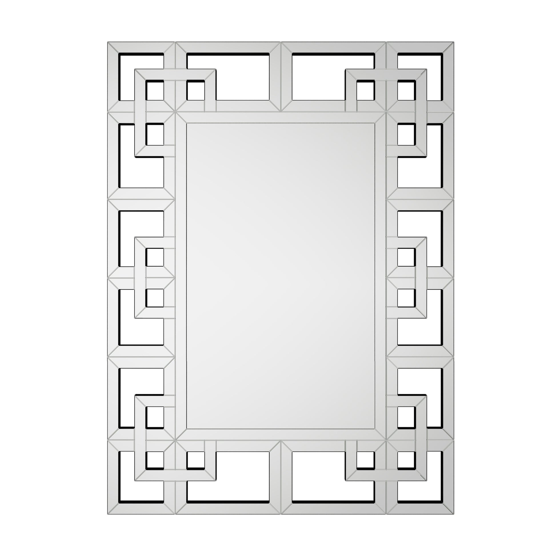 You can adorn any prominent wall with this dazzling contemporary mirror and be sure to catch people's attention.Showing openwork geometric details and smooth silver finishes, with an accent style. There is no better way to bring elegant design beauty to your home than this large wall mirror. Living room mirror will dazzle your guests and create a permanent personality for your living space. Perfect for contemporary and glam aesthetics,it showcases a rectangular mirror, which is set in a dazzling trellis-style border crafted from individual hand-beveled mirror segments. it looks stunning to set above your master bath vanity or entryway console. It can be hung horizontally or vertically.