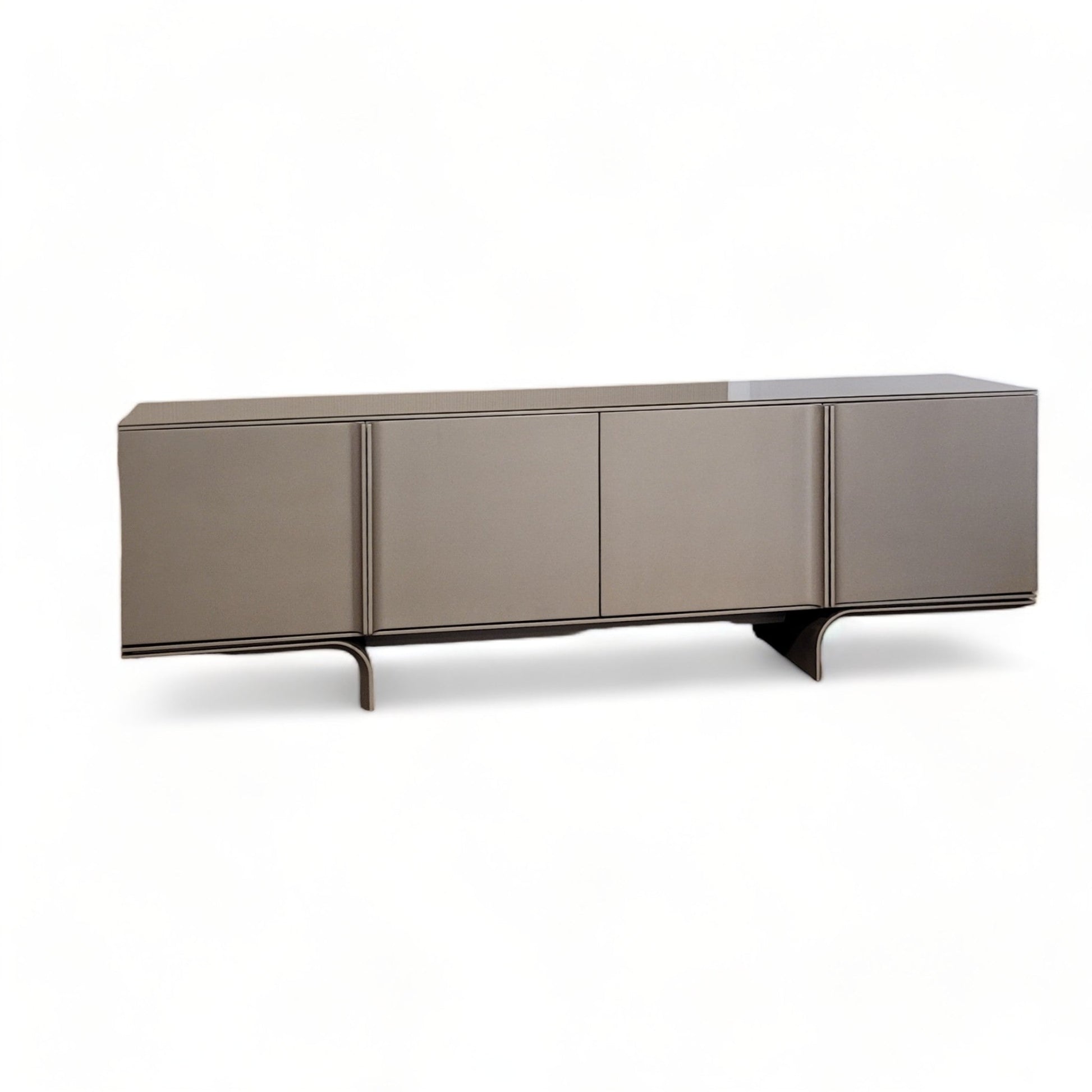 contemporain et sophistiqué fonctionnel pour la salle à manger forme rectangulaire Cadre laqué métallisé mat Urano avec quatre portes Étagères intérieures 2 tiroirs intérieurs rembourrés de velours Plateau en verre de couleur urano pieds en bois de forme courbée en laque Urano (gris-verdâtre) idéal pour les salles à manger modernes fabriqué au Brésil |