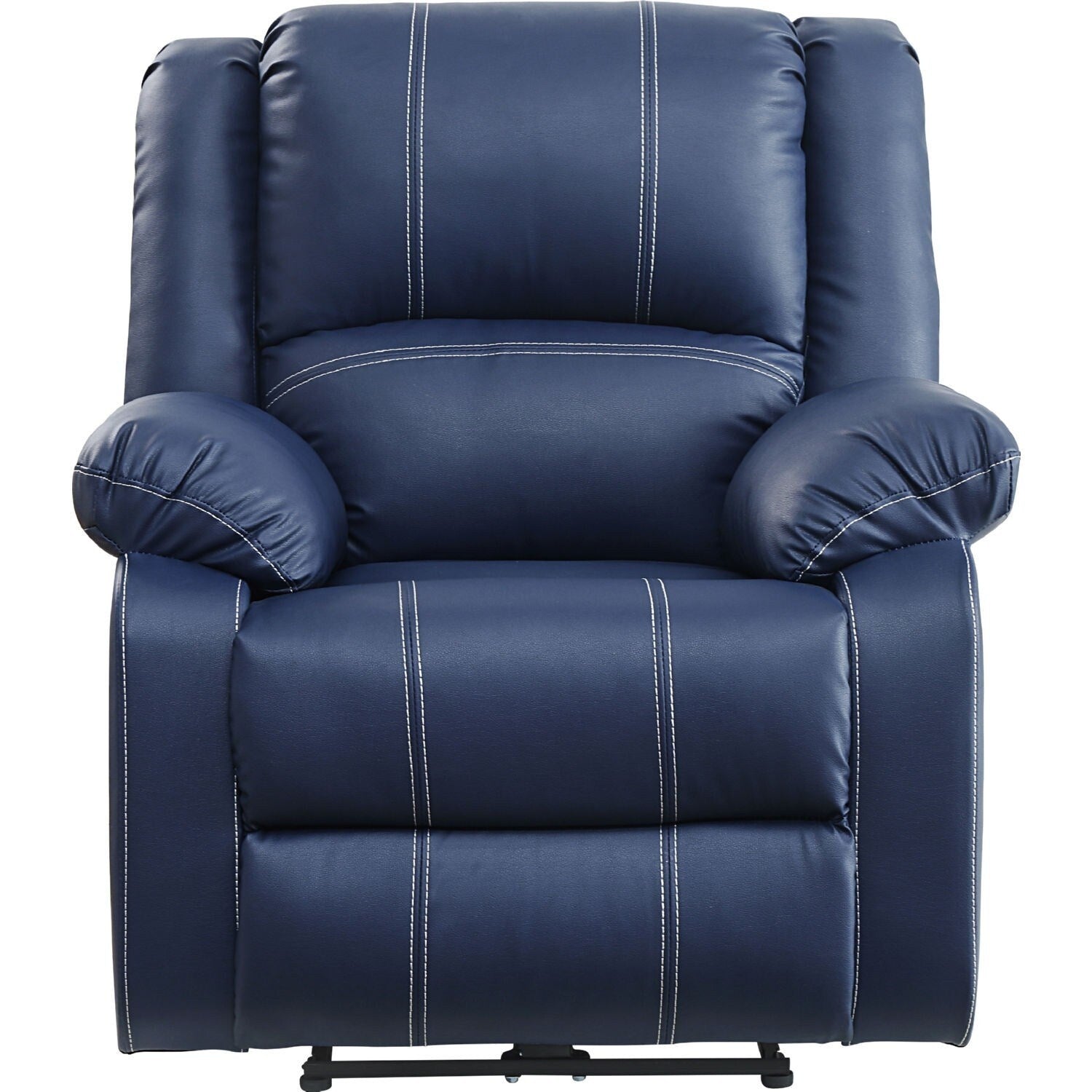 This power reclining sofa is a wonderful choice for any living space, it combines luxurious blue faux leather with the comfort of foam padding in addition to the sturdier wood and metal constructed structure that gives a proper reclining seating. Comfortable contoured pocket coil seats, soft to the touch while the reclining footrests offer tremendous leg support. The recliner chair includes rocker function that allows you to rock gently up and down for ultimate comfort.