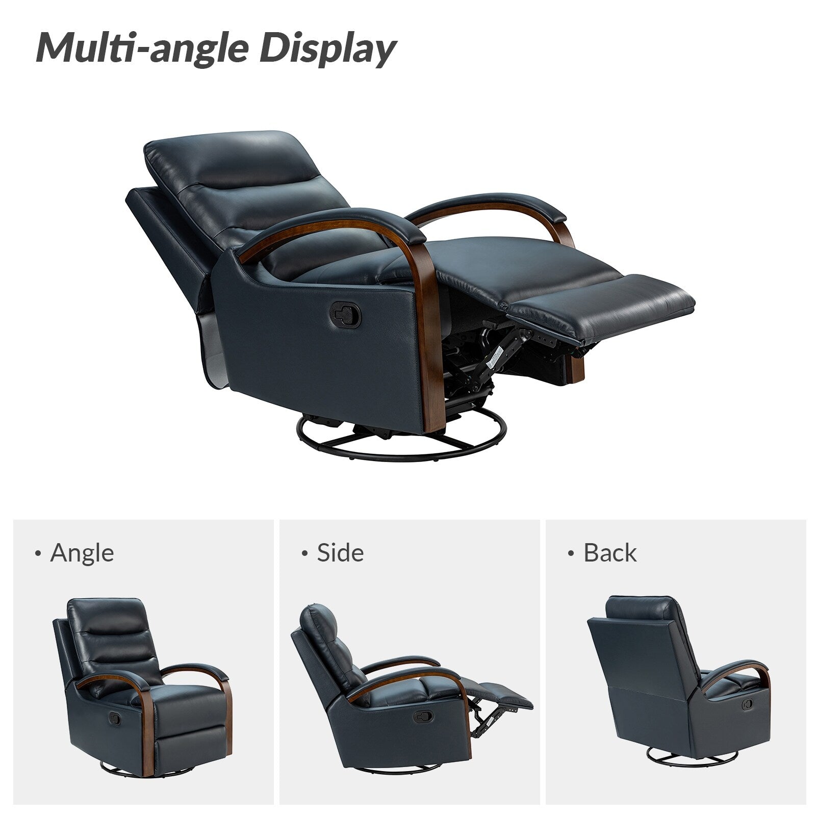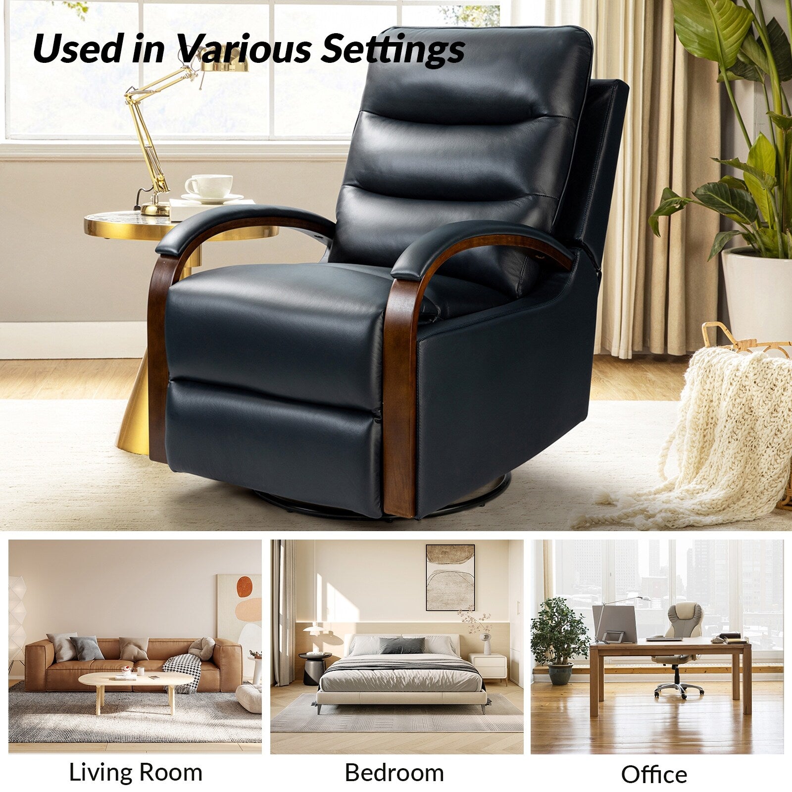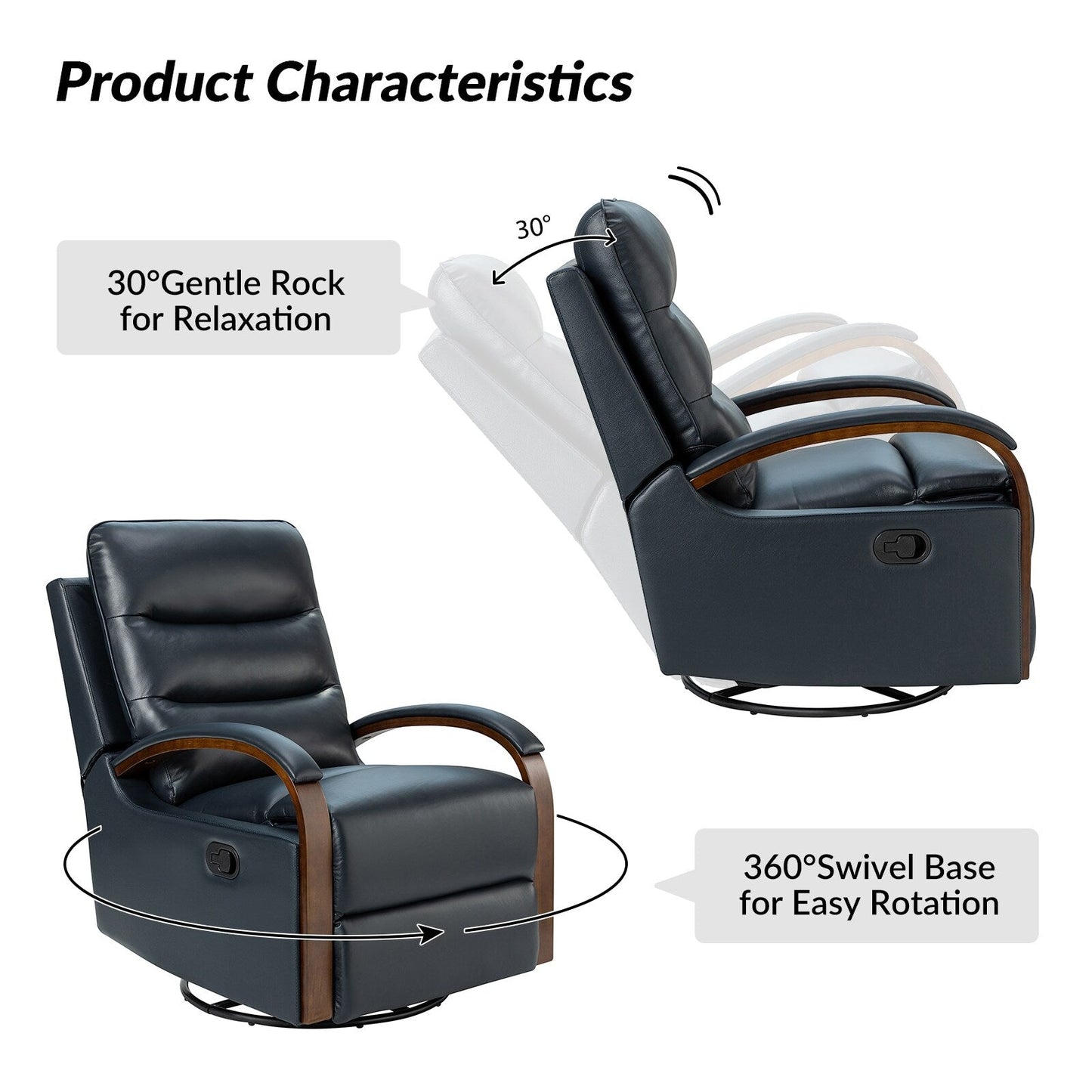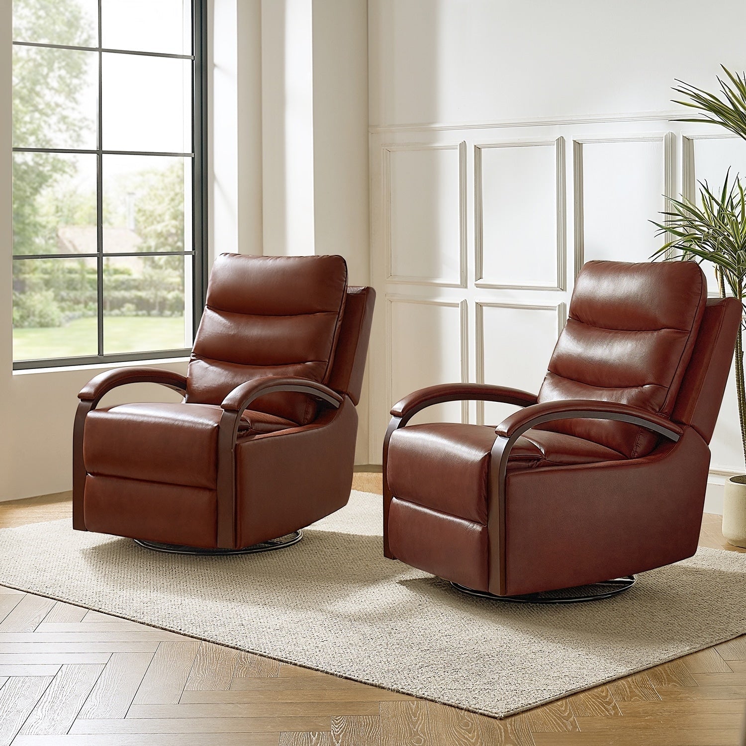 Leopold Genuine Leather Swivel Rocking Manual Recliner Chair with Wooden Arm Accents Set of 2 by HULALA HOME