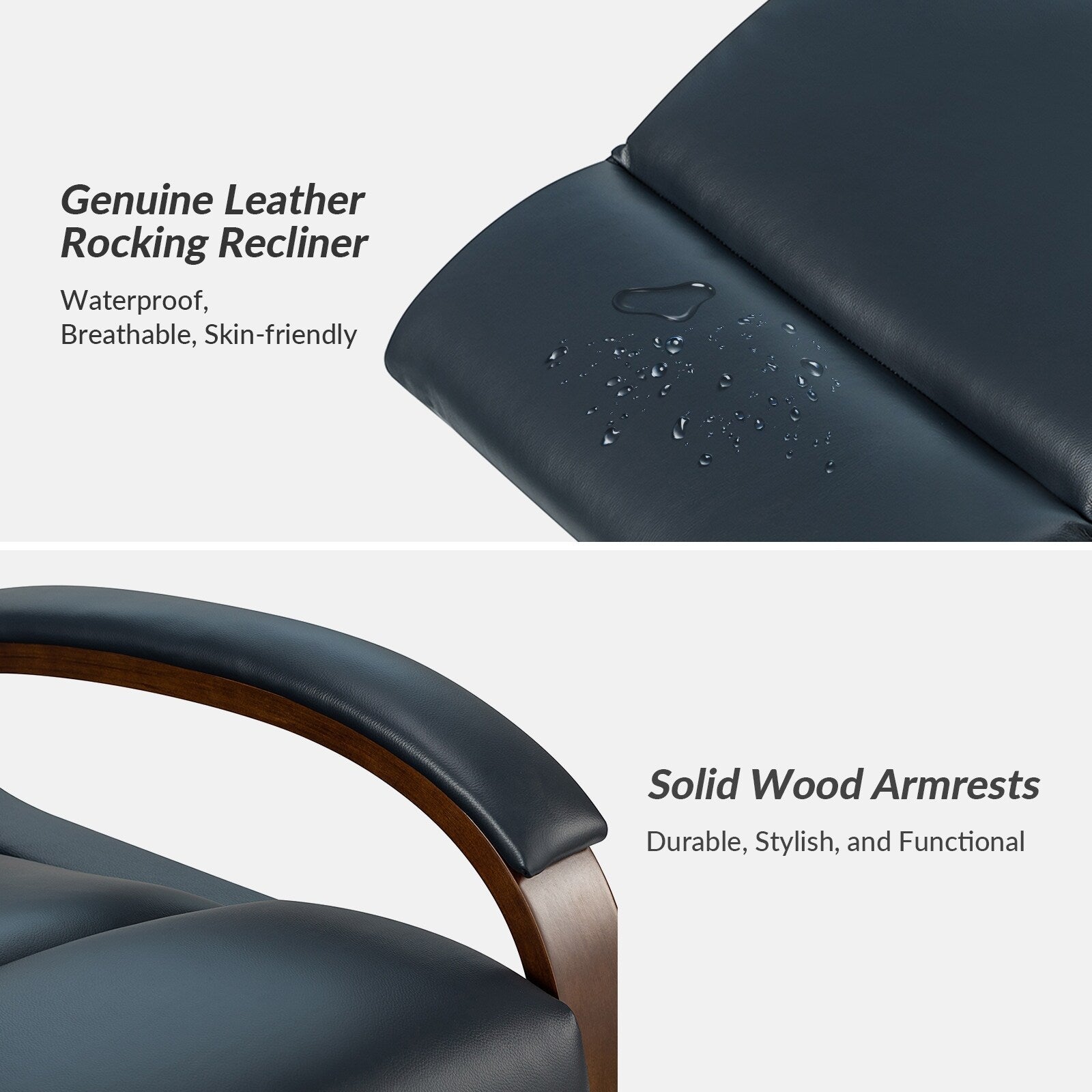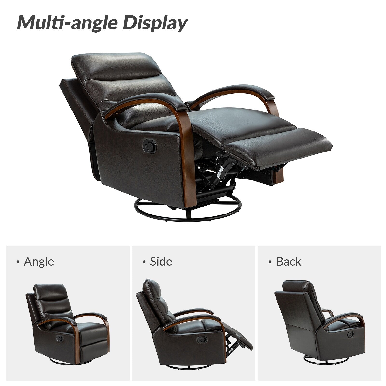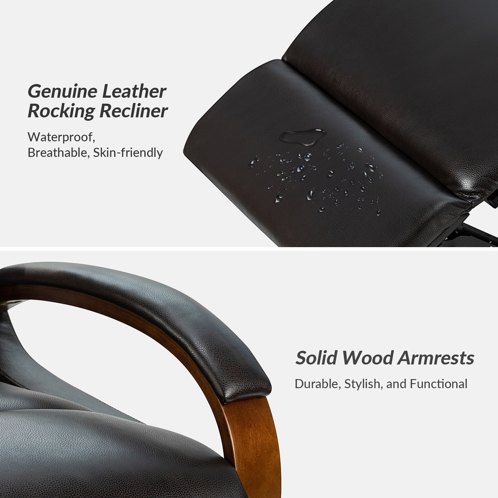 Leopold Genuine Leather Swivel Rocking Manual Recliner Chair with Wooden Arm Accents Set of 2 by HULALA HOME