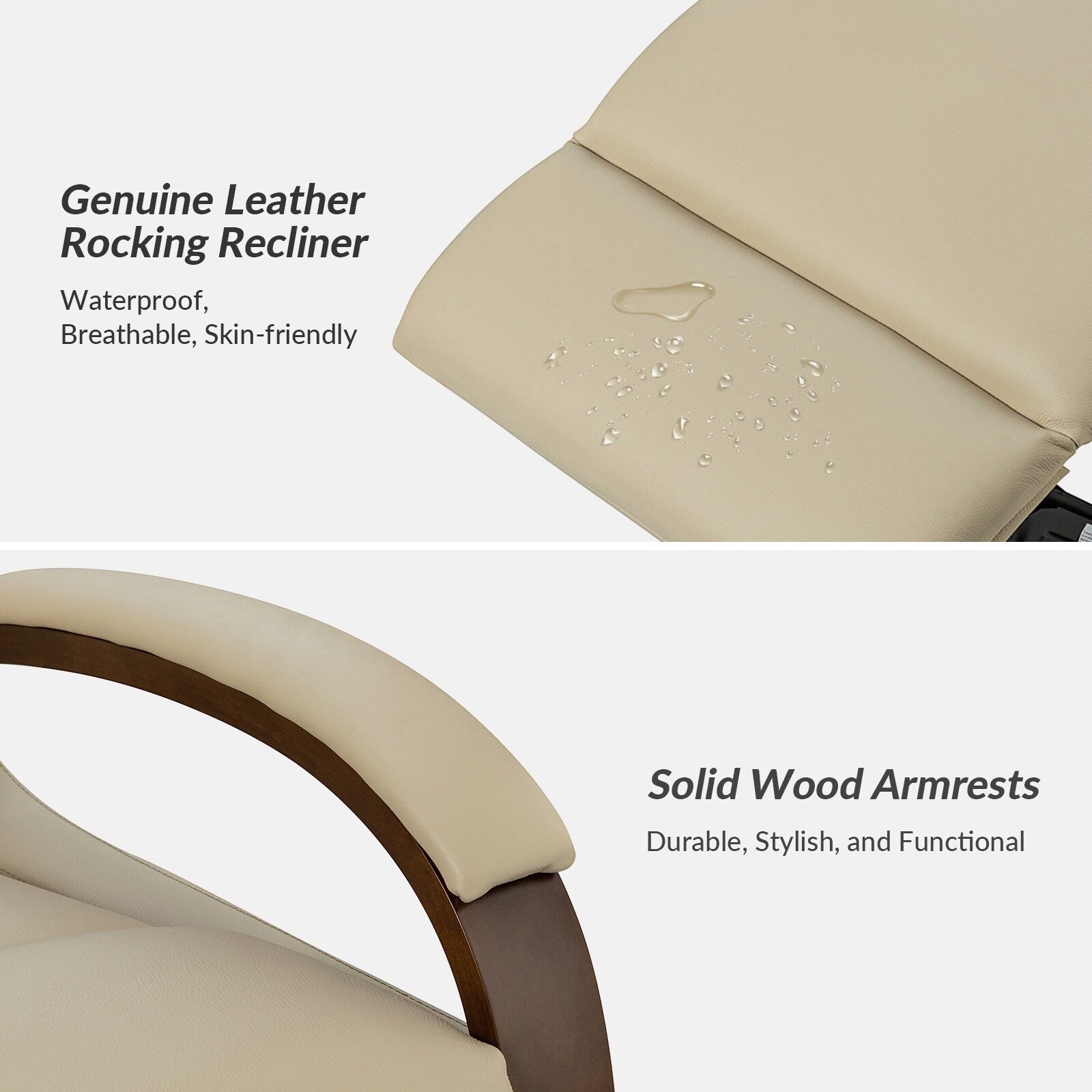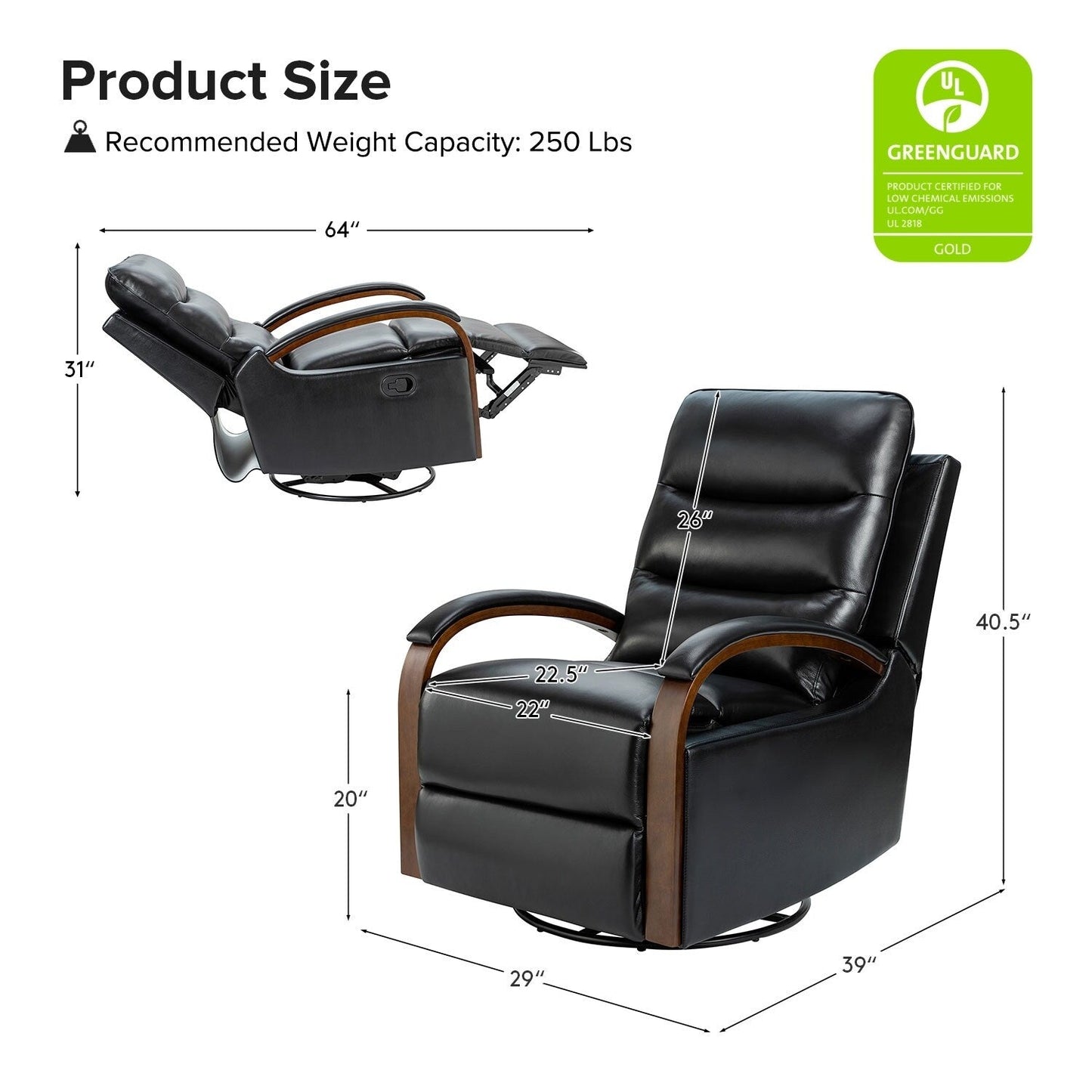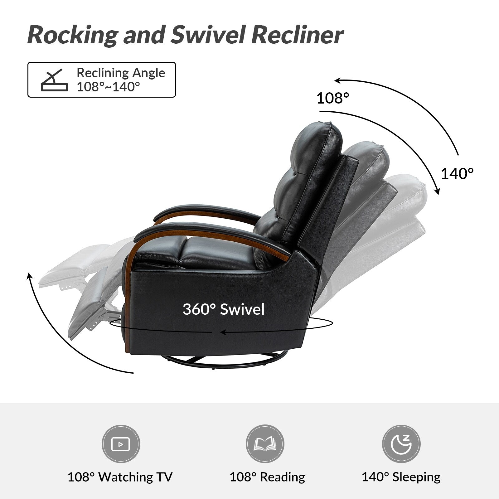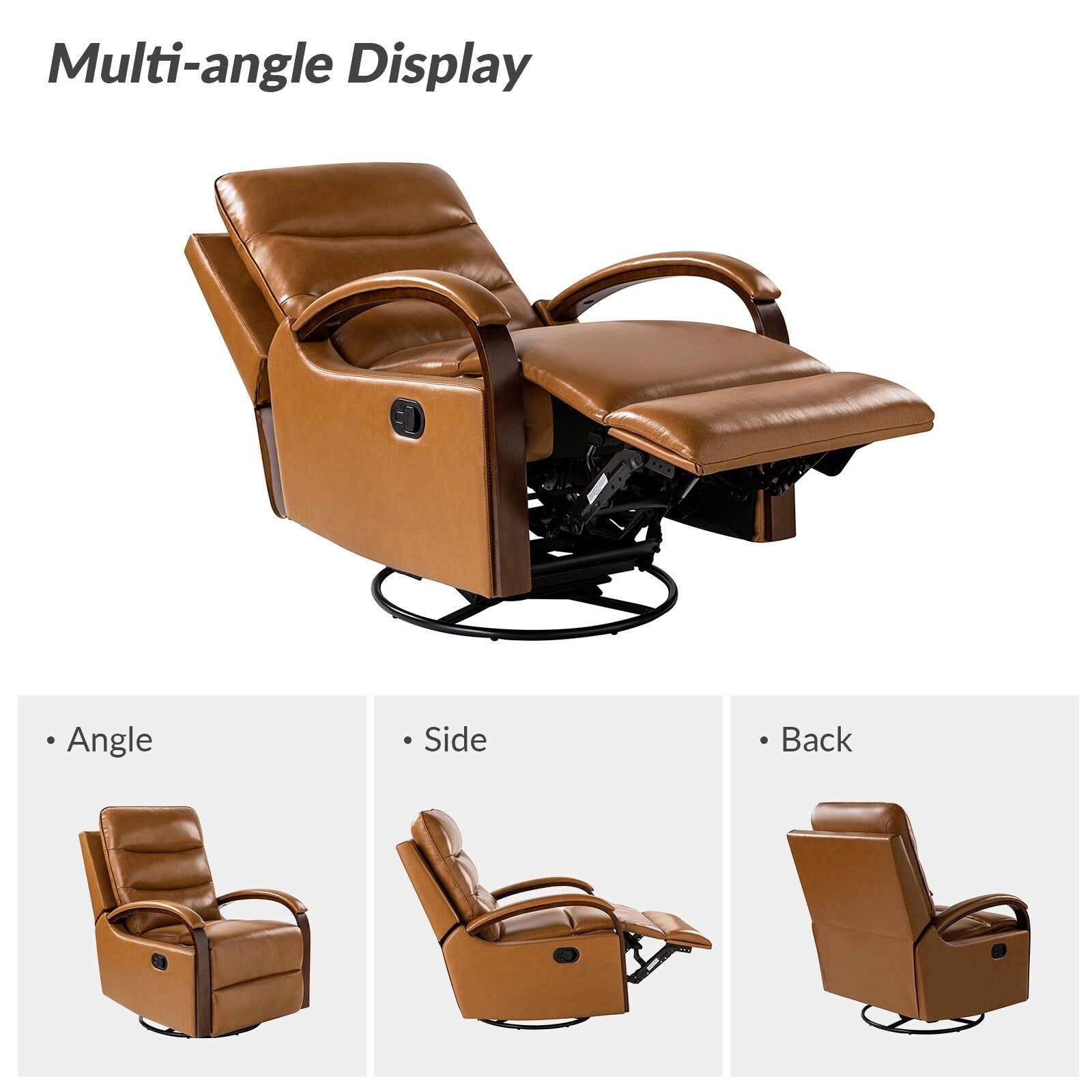 Leopold Genuine Leather Swivel Rocking Manual Recliner Chair with Wooden Arm Accents Set of 2 by HULALA HOME