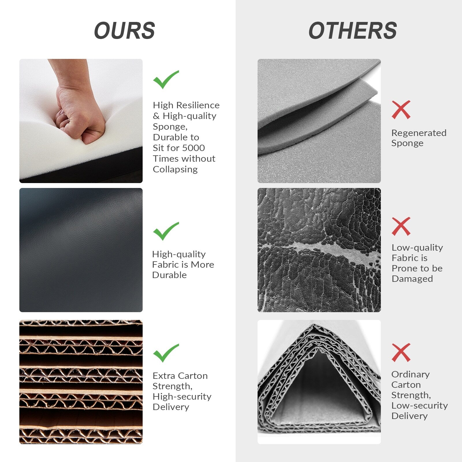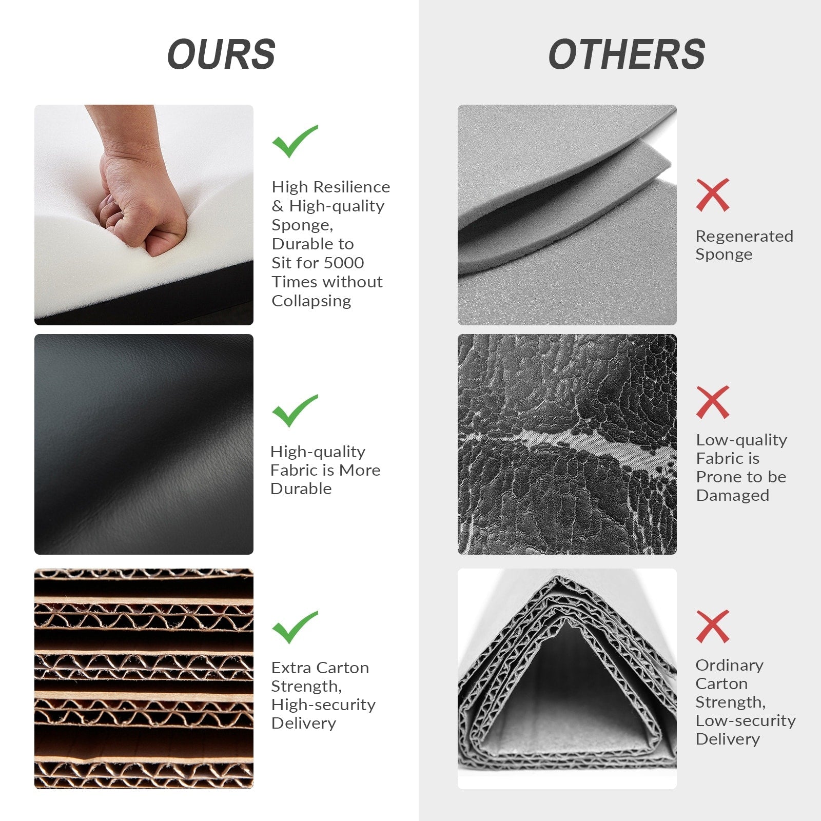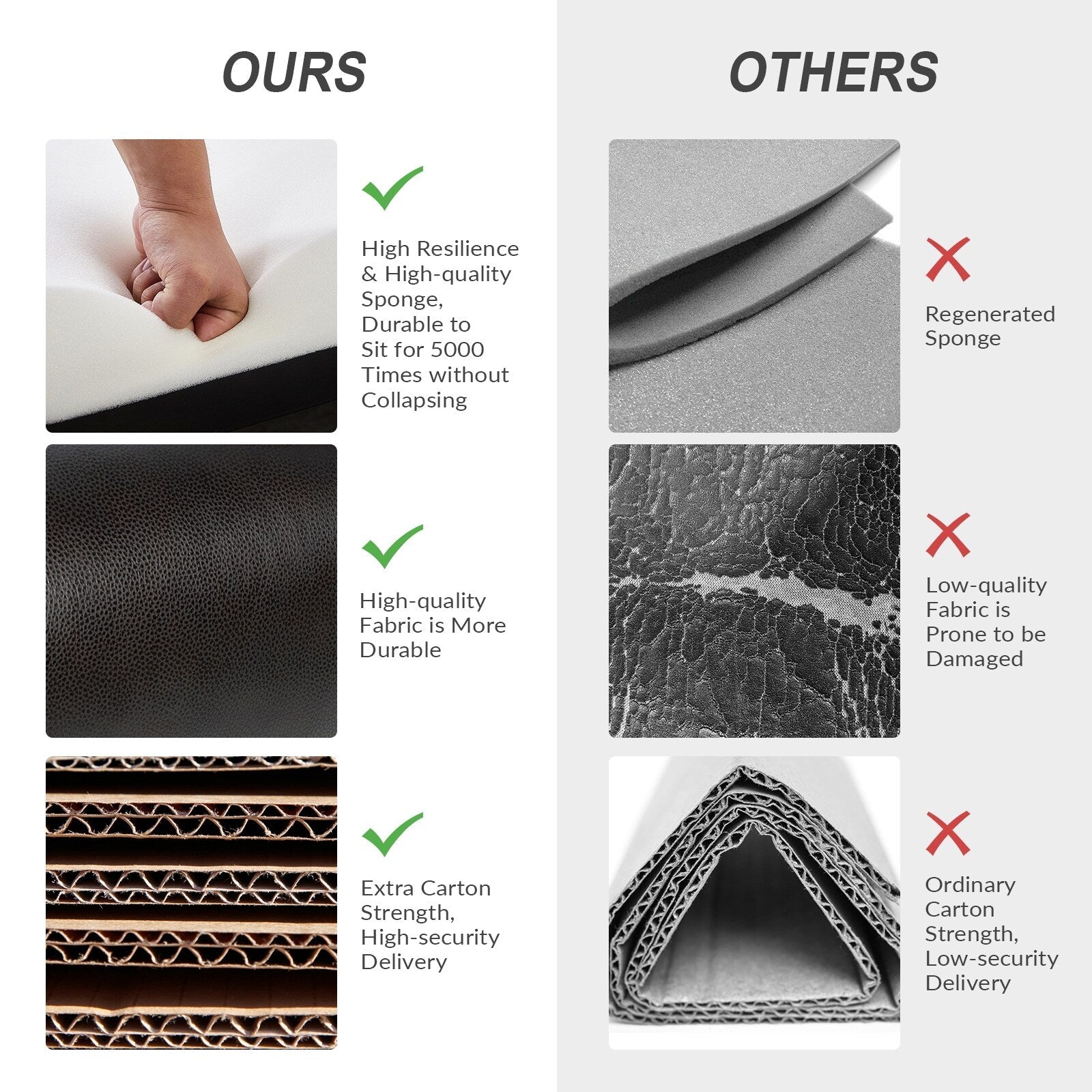 - LEATHER RECLINER CHAIR: The recliner set is upholstered in a combination of genuine and vegan leather. This upholstery choice offers a luxurious feel and durability. The genuine leather provides a soft and smooth texture, while the vegan leather adds to durability and affordability of the recliner set.