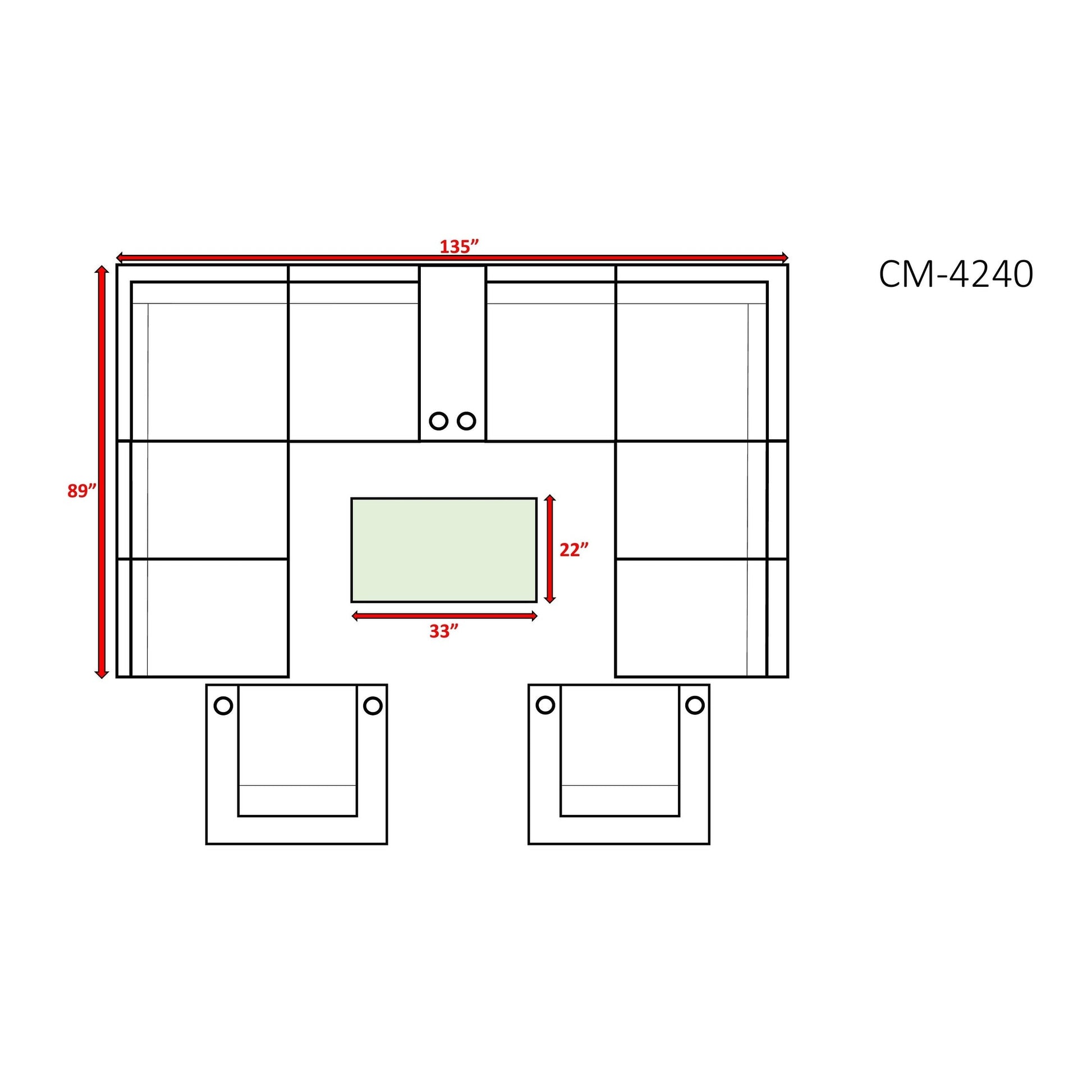 - Middle: 28 inches W x 33 inches D x 26 inches H