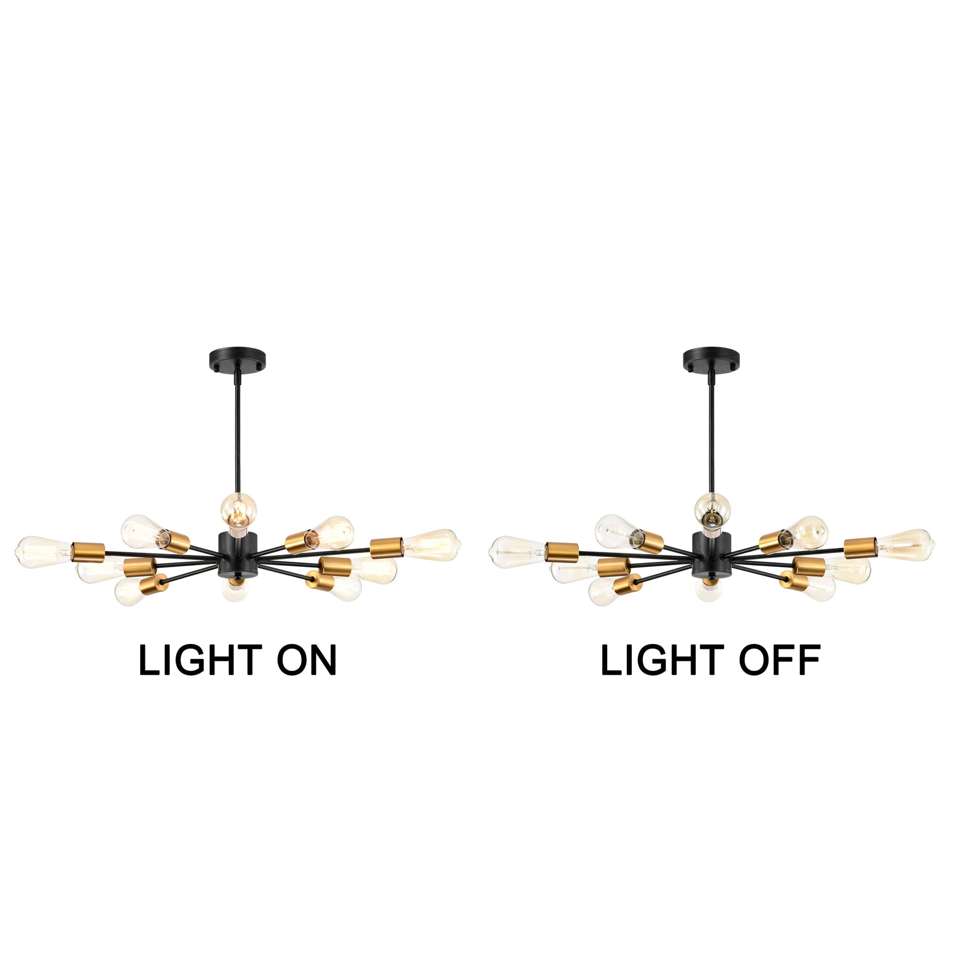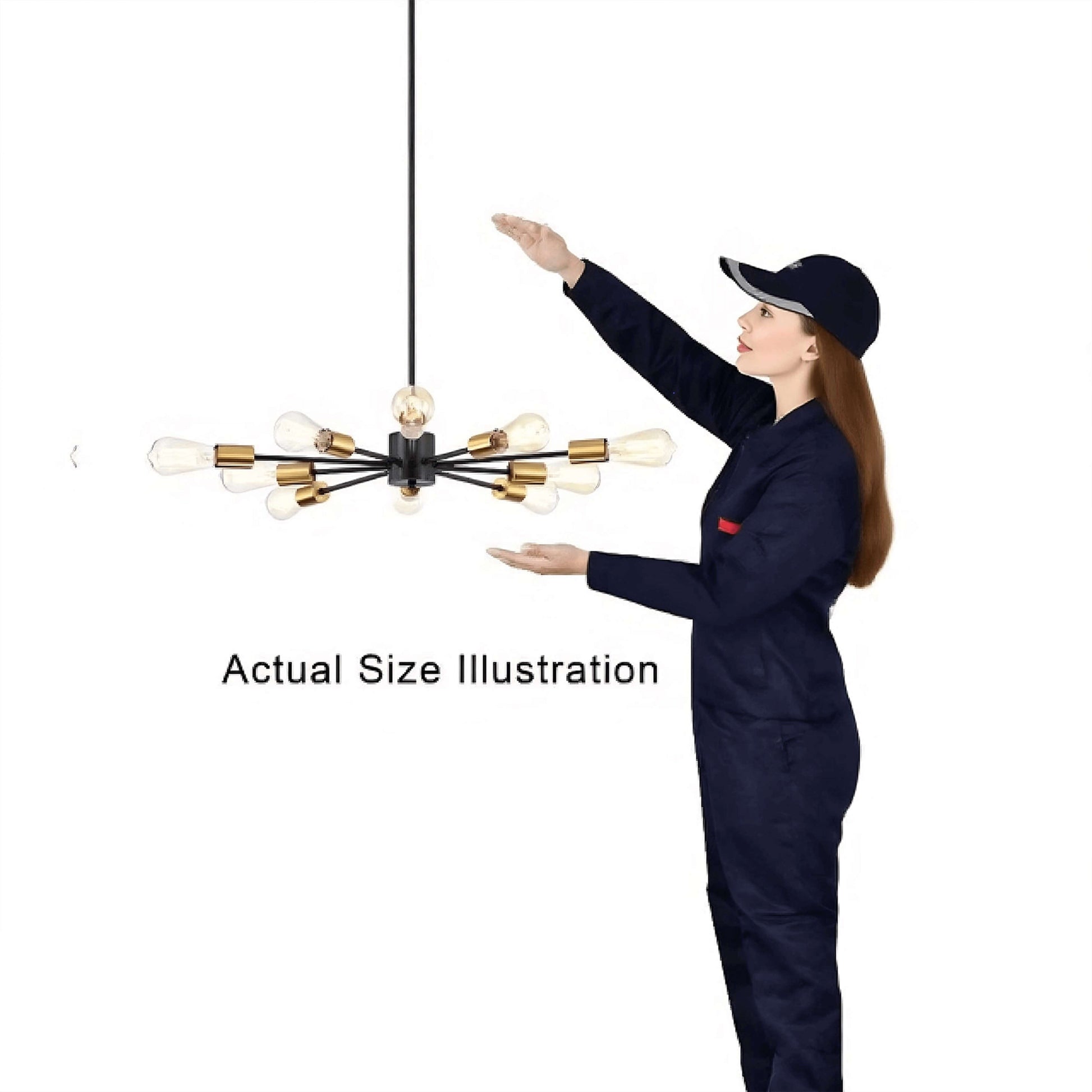 Add a touch of glamor to your space with the Lorena Antique Black and Metallic Gold Sputnik 10-Light Chandelier. Crafted from iron, this chandelier features an antique black finish with a subtle brush of brown and metallic gold accents, adding a vintage vibe to your decor. With ten lights, it provides ample illumination for any room in your home. This indoor chandelier comes with adjustable rods, allowing you to customize the hanging height to suit your needs.