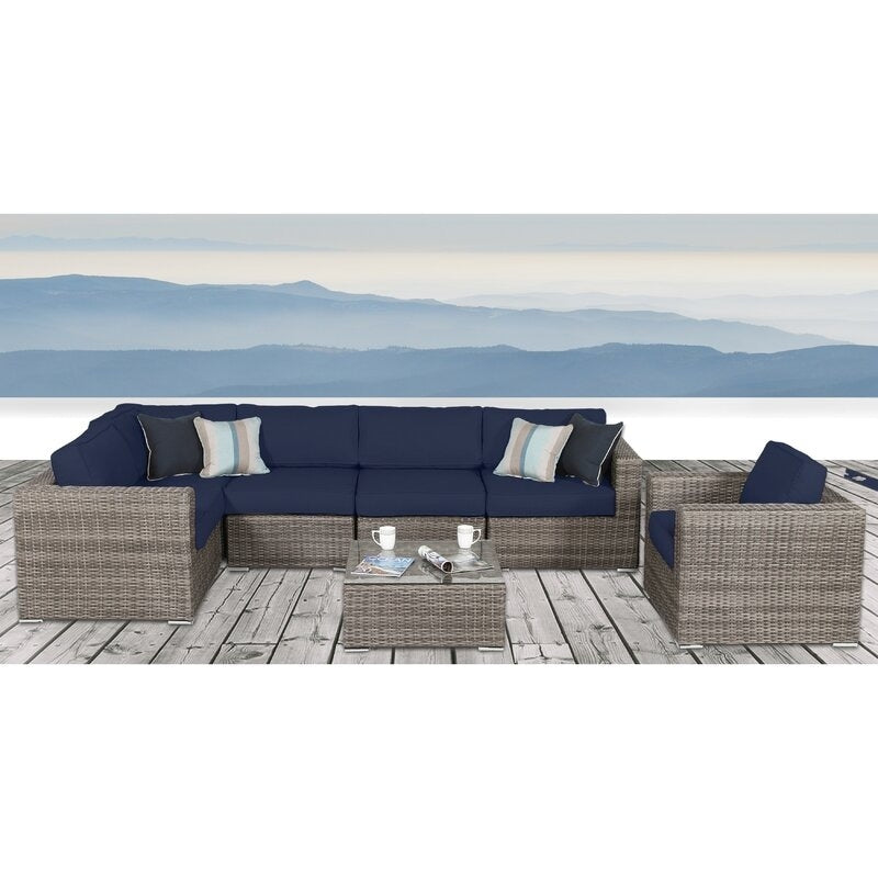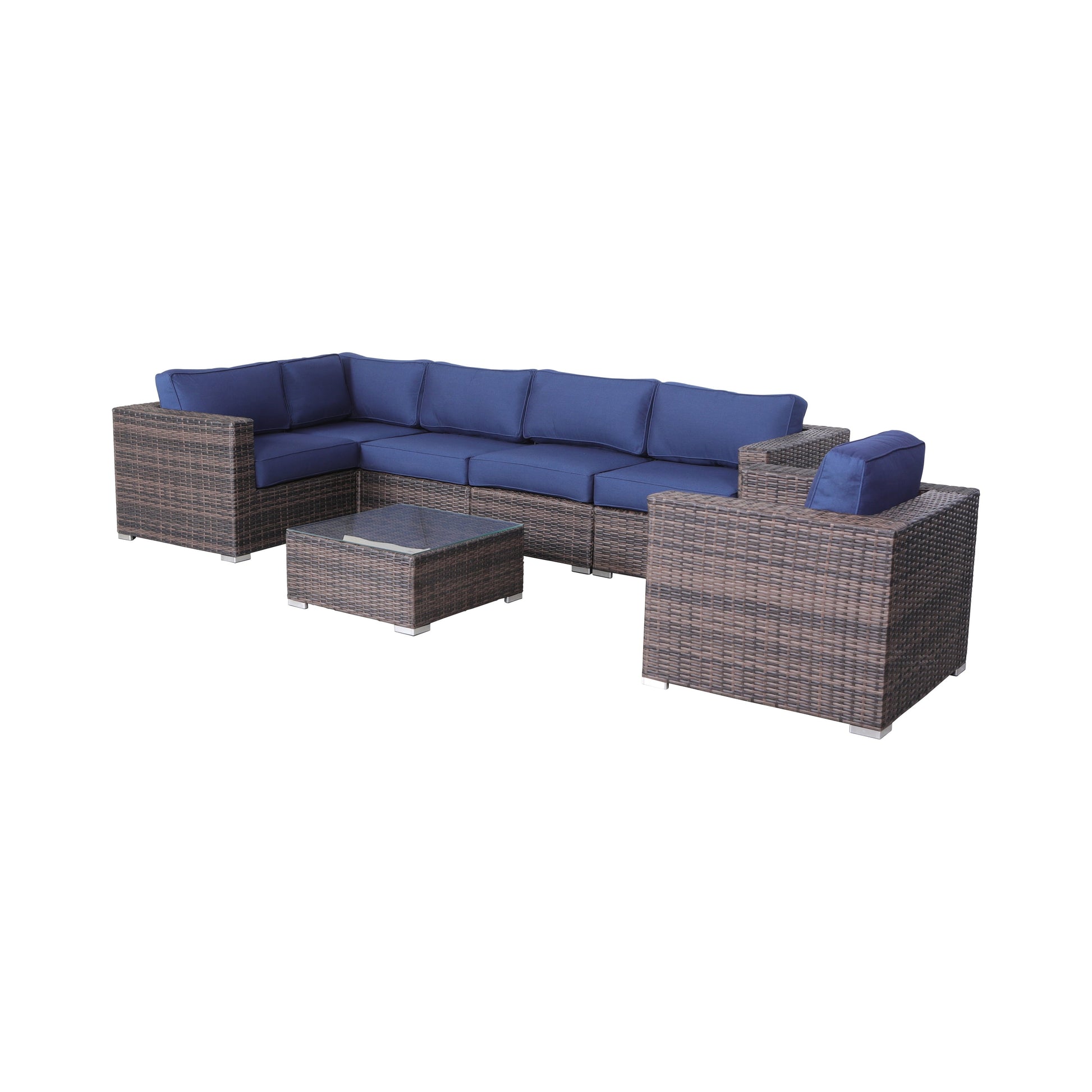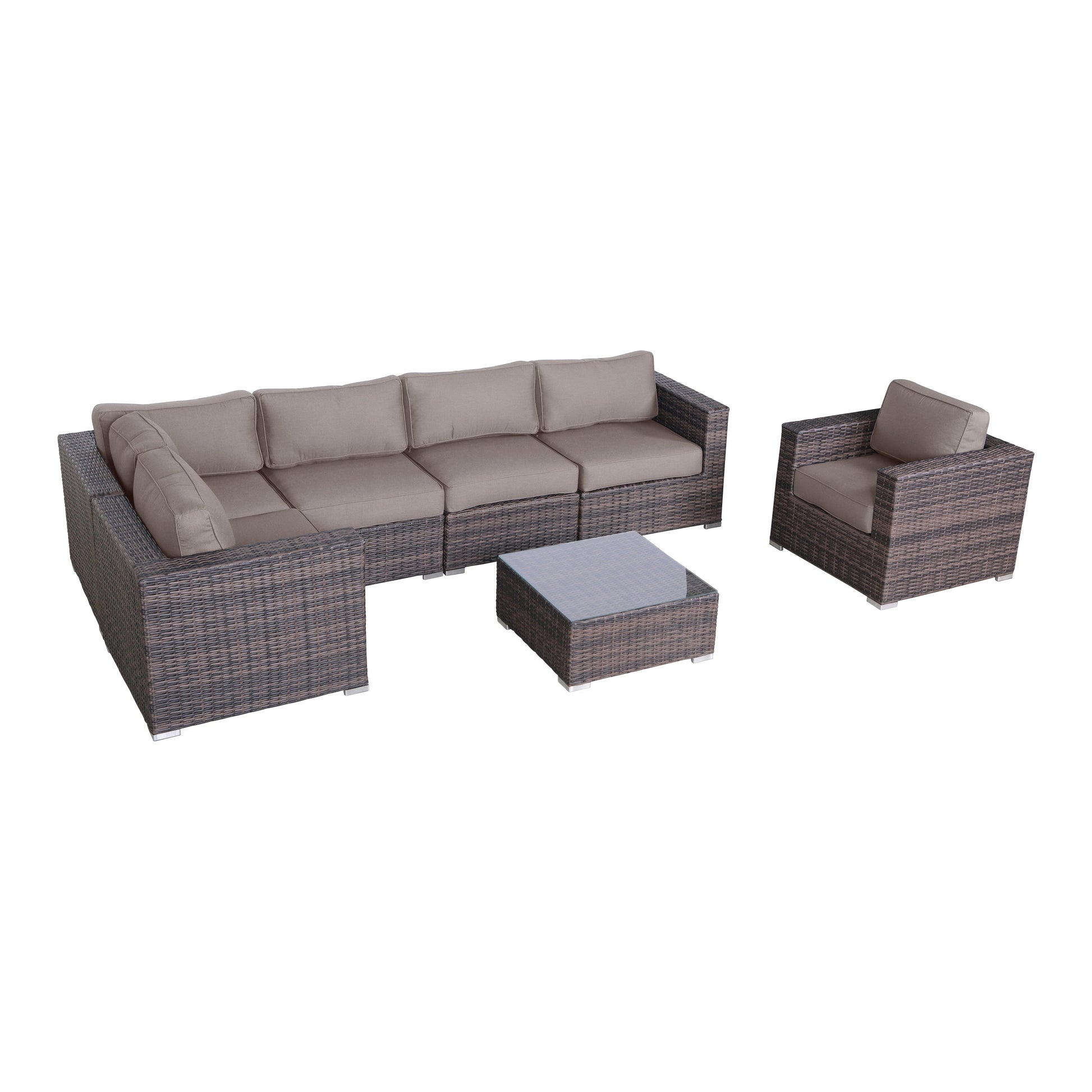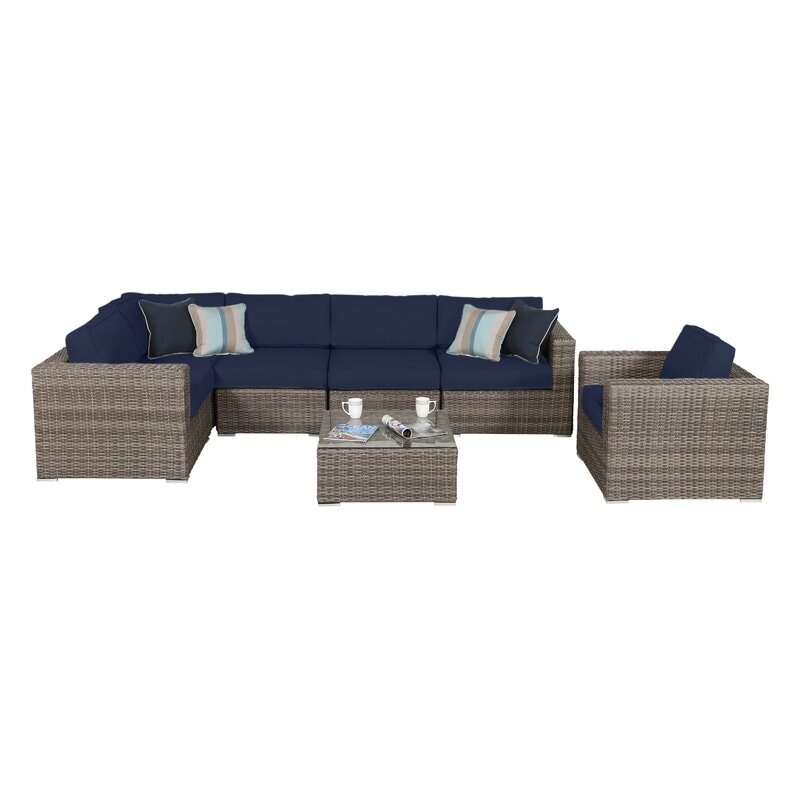 LSI 7 Piece Rattan Sunbrella Sectional Seating Group with Cushions