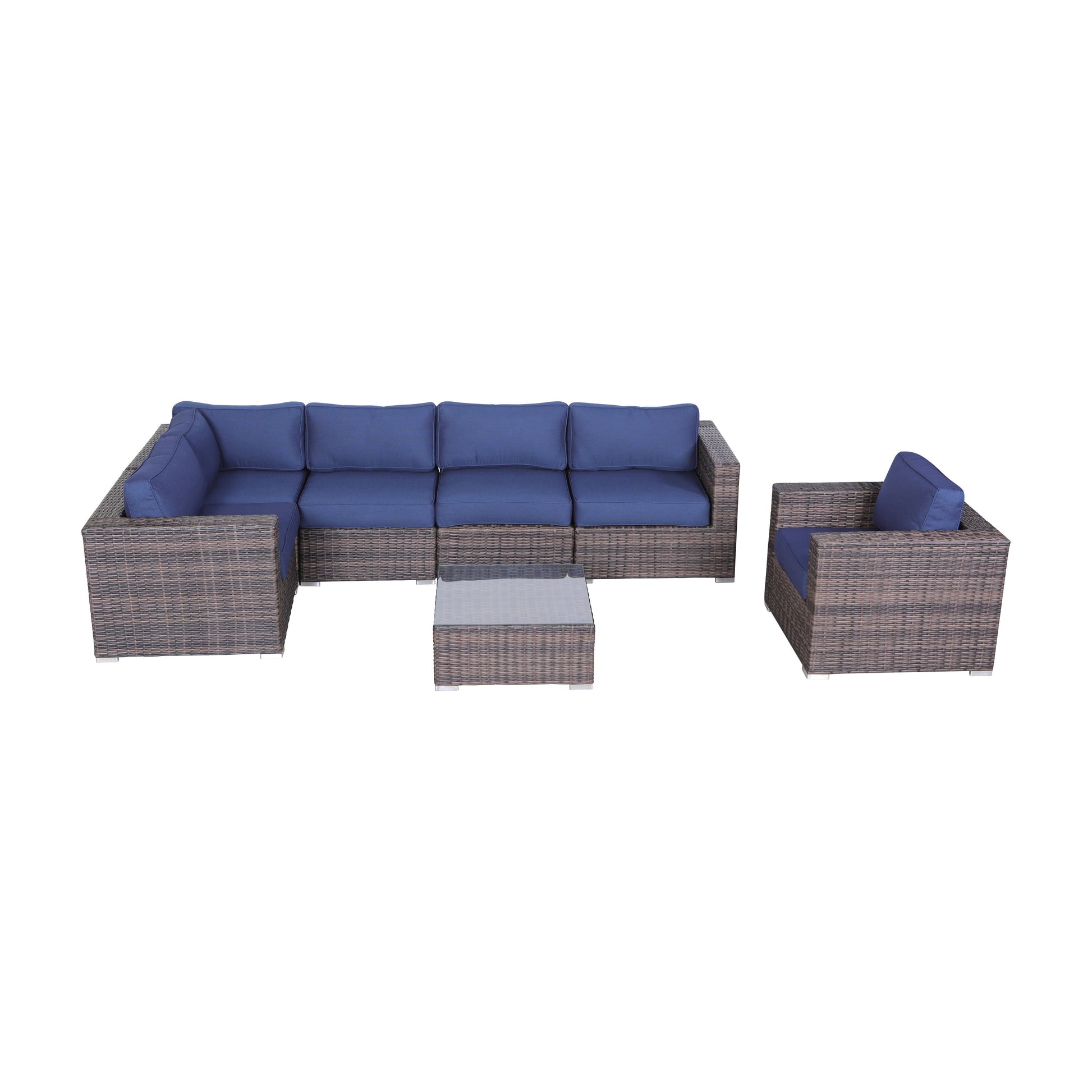 Gather your loved ones and bask in comfort and style with this 7-piece sectional seating group. Made with weather-resistant resin wicker-wrapped aluminum frames, this set is built to last all year round. The high top table with glass tabletop and six high-backed bar stools provide ample seating for entertaining. The modern design showcases sleek lines that elevate any outdoor space. Assembly is required, so invite your friends to help and enjoy drinks and dinner alfresco.