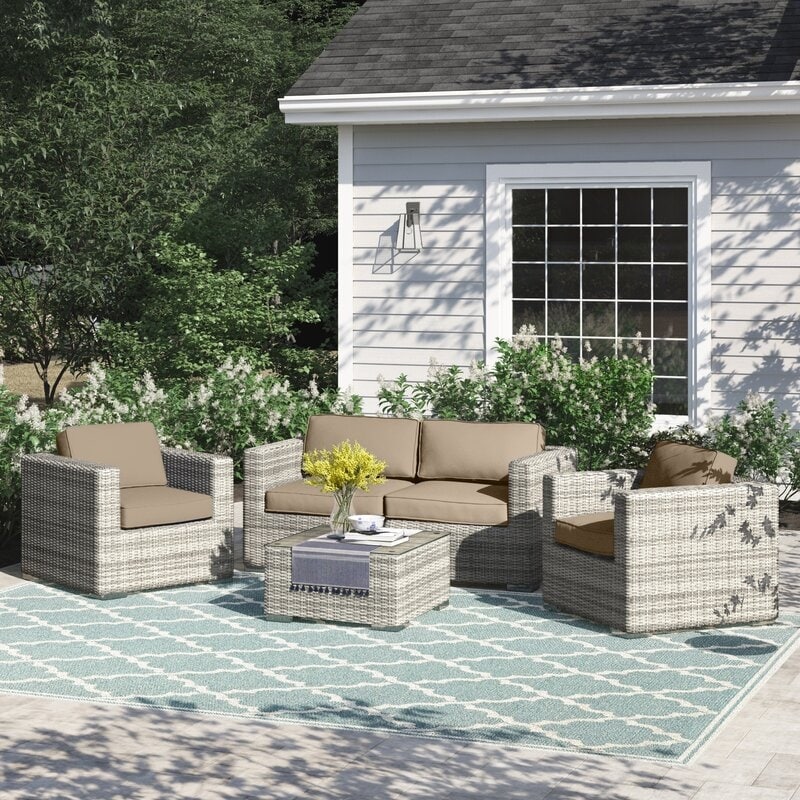 Get ready to unwind in style with the LSI Verona Wicker 5-piece Resort Grade Outdoor Furniture Patio Sofa Set. Constructed from weather-resistant wicker, this set is a perfect combination of comfort and durability. With generously-sized dimensions and luxury Ultrasoft cushions, it's ideal for spending quality time with loved ones outdoors.