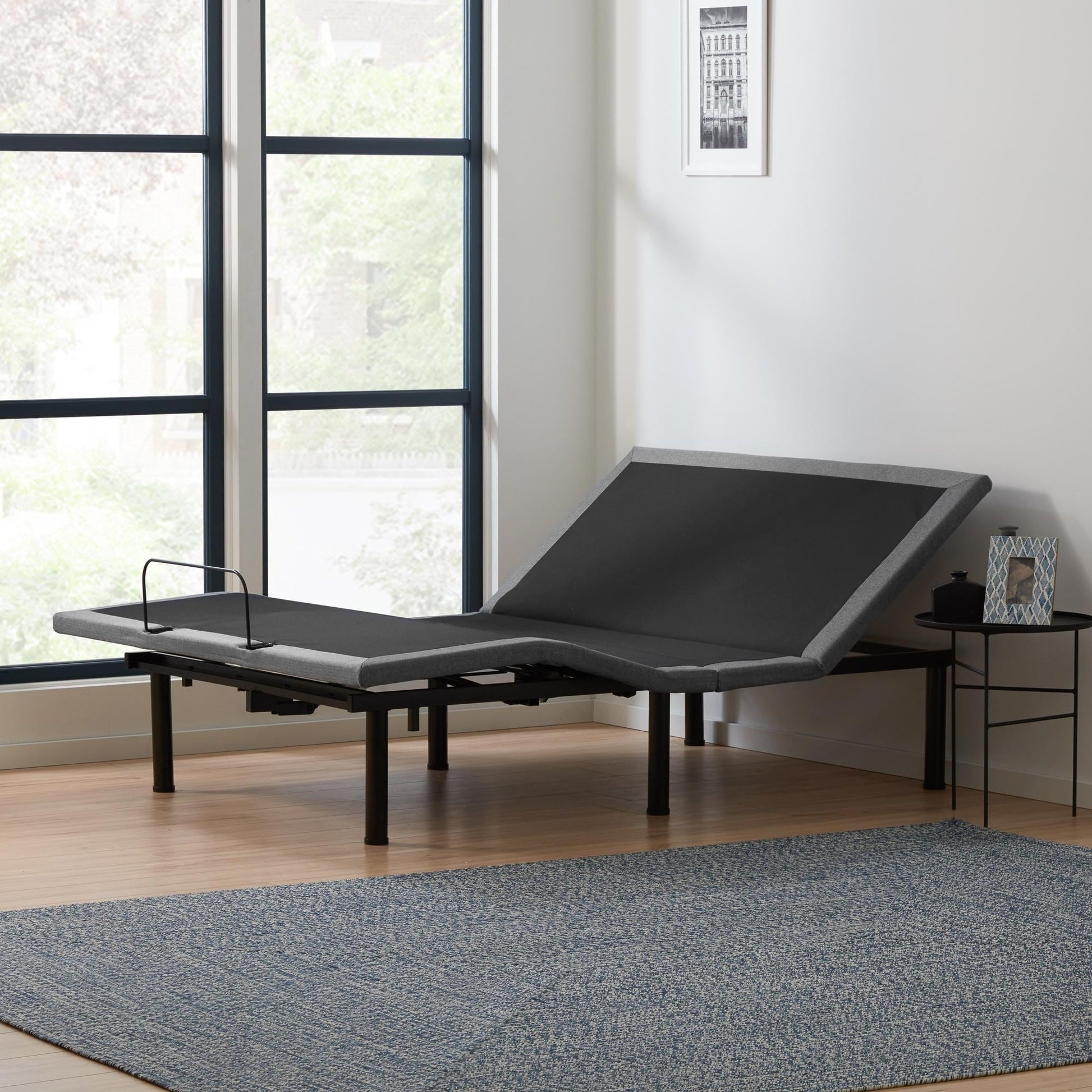 - Adjustable bed base with independent head incline (0-60 degrees) and foot incline (0-45 degrees)