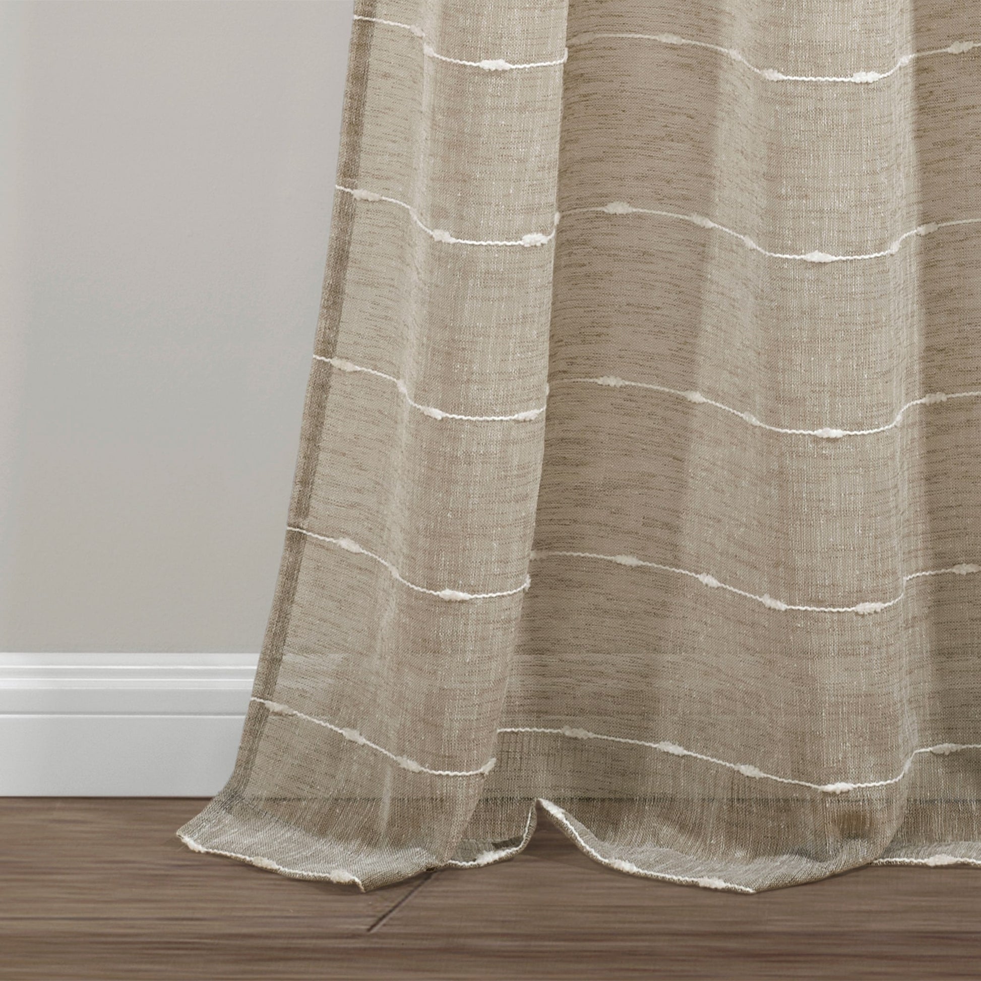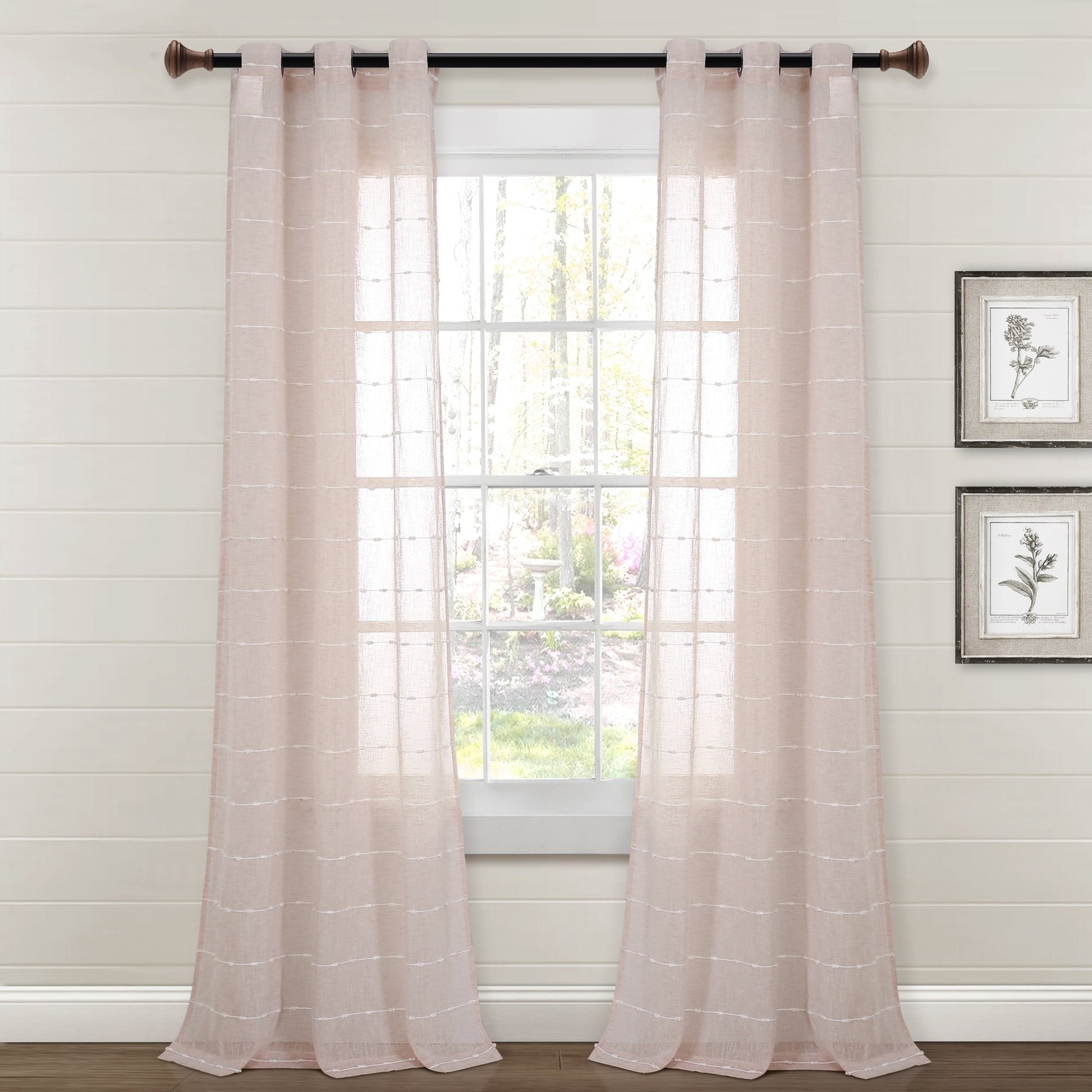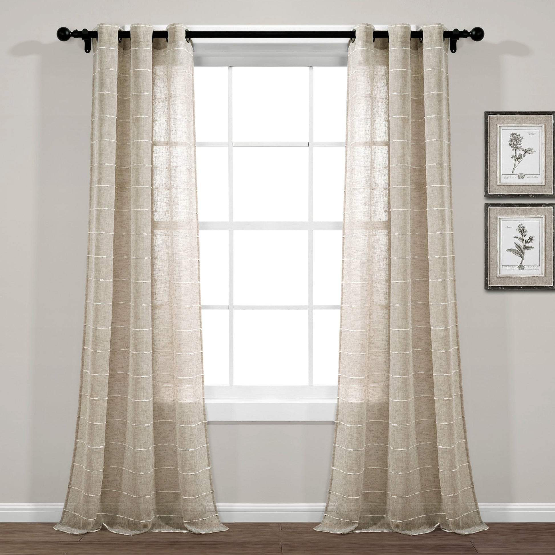 Lush Decor Farmhouse Textured Grommet Sheer Window Curtain Panel Pair