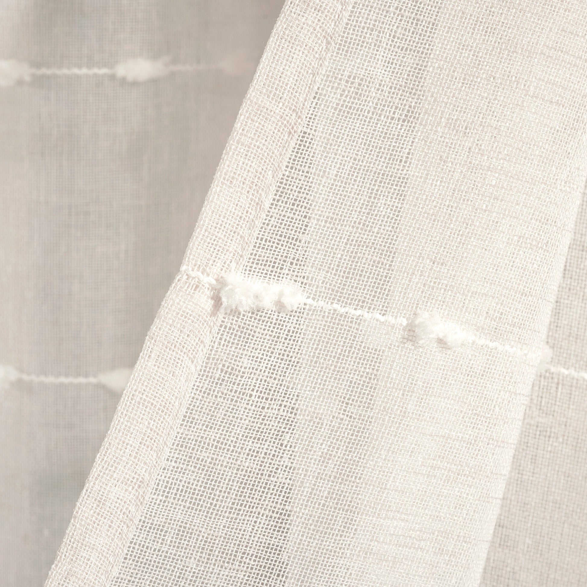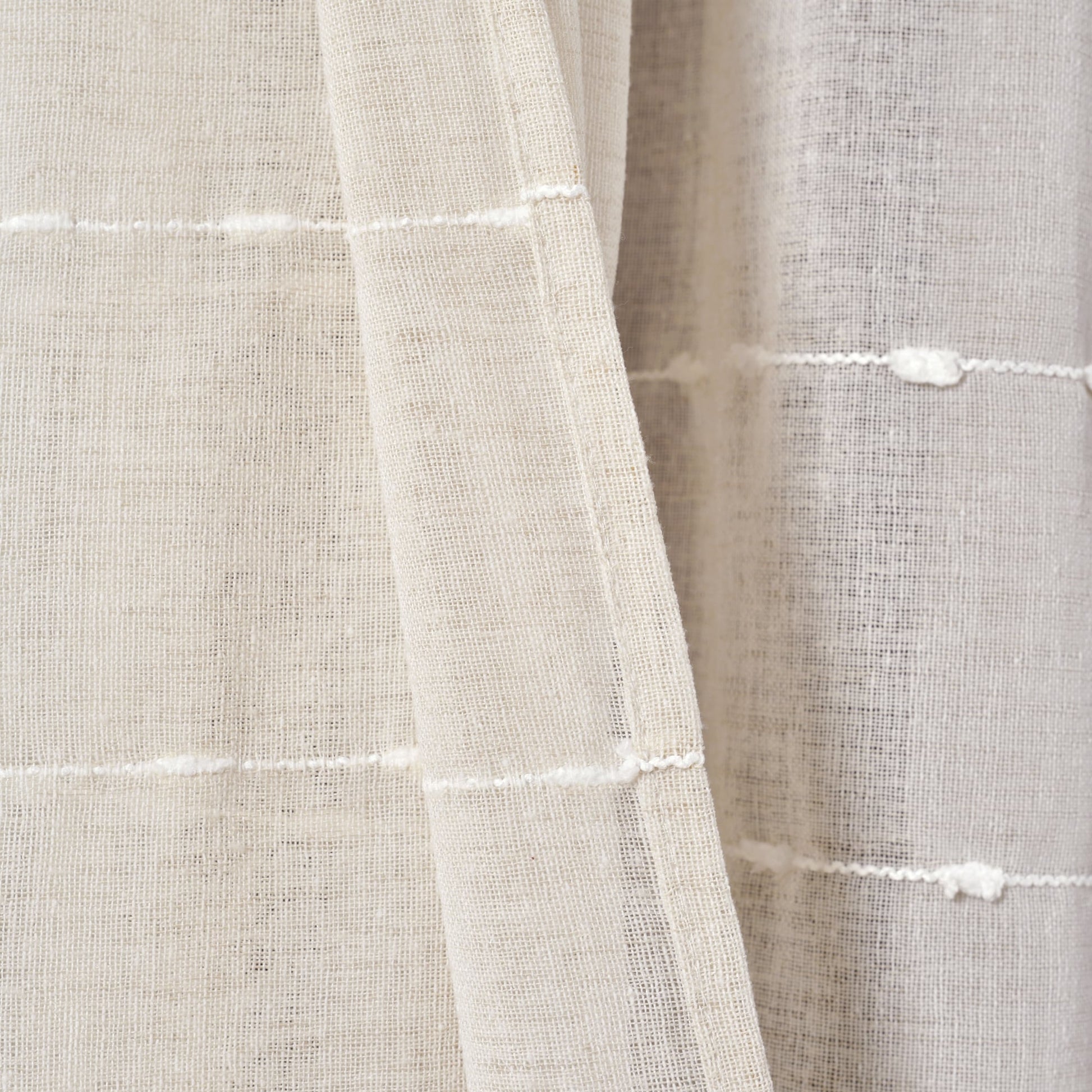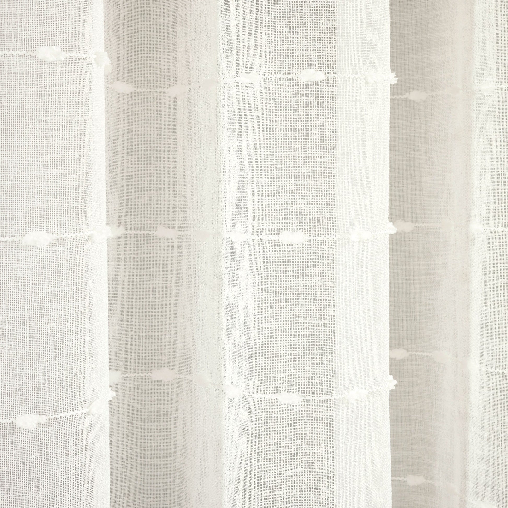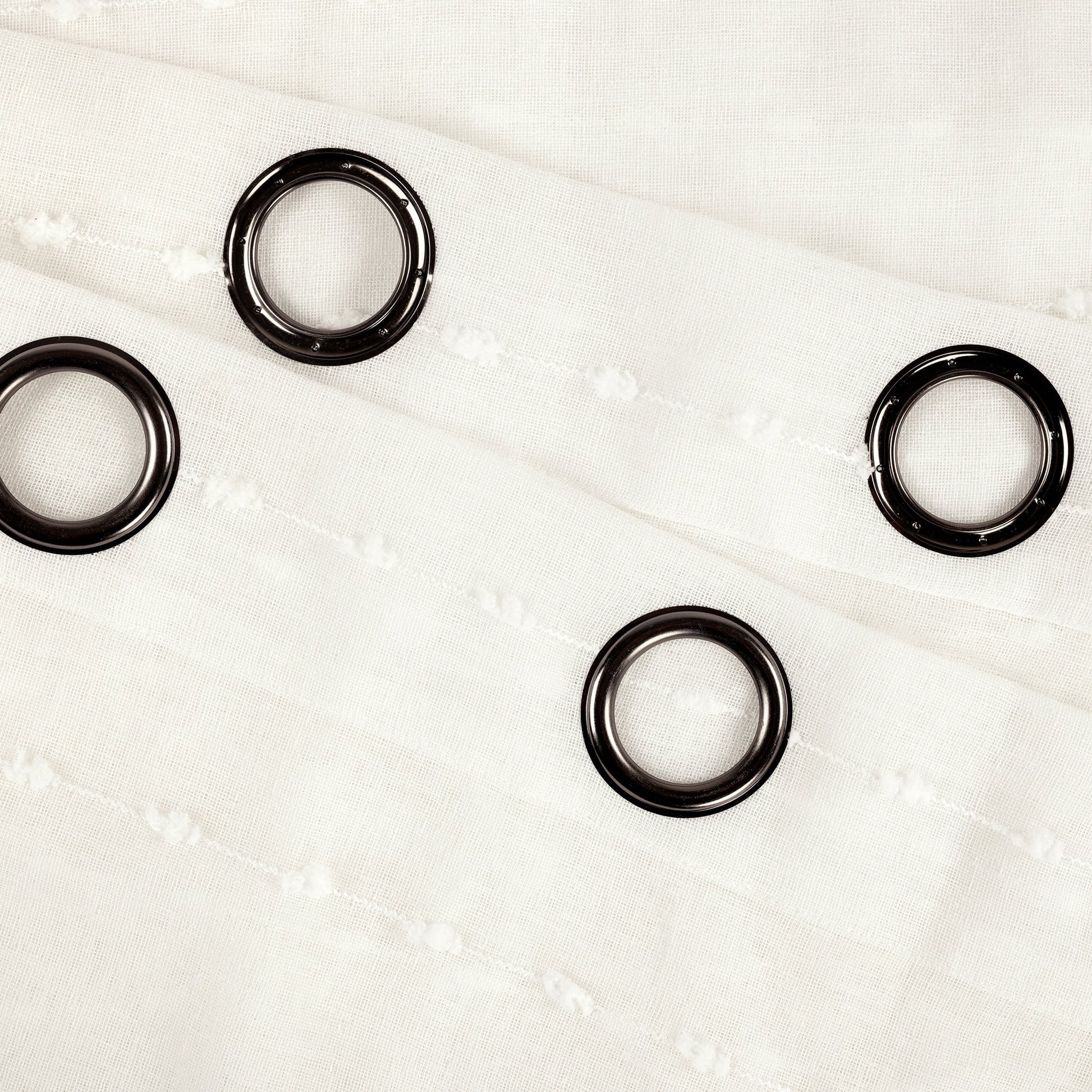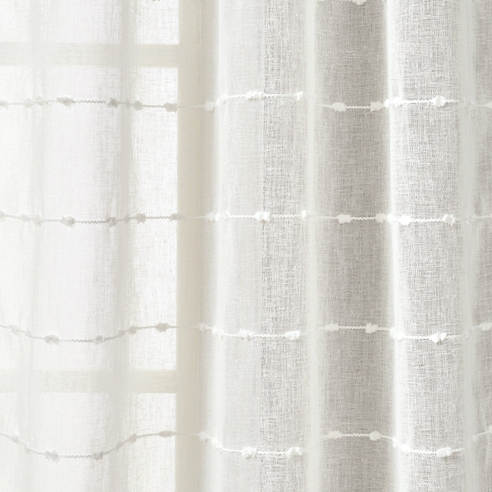 Let your living room bask in a serene and sophisticated ambiance with these Lush Decor Farmhouse Textured Grommet Sheer Window Curtain Panels. These curtains are made of 100% polyester, ensuring their endurance and longevity. The dotted stripe patterns add a transitional charm to these sheer curtains that let ample light in while providing privacy.
