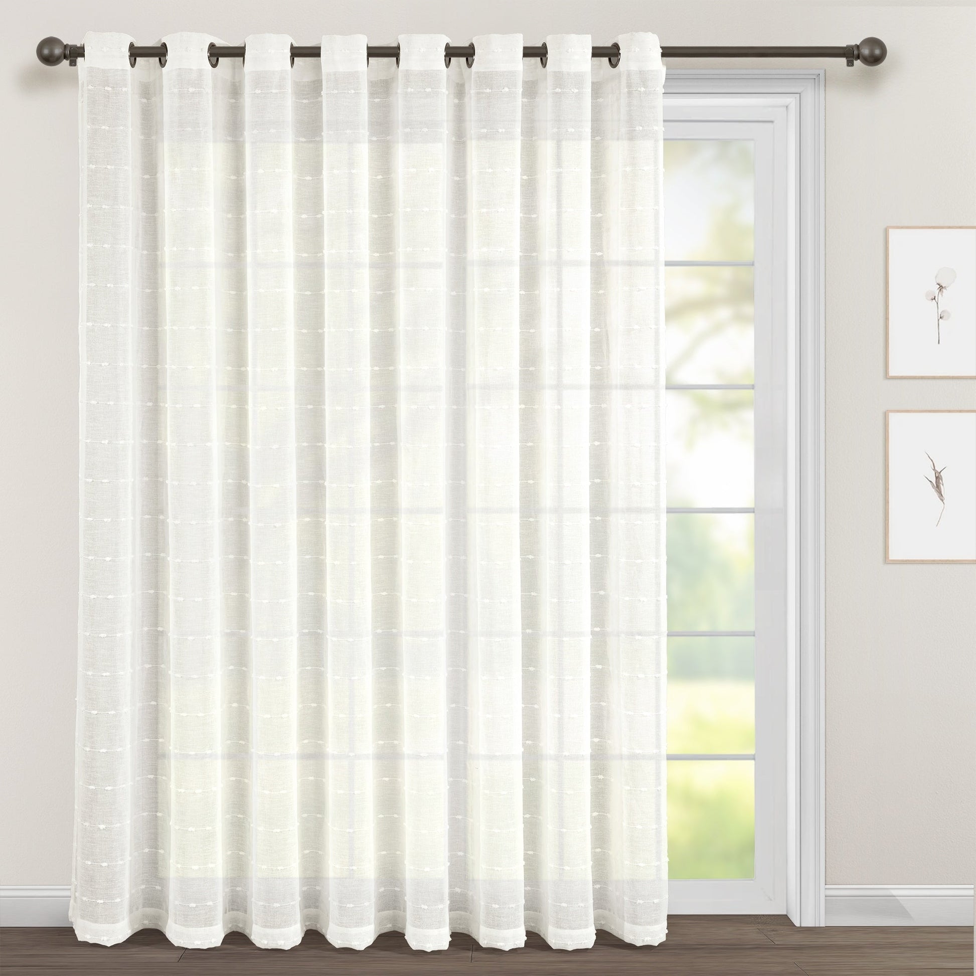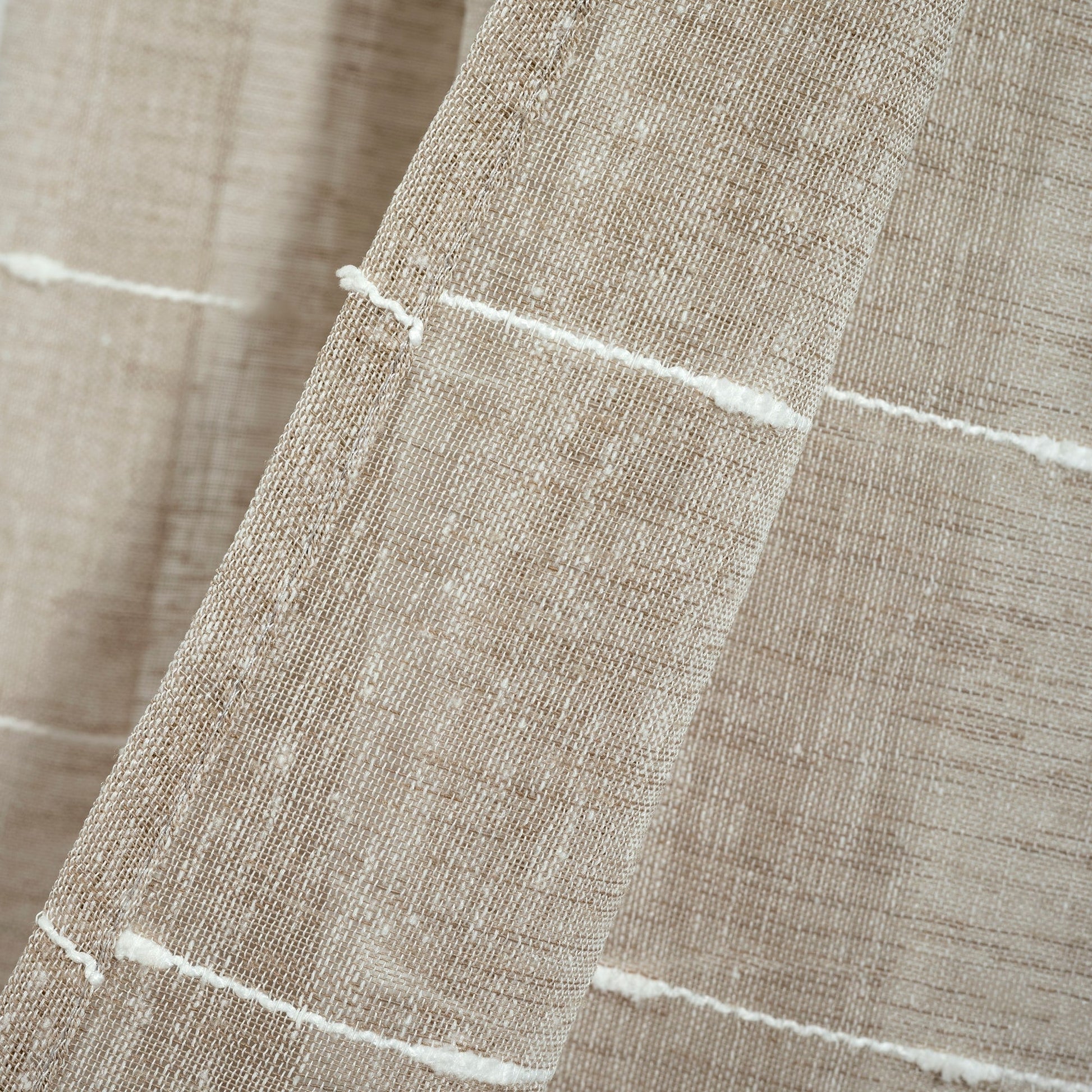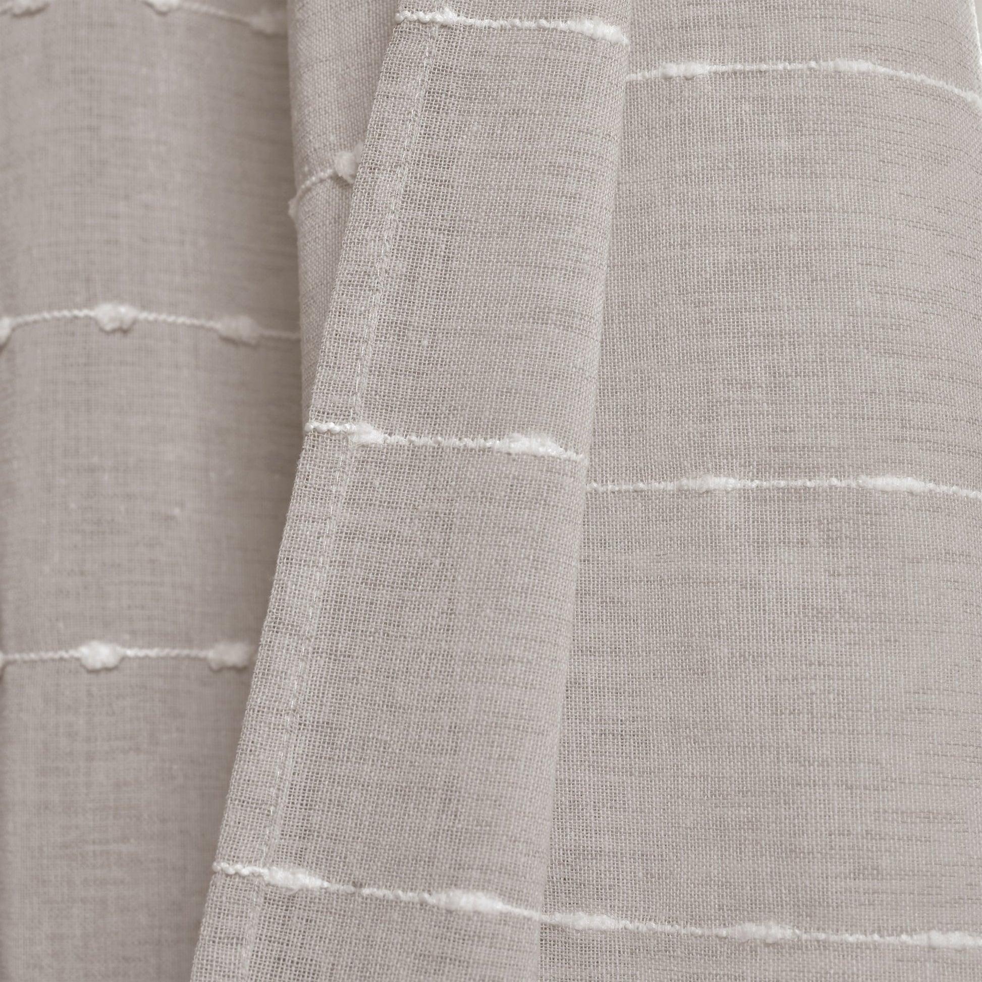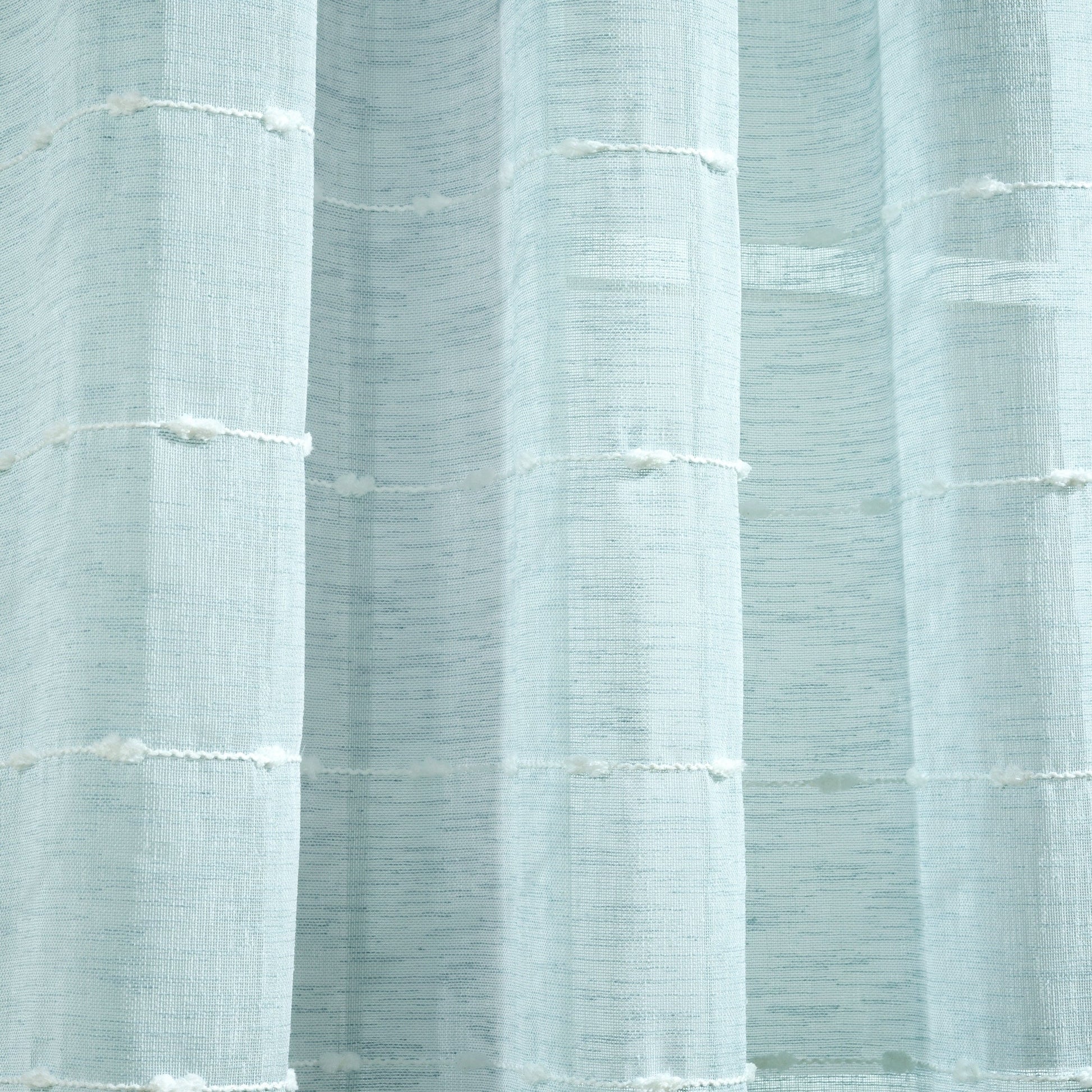 Let your living room bask in a serene and sophisticated ambiance with these Lush Decor Farmhouse Textured Grommet Sheer Window Curtain Panels. These curtains are made of 100% polyester, ensuring their endurance and longevity. The dotted stripe patterns add a transitional charm to these sheer curtains that let ample light in while providing privacy.