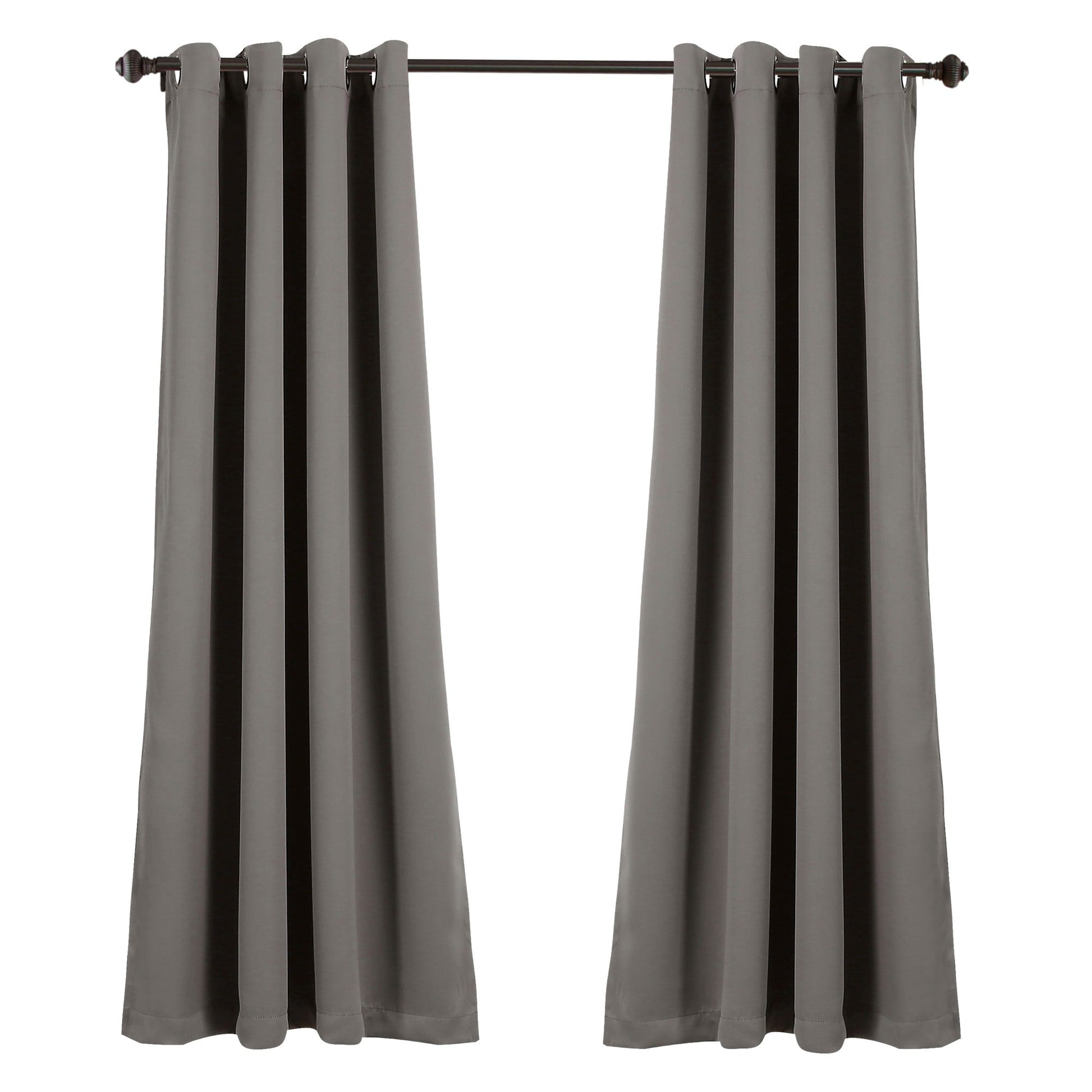 Create a relaxing atmosphere in your home with the graceful look of this panel pair. The blackout material makes adjusting your natural lighting simple, and the insulated fabric helps maintain your room's temperature while cutting back on heating and cooling costs. These panels are conveniently machine washable, while grommets make removal and installation quick.