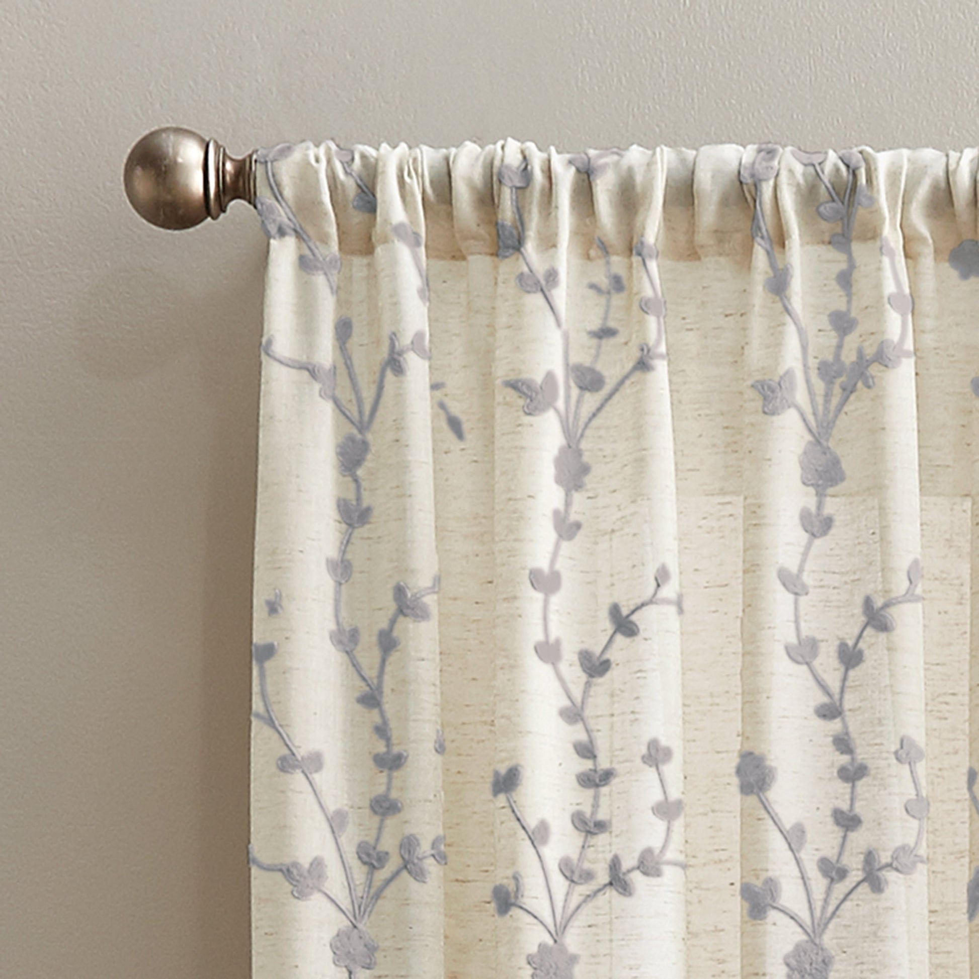Lynette Floral Embroidered Rod Pocket Curtain Panel