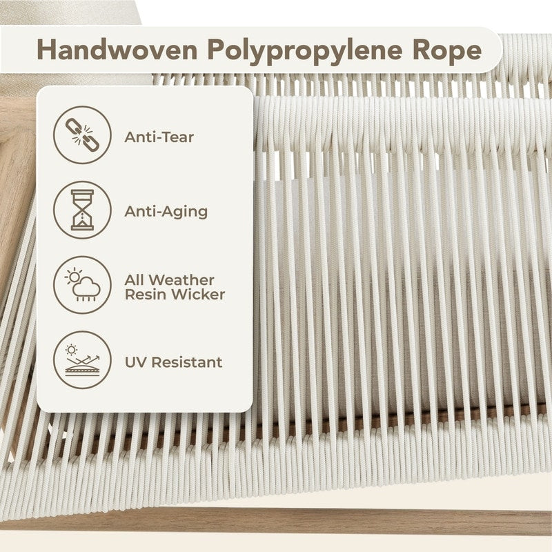 Elevate your outdoor space with our Patio Acacia Bistro Set. Crafted from FSC-certified acacia wood and handwoven polypropylene rope, this durable and stylish outdoor furniture set is perfect for patios, gardens, and balconies. The weather-resistant design ensures longevity, while the plush 7.1'' thick cushions provide ultimate comfort. Easy to clean and maintain, this patio furniture combines modern aesthetics with practical functionality, making it a must-have for any outdoor setting.?