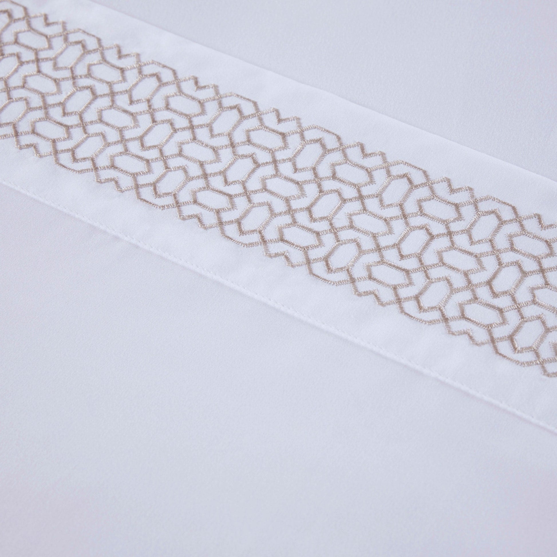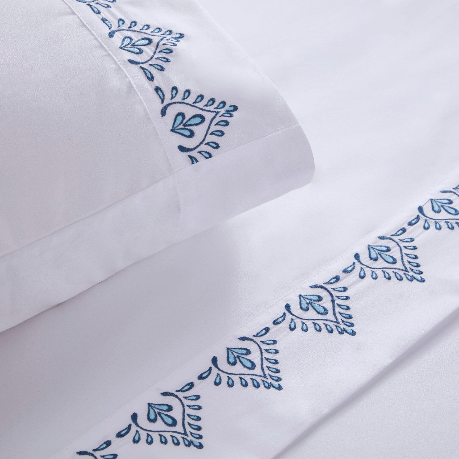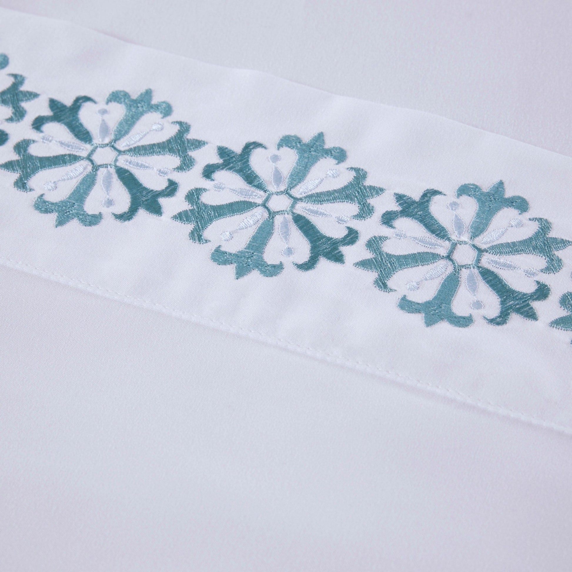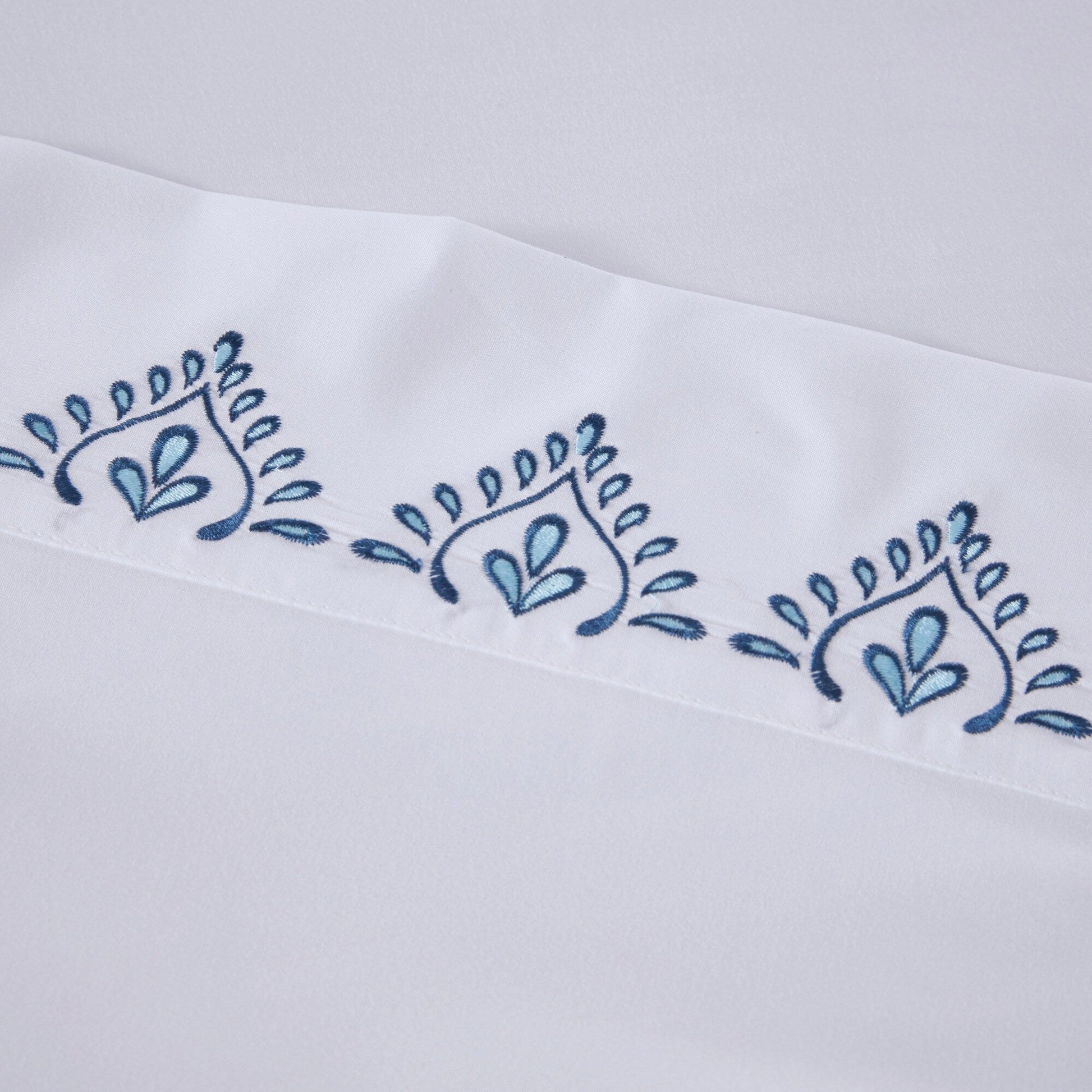 - Embroidery on flat sheet and pillowcase hem face side only