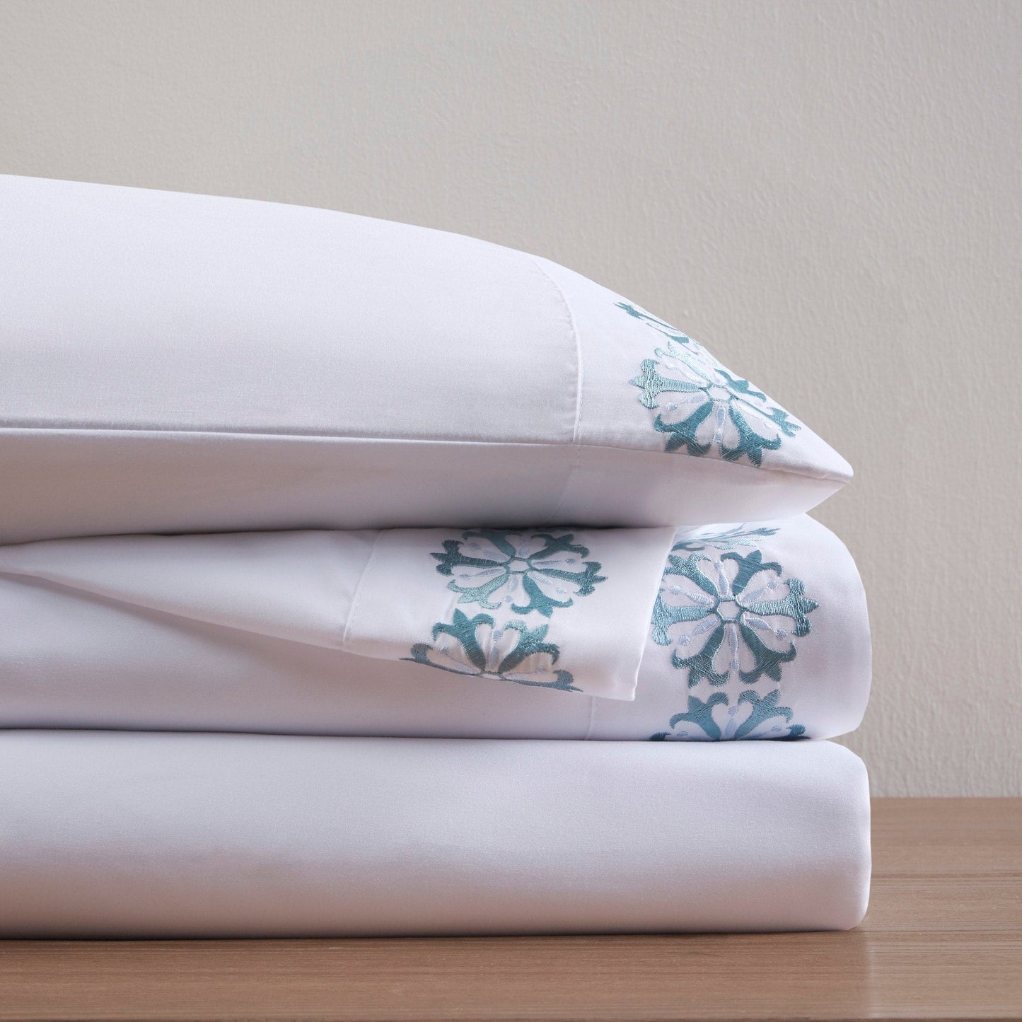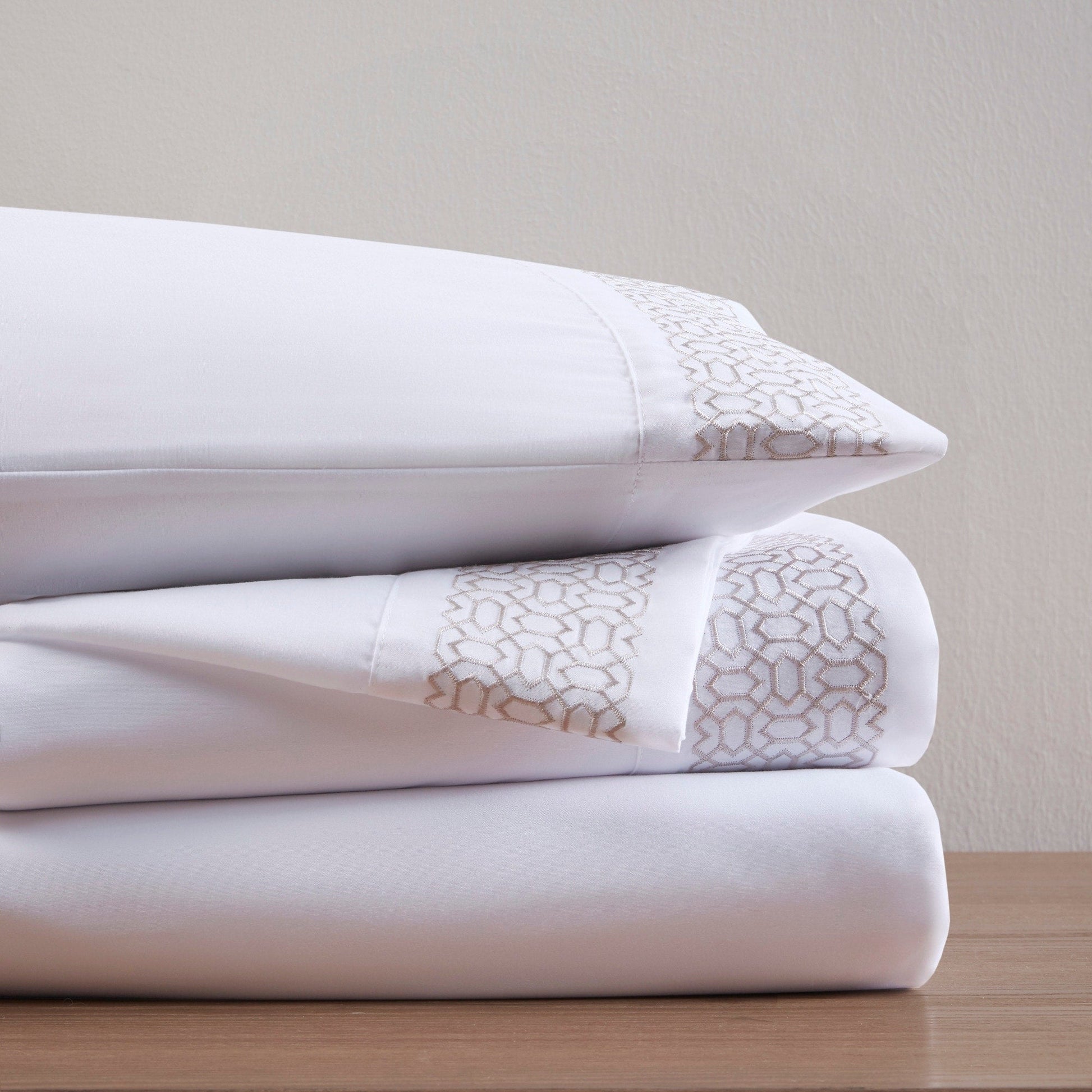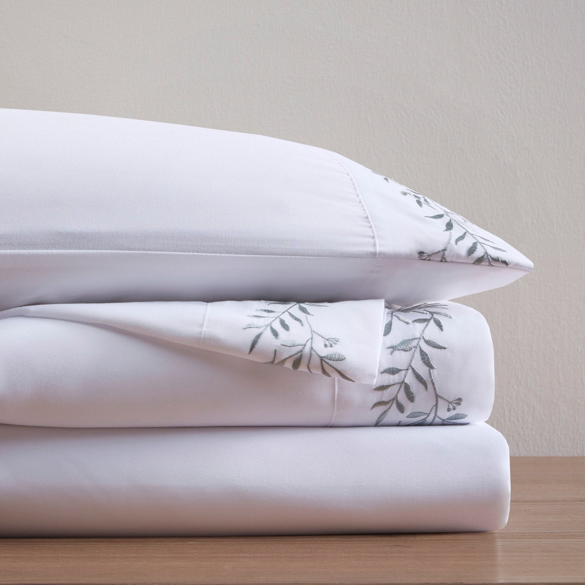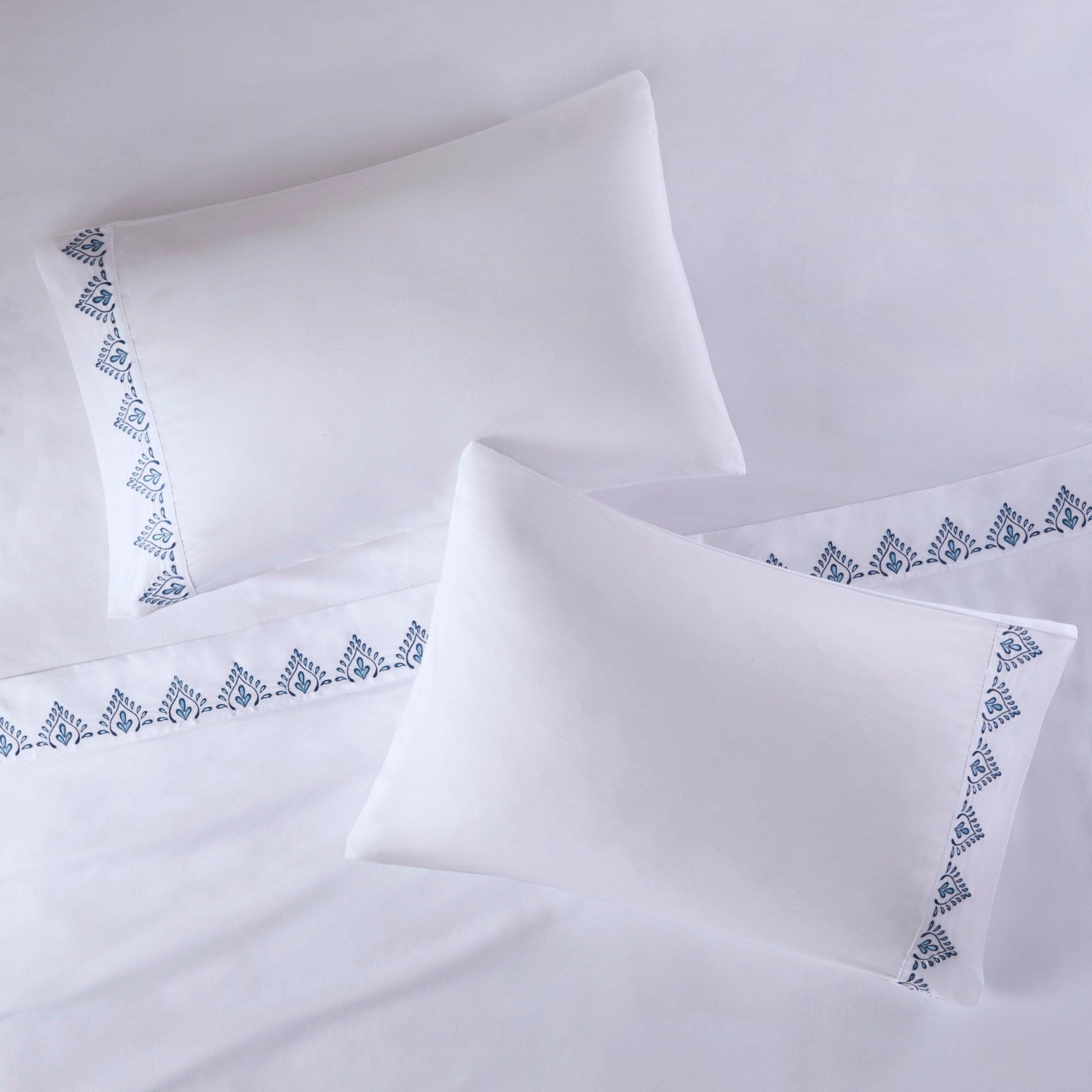 - Embroidery on flat sheet and pillowcase hem face side only