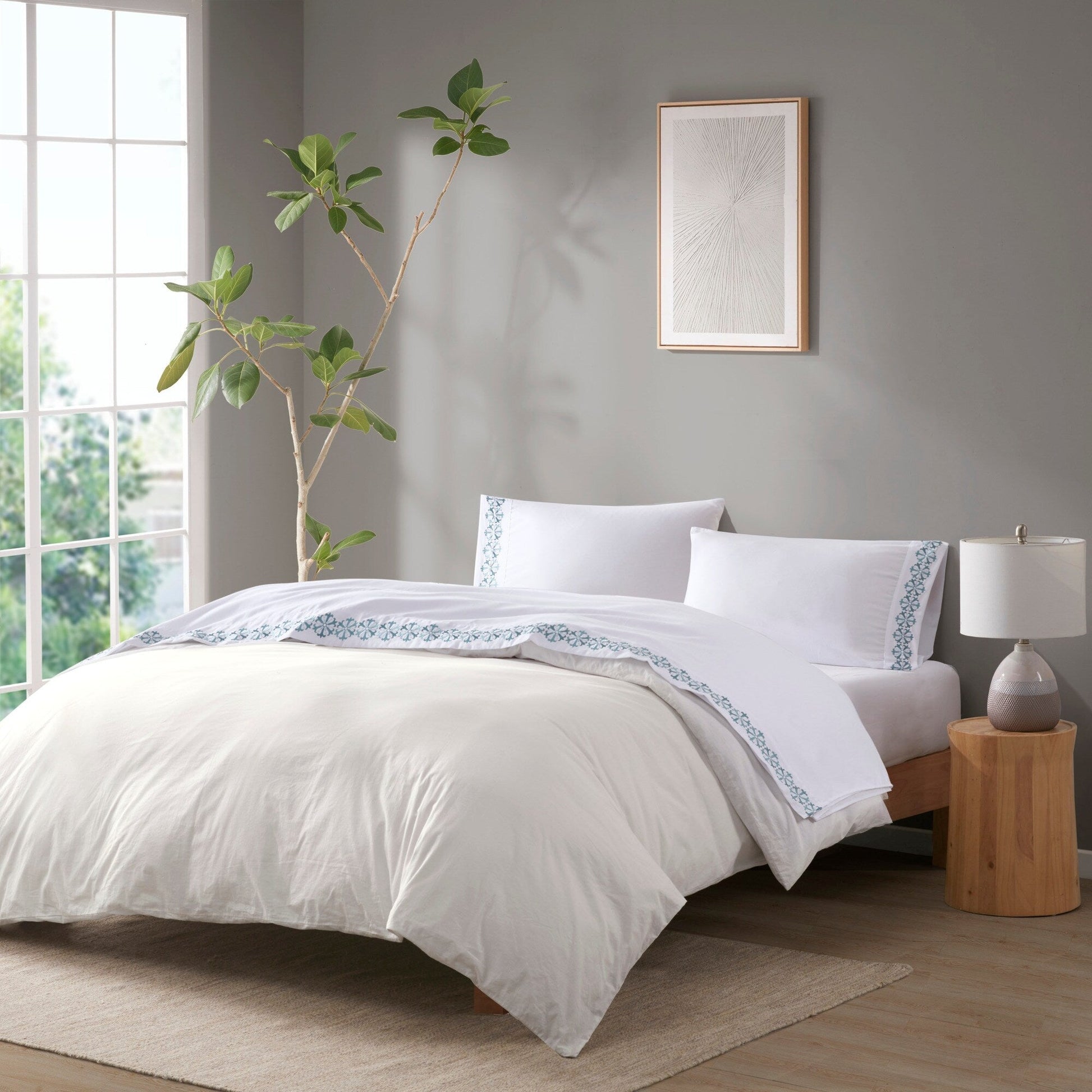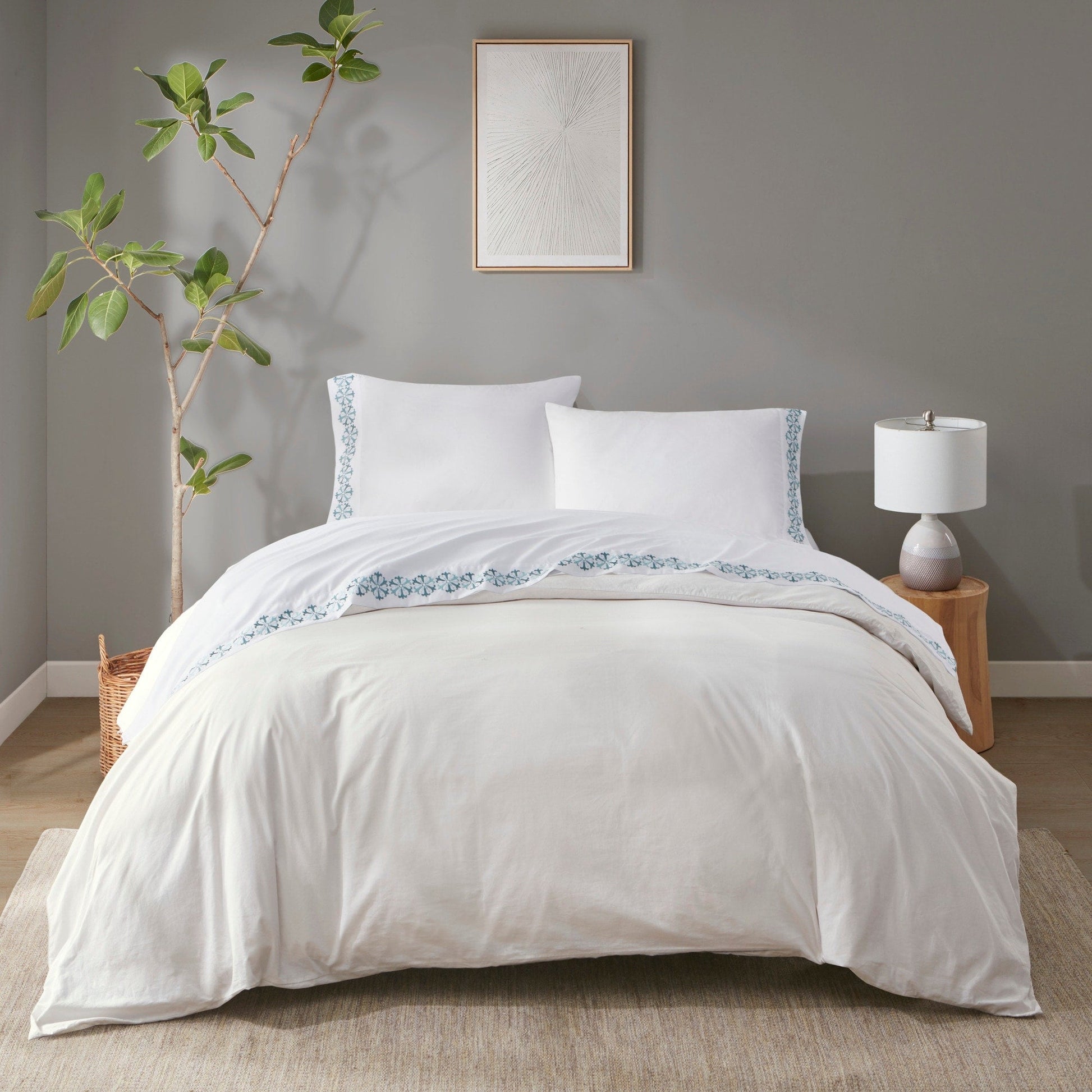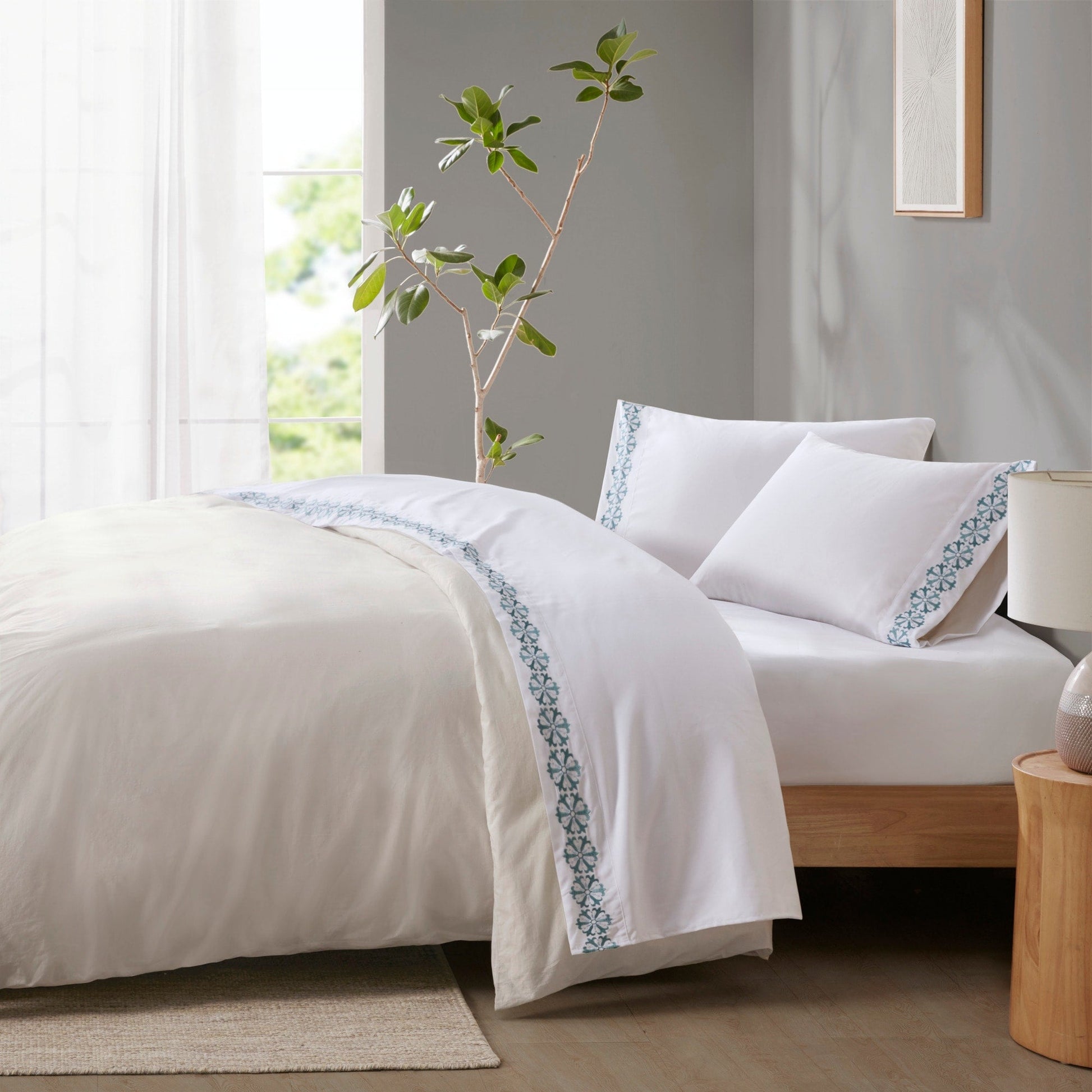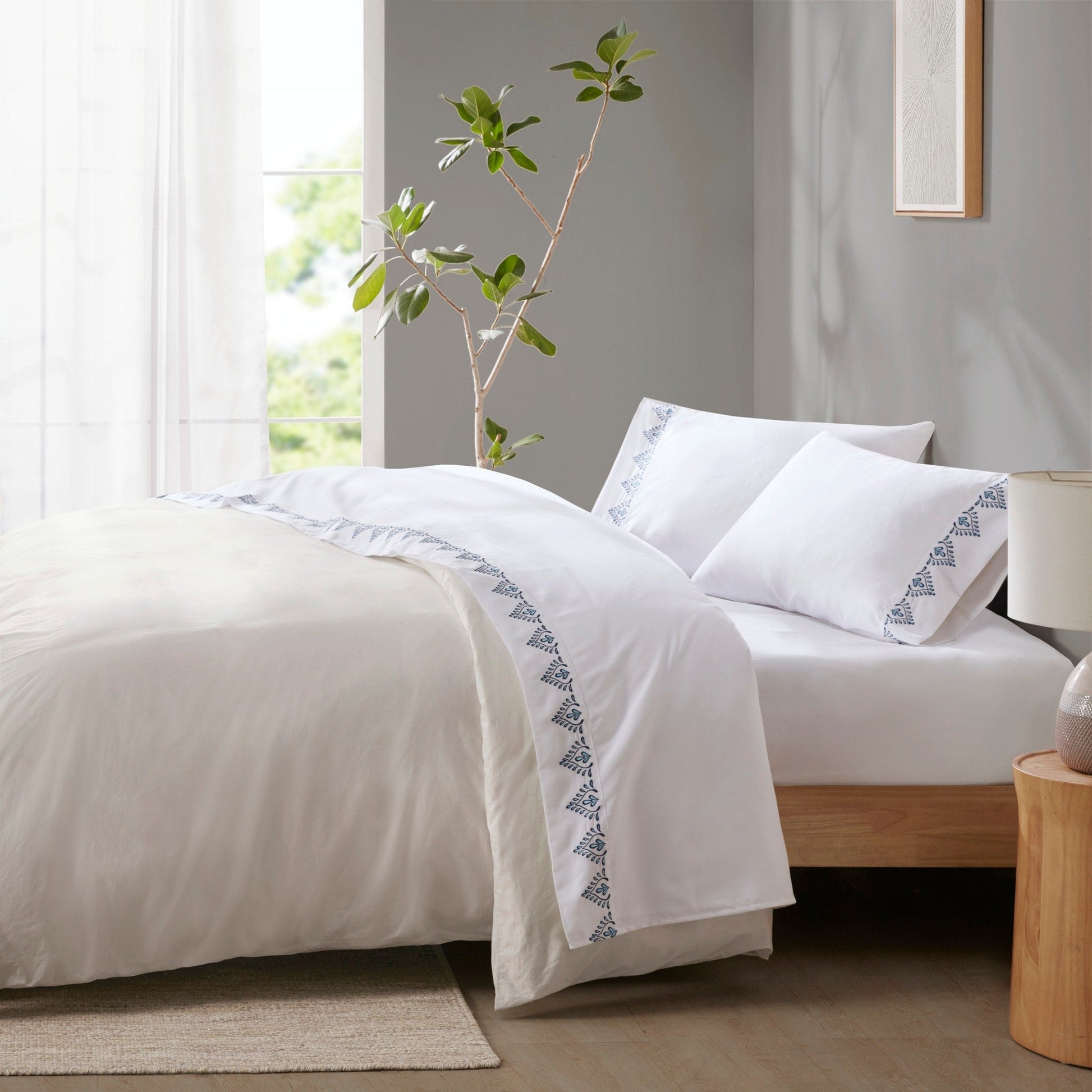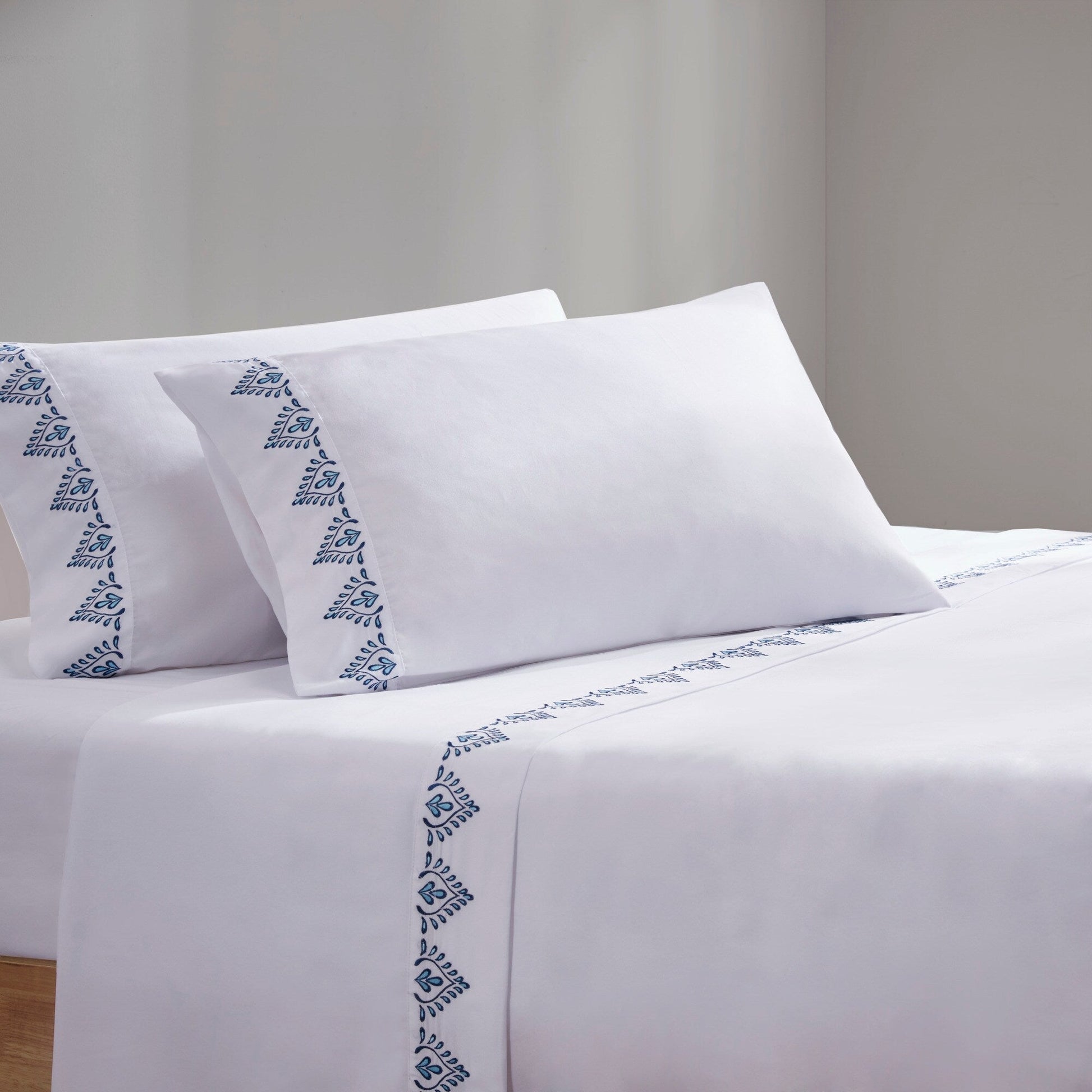 - Embroidered hem brings a stylish pop of color to your bedroom