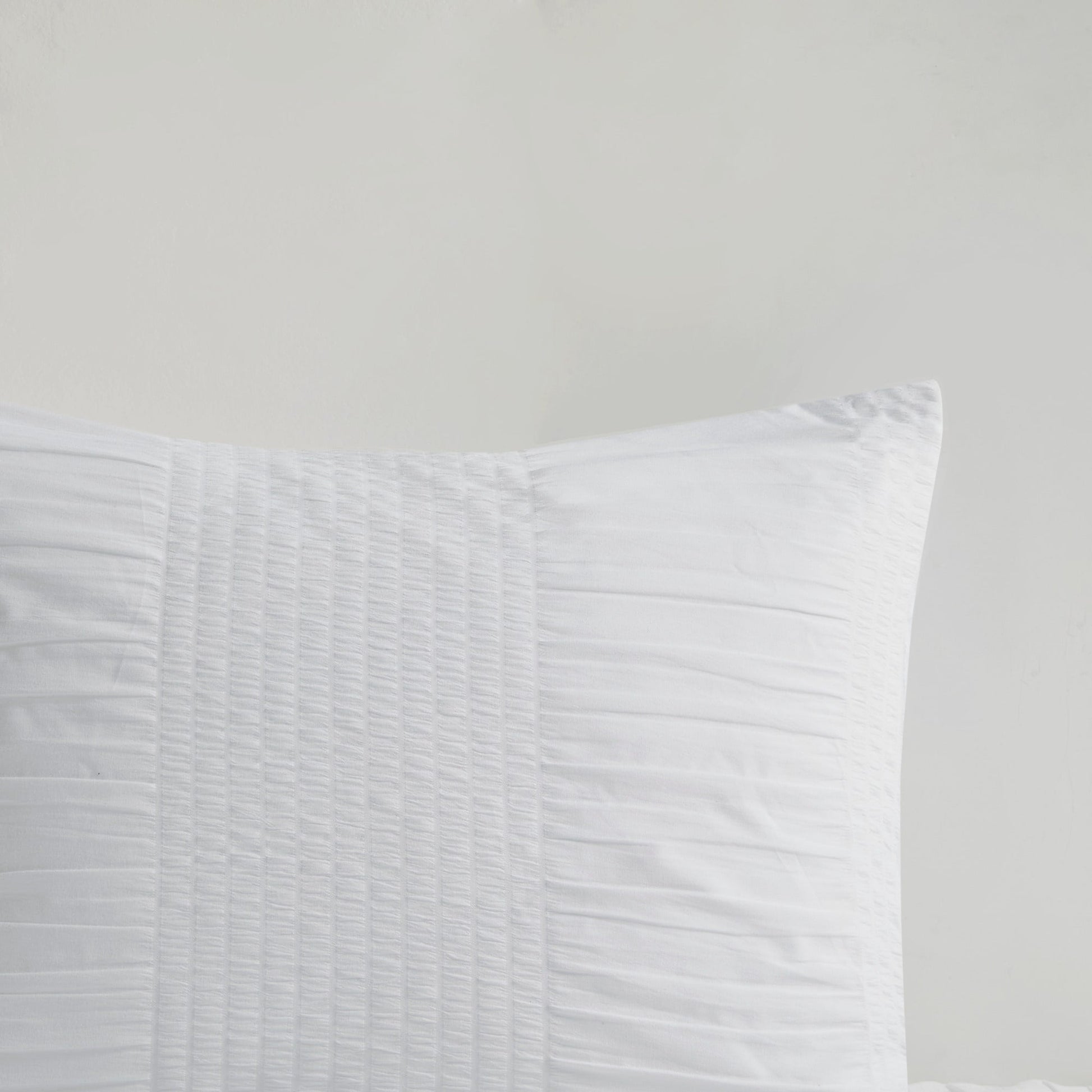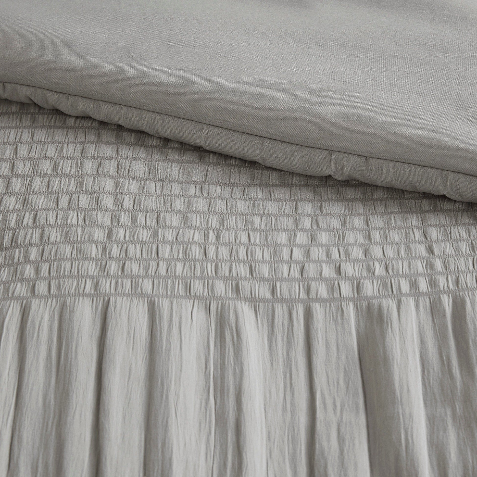 - Solid textured comforter look for casual and modern bedroom style with simple geometric design on sheet set