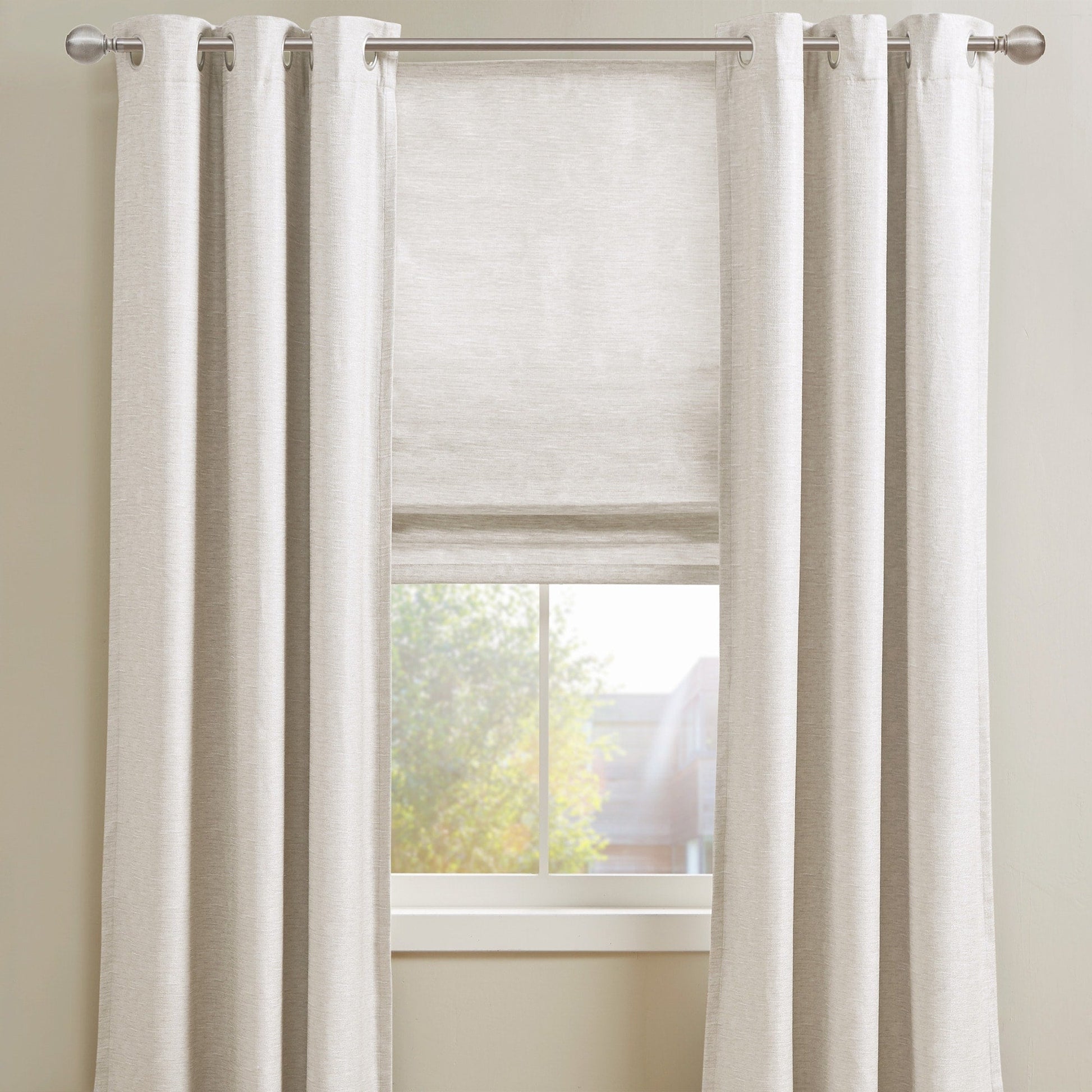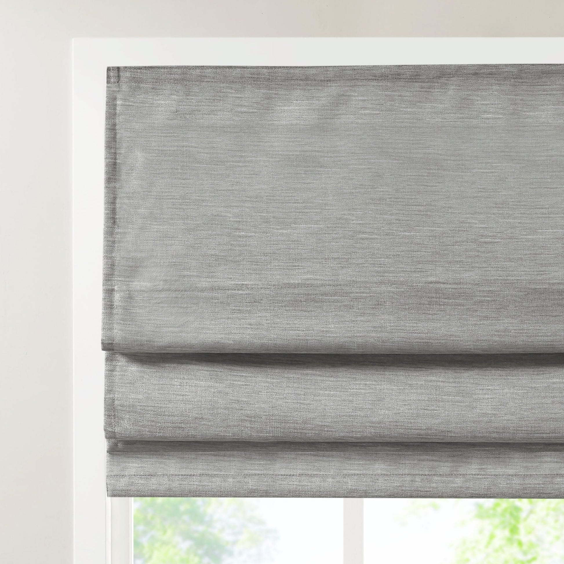 Our Madison Park Leighton Printed Faux Silk Room Darkening Cordless Roman Shade offers a modern and convenient update to your home decor. This roman shade flaunts a tonal color faux silk textured fabric to create a stylish and beautiful, look and feel. Also achieving the OEKO-TEX certification, these curtains do not contain any harmful substances or chemicals ensuring quality comfort and wellness. A thermal foambacking on the reverse provides energy efficiency and a room darkening effect, for enhanced privacy. The cordless retraction mechanism makes the room darkening shade easy to open and close the throughout the day, while the detachable fabric face allows for easier assembly and cleaning by lightly shaking or dusting. Please note: The top face fabric is detachable from the hook and loop fastener, but is NOT fully removable. Ready to install right out of the packaging, this roman shade can be hung inside or above the window pane allowing you to find the perfect fit for your home decor. Shade measures 64-inches long and comes in 5 width options to suit multiple standard window sizes. Each roman shade is sold as a single and comes with a printed instructional guide as well as an instructional video available on site. Assembly is required.