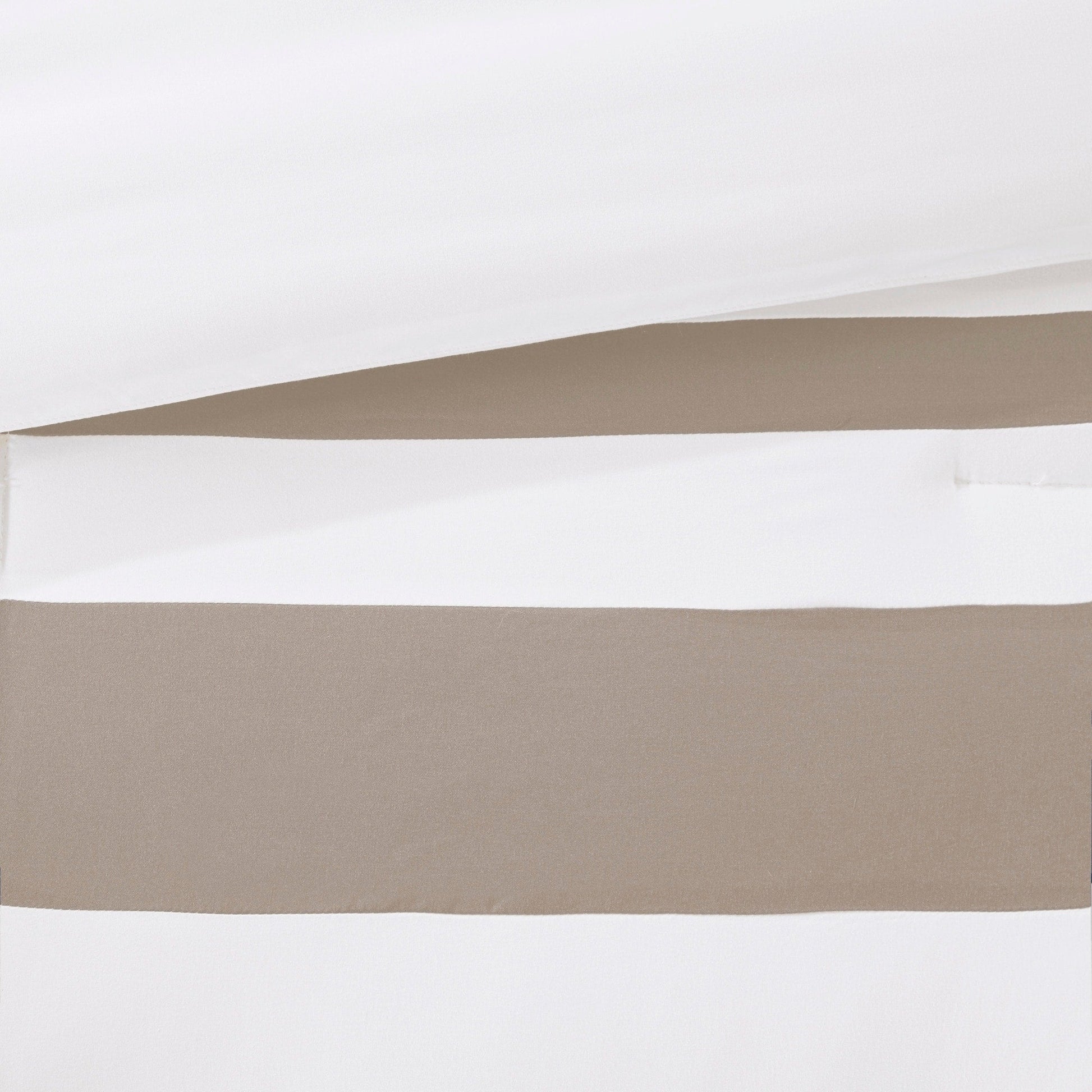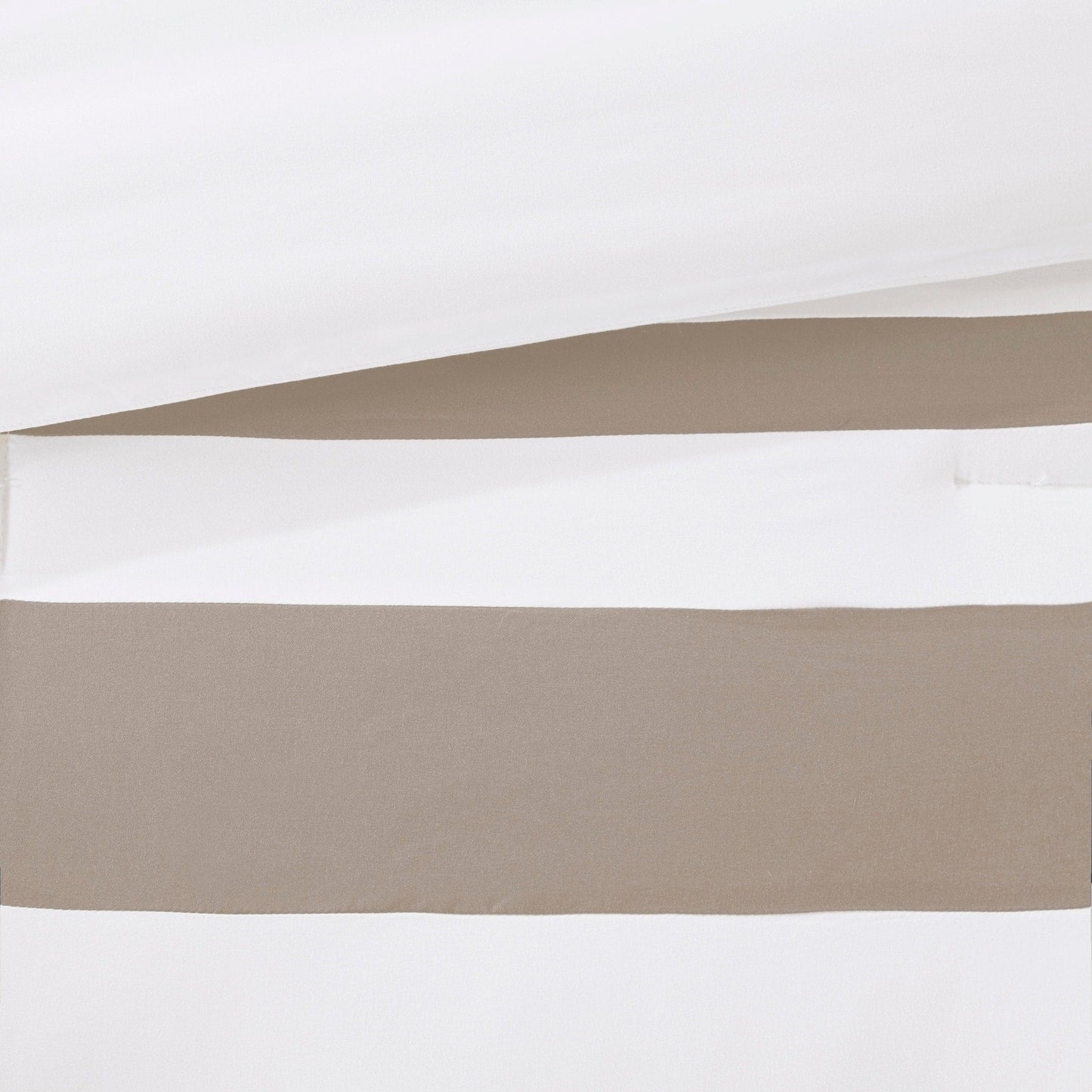 This hotel bedding collection includes a bold bordered comforter and window pane quilt that both come with matching shams to complete a luxurious layered look. Two decorative pillows with embroidered and pieced details provide the perfect finishing touches to this 8 piece bedding set.