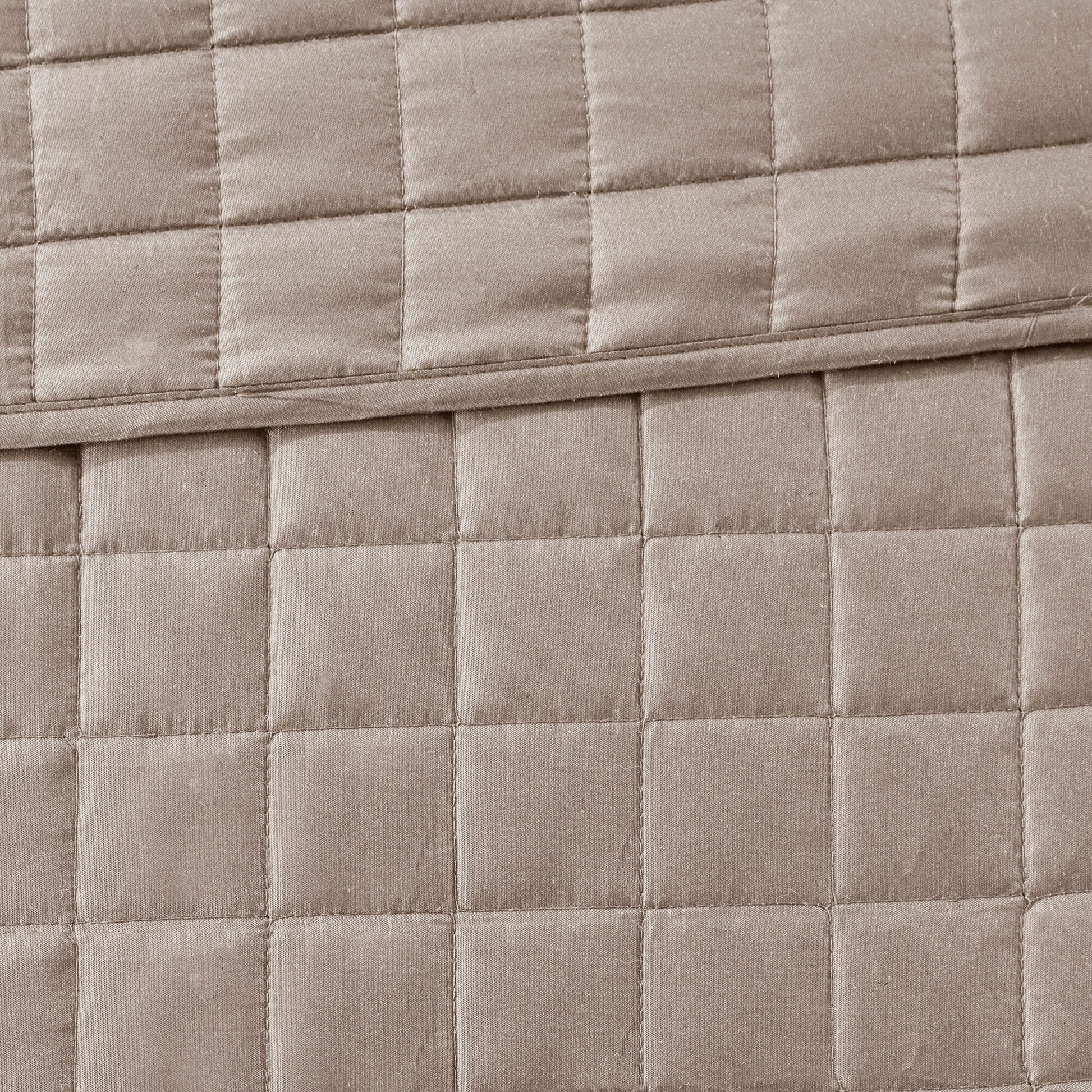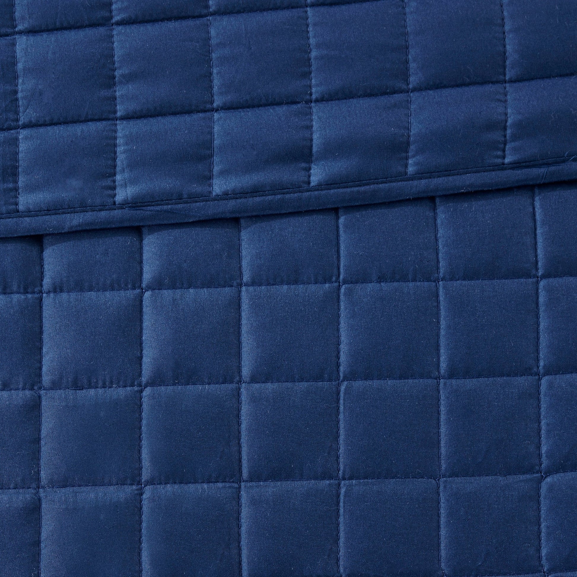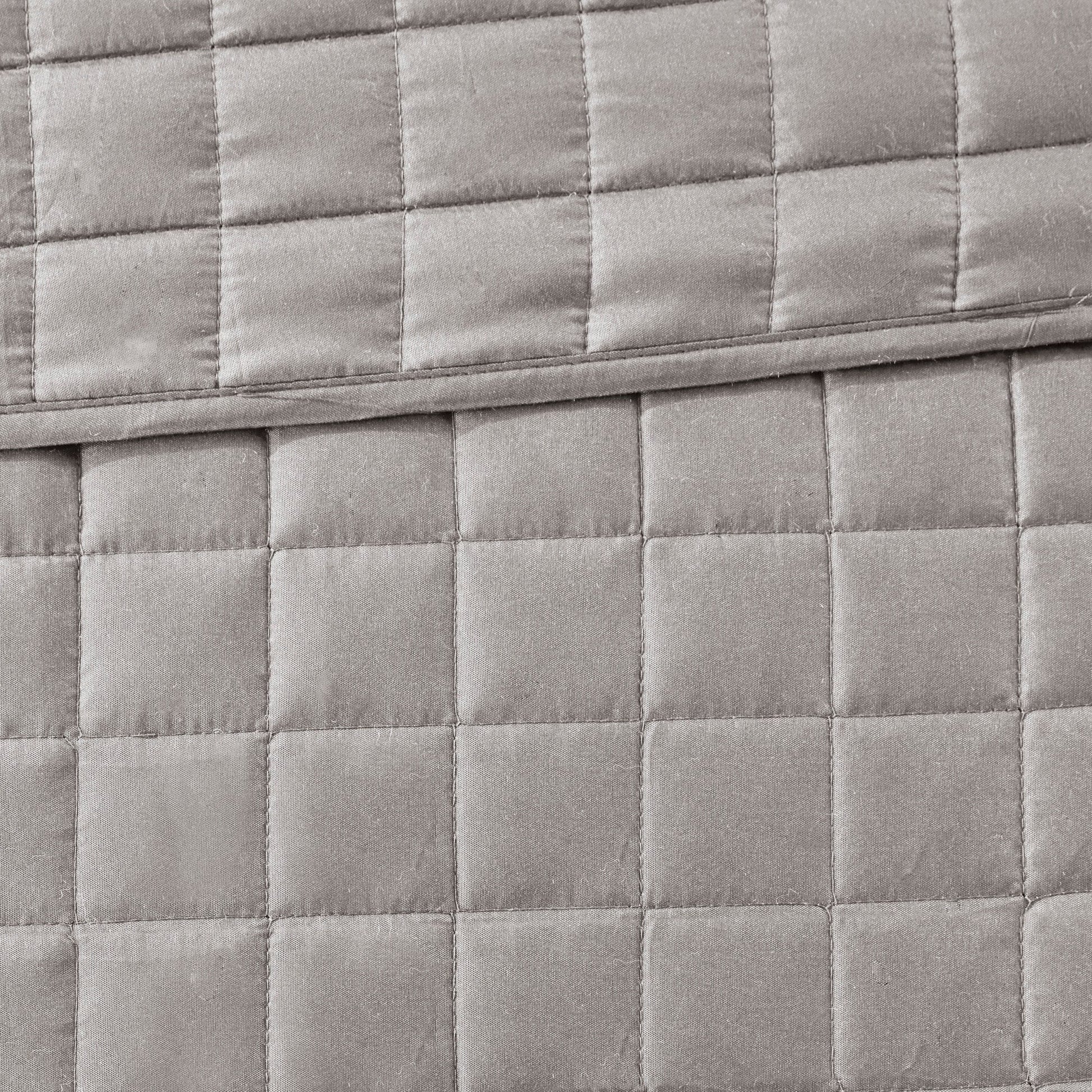 - Quilt and matching shams have end-to-end diamond quilting; and throw pillows have embroidered and pieced details