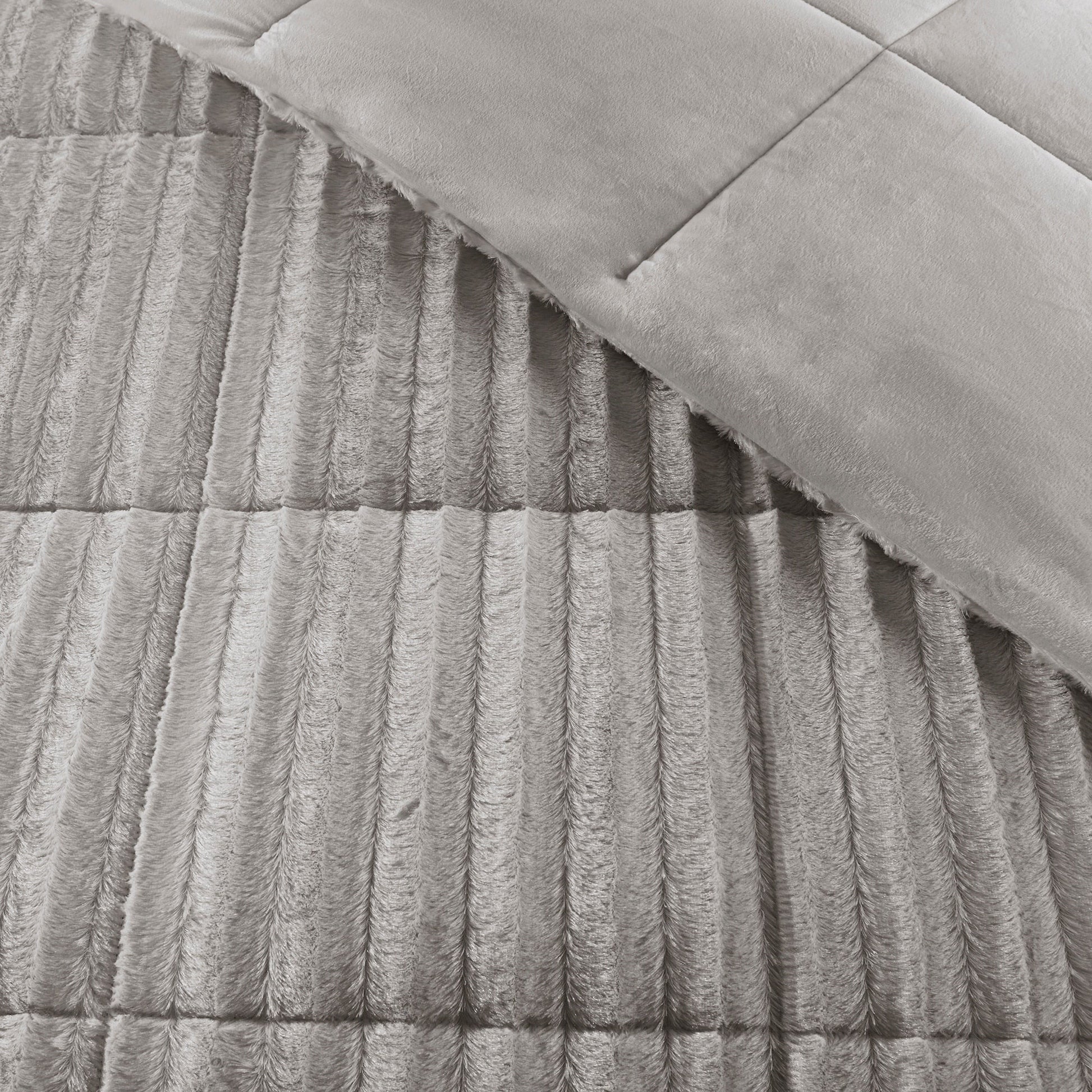 - All over pleated fur comforter set