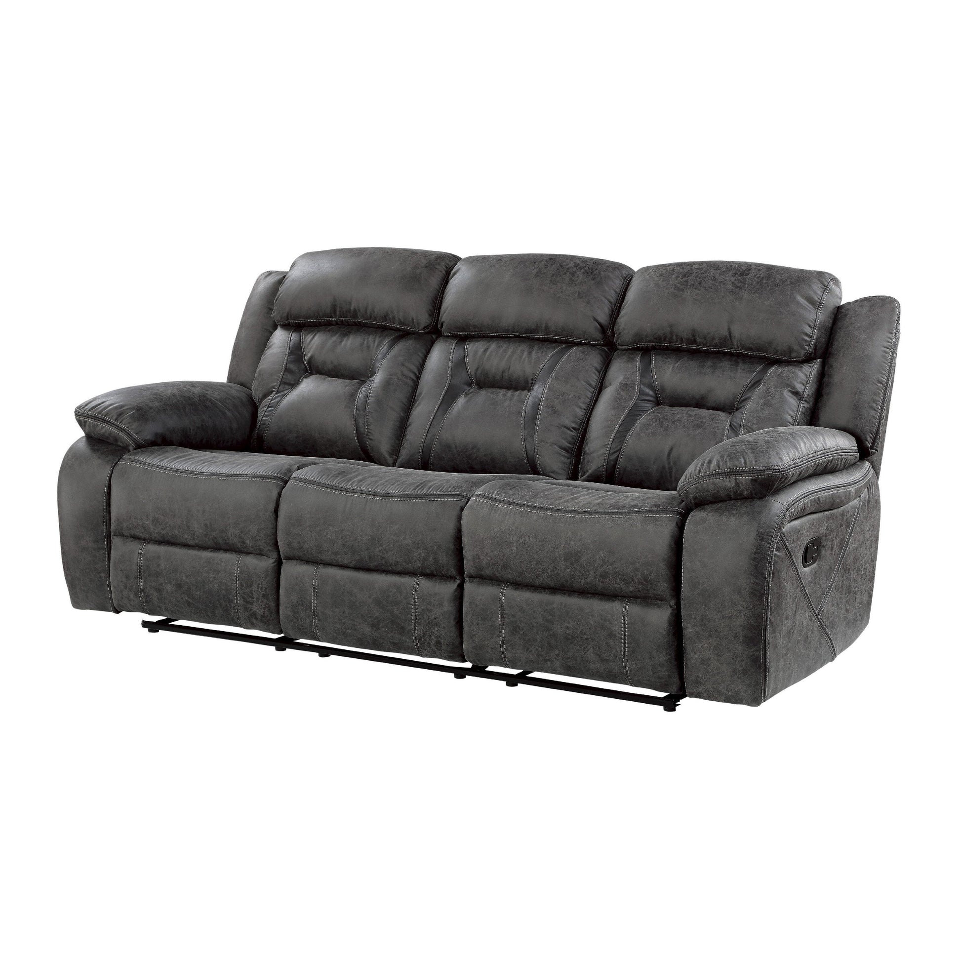Mady Manual Reclining Sofa, Pillow Tufted, Dark Gray Polyester 85 Inch