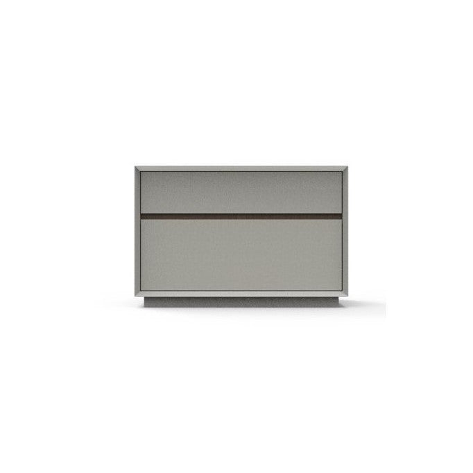 [description] Embellissez votre chambre et soulignez votre style contemporain avec la table de chevet Magda. Cette table de chevet spacieuse est dotée de deux tiroirs de rangement. Parfaite pour les chambres modernes, elle est laquée gris clair mat avec des détails en noyer.