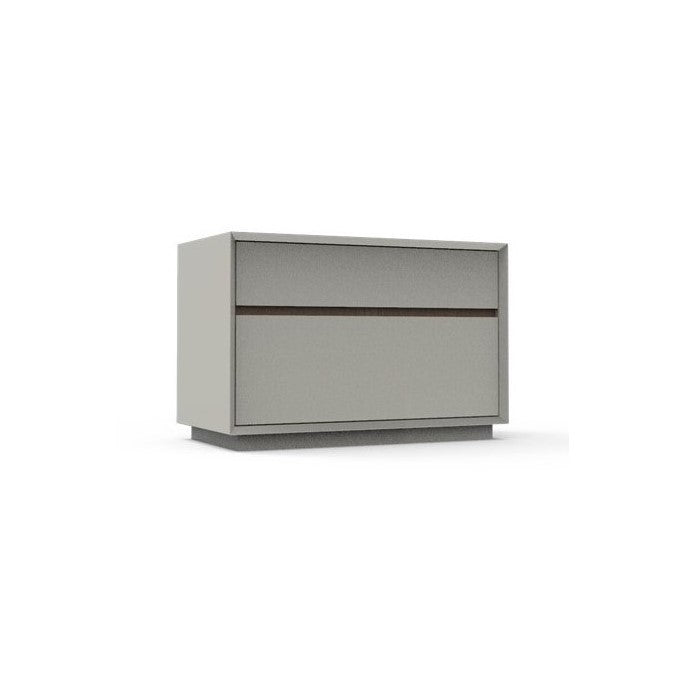 look contemporain espace large et ample pour le stockage deux tiroirs avec un système d'extension complète laqué en gris clair mat avec une touche de noyer |