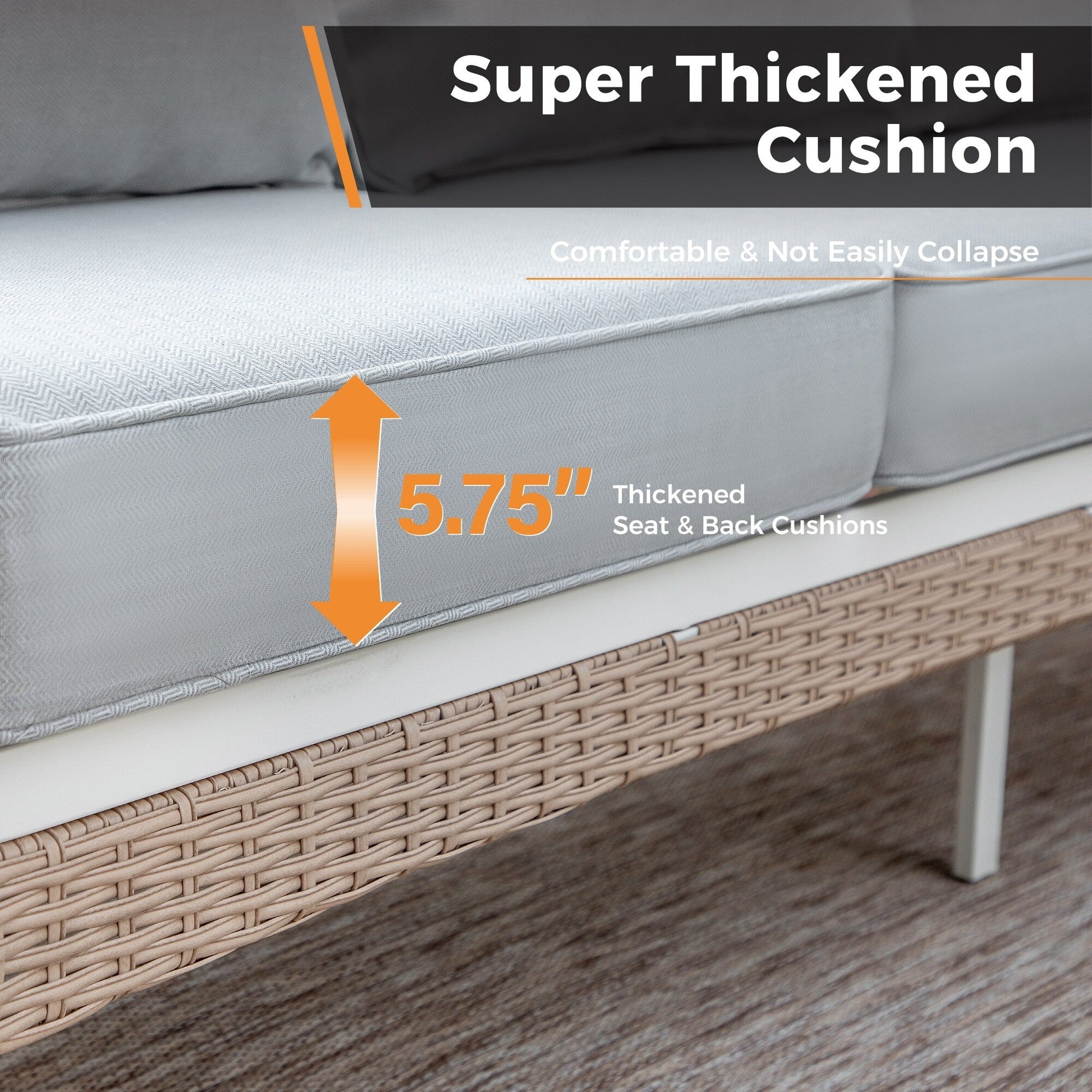 - The 5.75' extra thick seat cushions add a layer of comfort, making it perfect for long hours of lounging