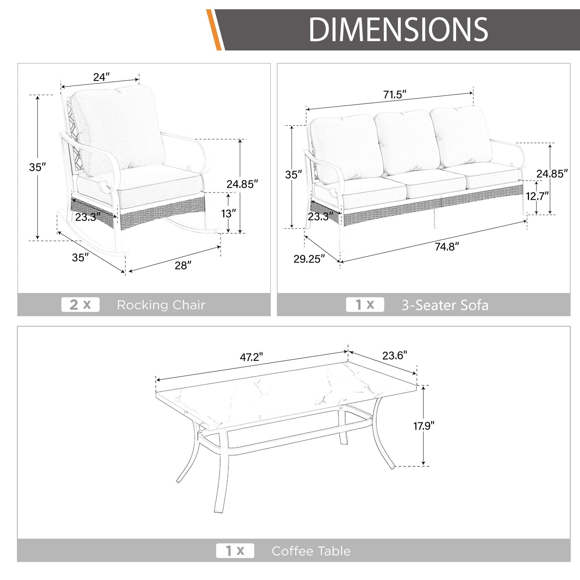 - Set 2: Rocking chair*2 + 3-seater sofa*1 + coffee table*1