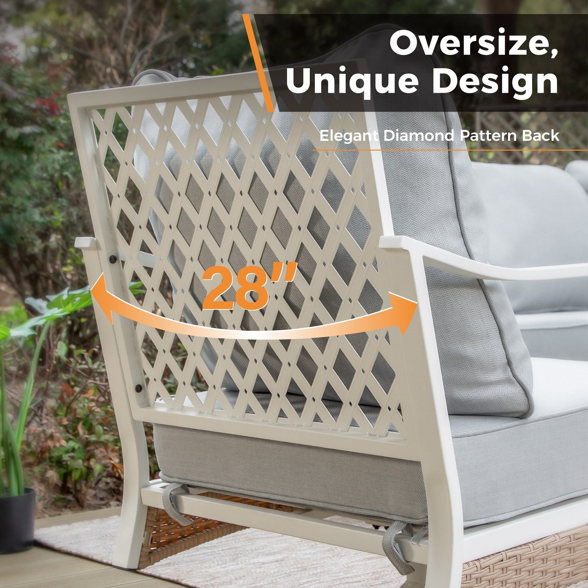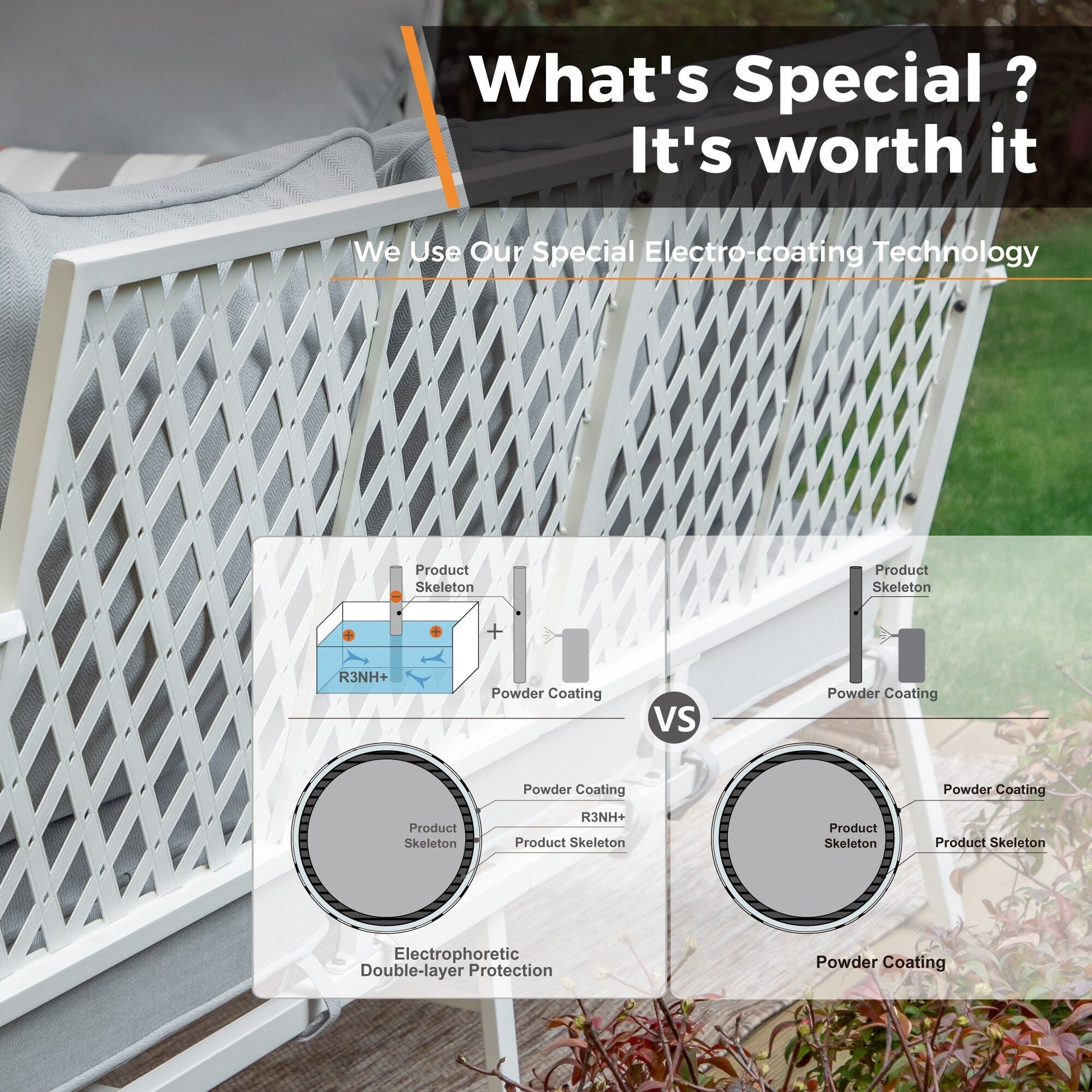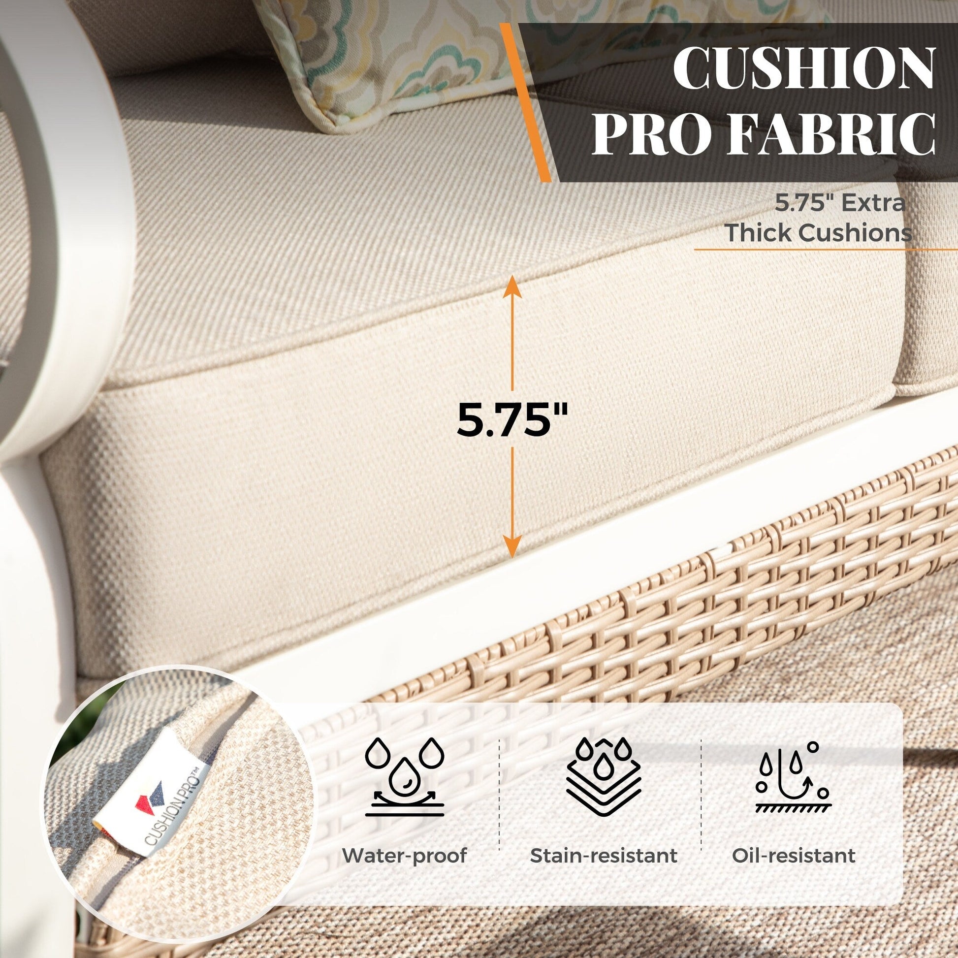 Transform your outdoor space into a cozy retreat with our patio conversation set. Whether you're lounging with a book or entertaining guests, our stylish and durable set provides ample seating and comfort. Crafted with weather-resistant materials, this set is designed to withstand the elements and maintain its beauty season after season. Elevate your outdoor living experience with our premium patio conversation set. Patent CushionPro outdoor fabric with water-repellent, soil-release, and stain-resistant properties, making it easy to clean with just a sponge and cleaning spray.?
