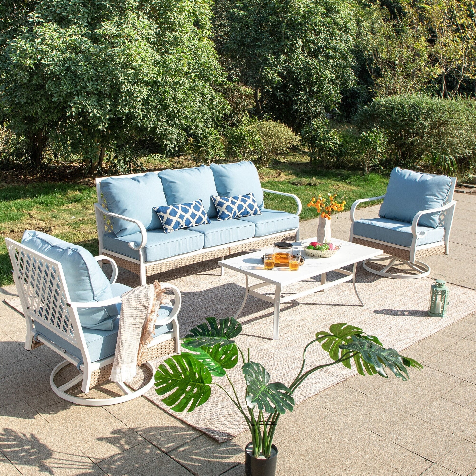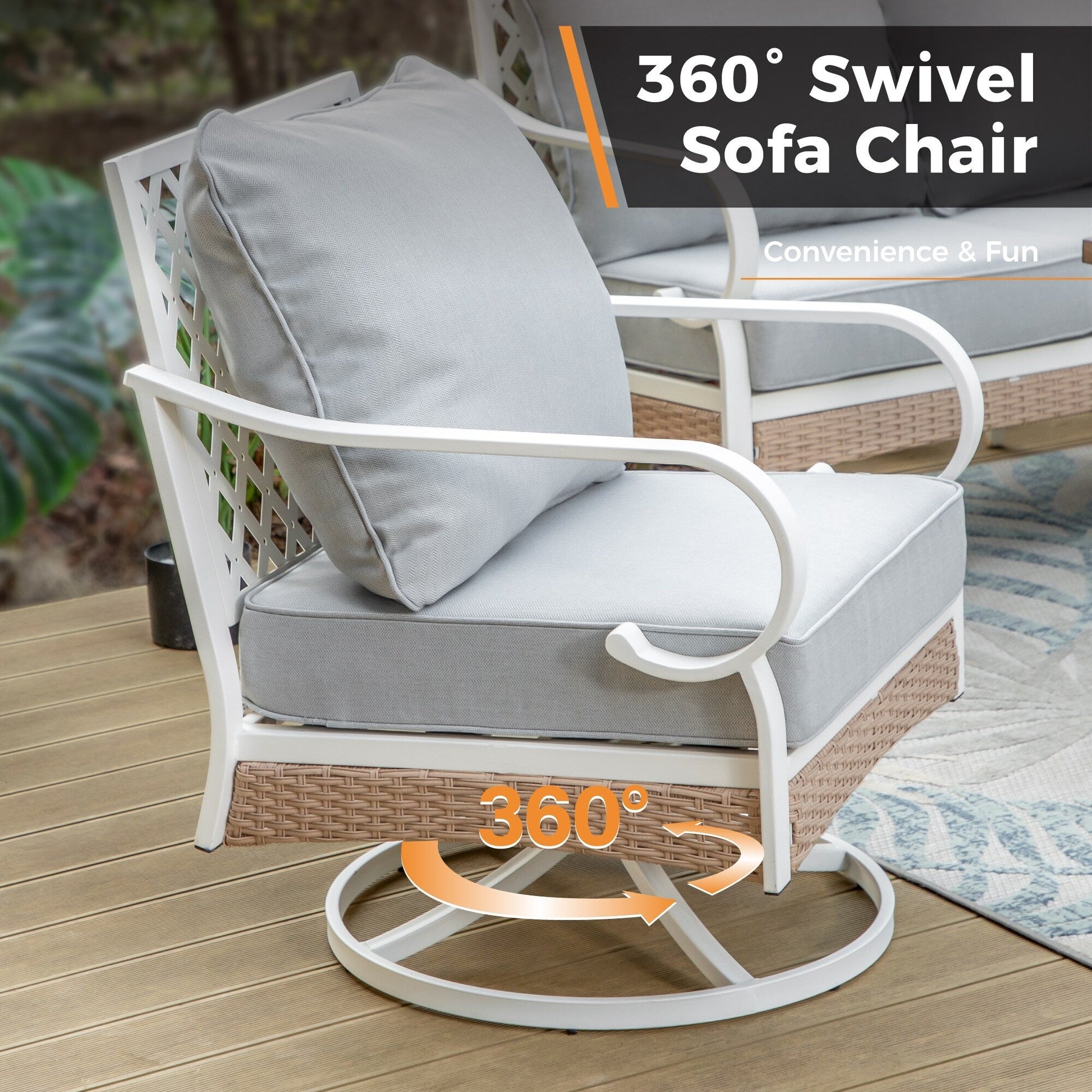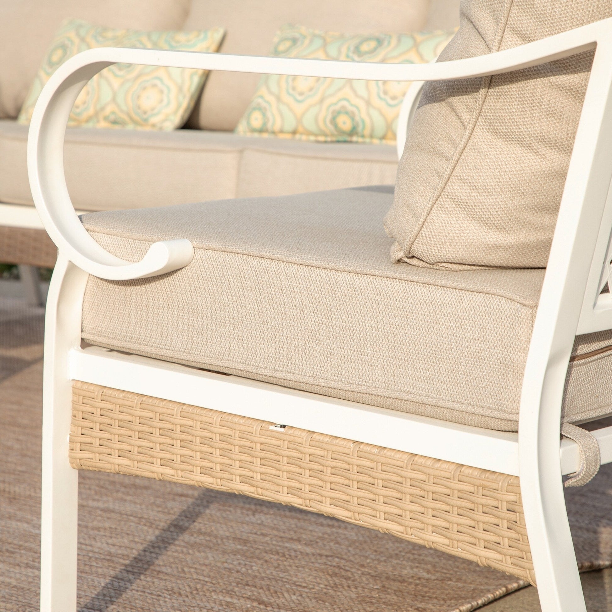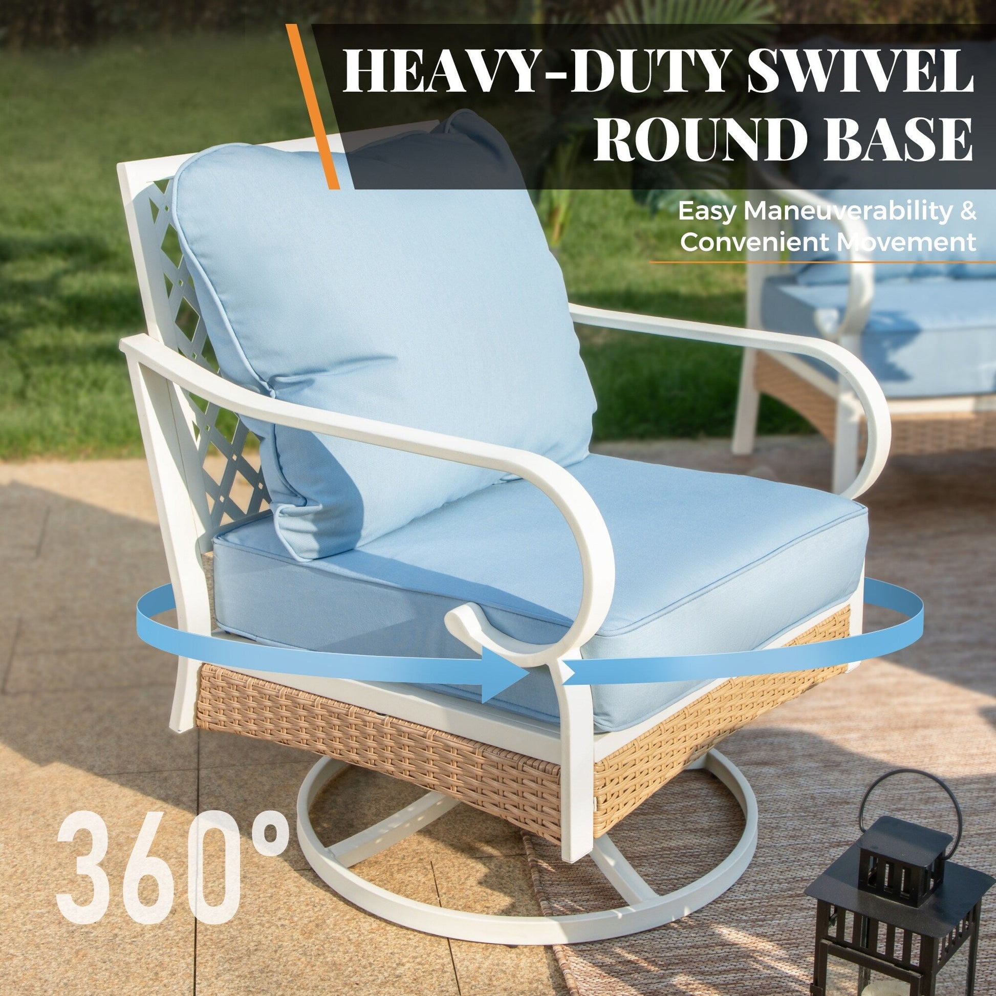 Transform your outdoor space into a cozy retreat with our patio conversation set. Whether you're lounging with a book or entertaining guests, our stylish and durable set provides ample seating and comfort. Crafted with weather-resistant materials, this set is designed to withstand the elements and maintain its beauty season after season. Elevate your outdoor living experience with our premium patio conversation set. Patent CushionPro outdoor fabric with water-repellent, soil-release, and stain-resistant properties, making it easy to clean with just a sponge and cleaning spray.?