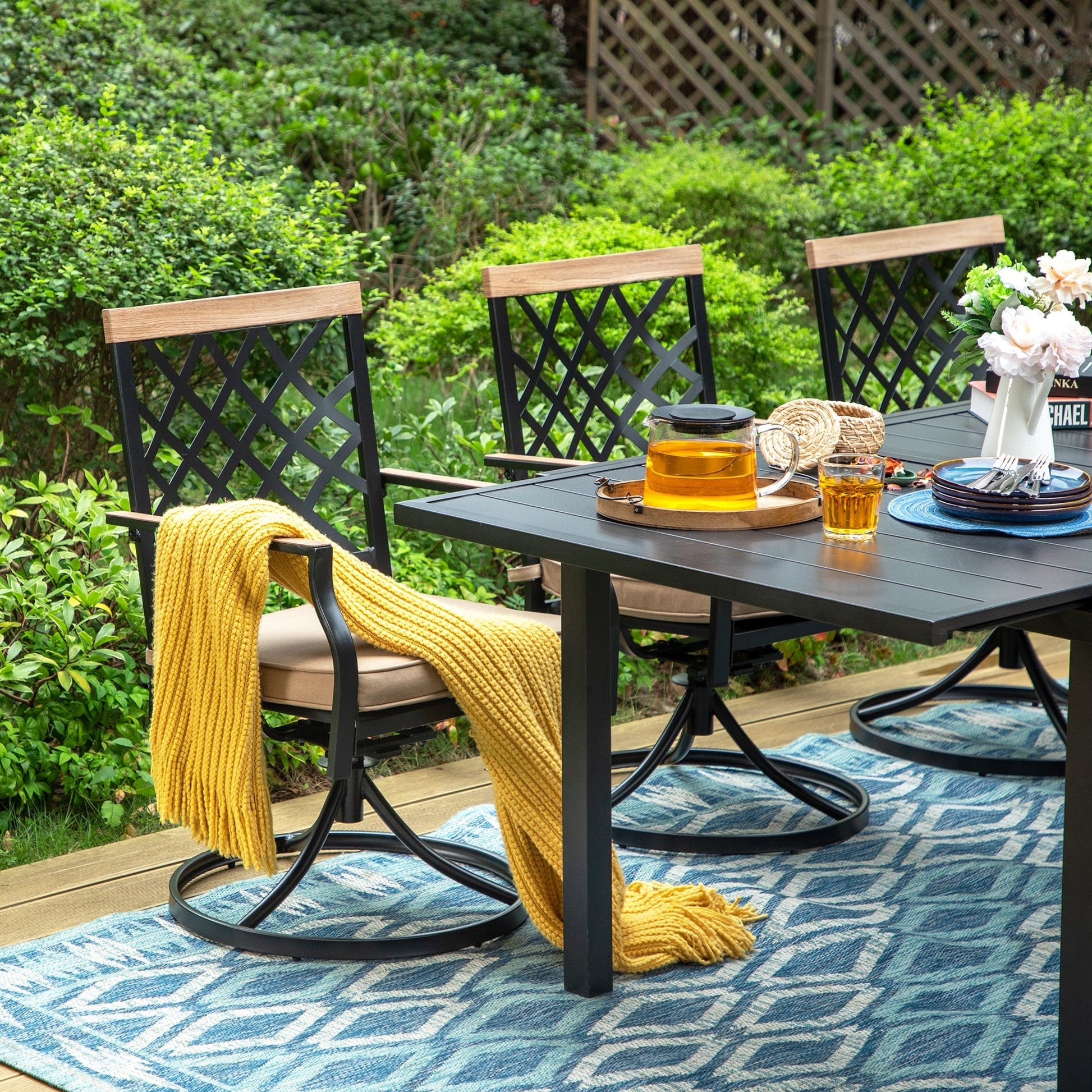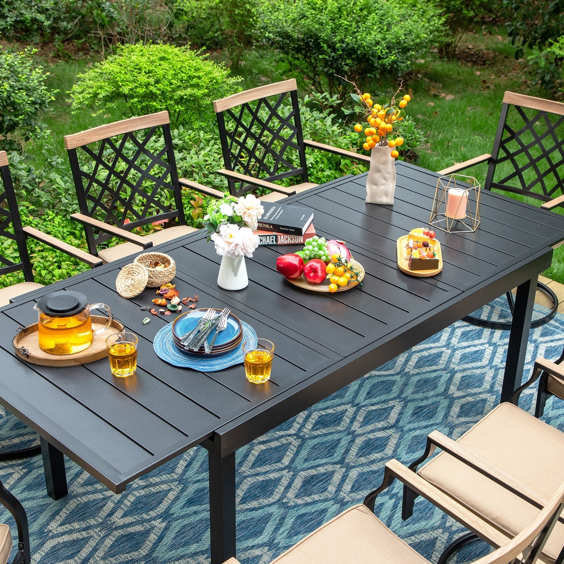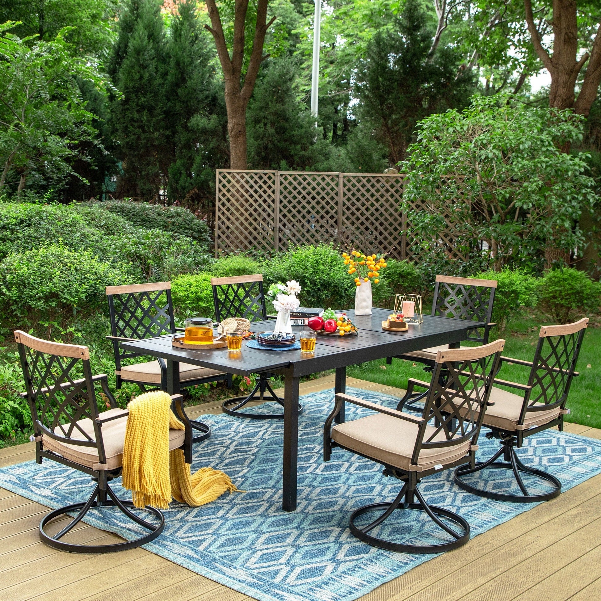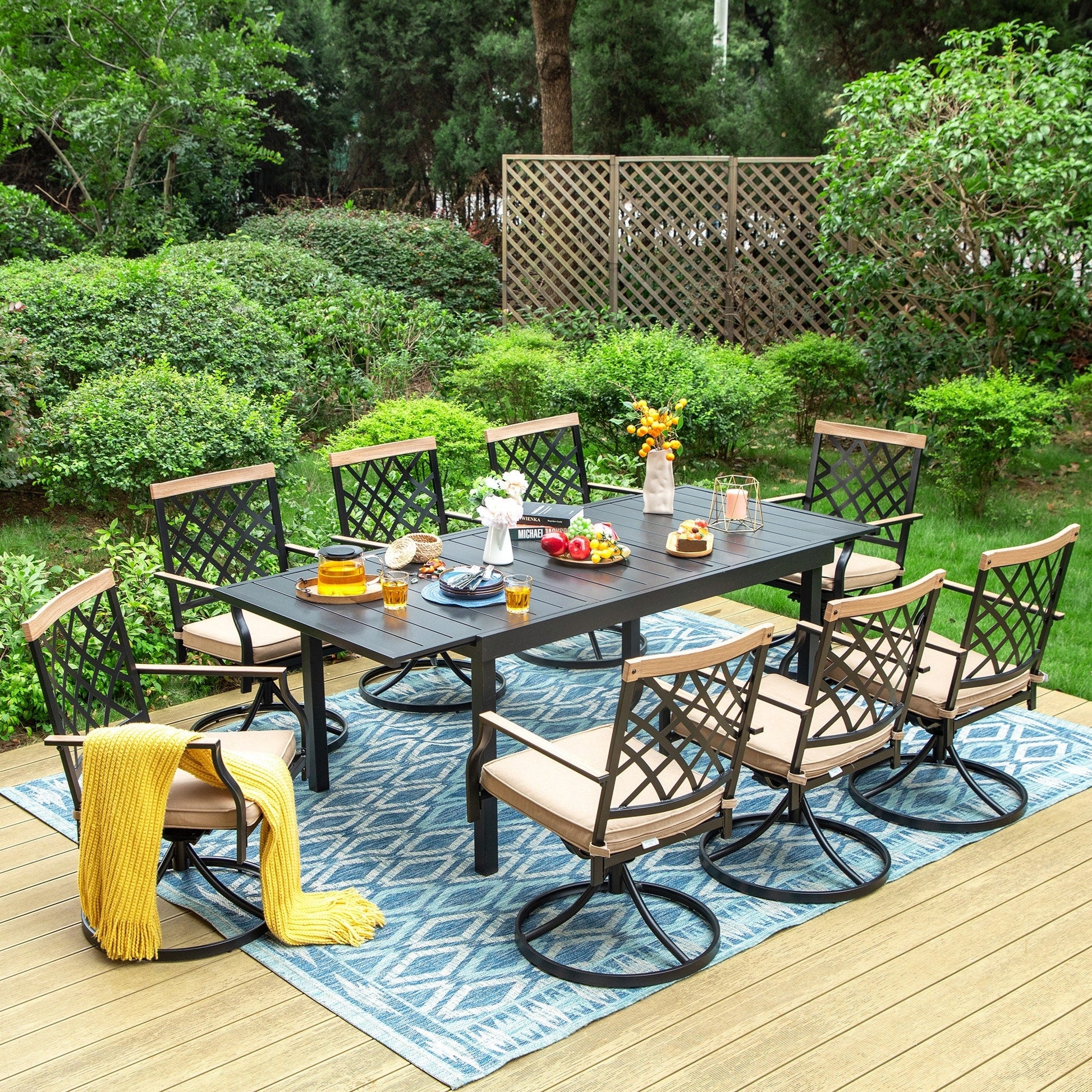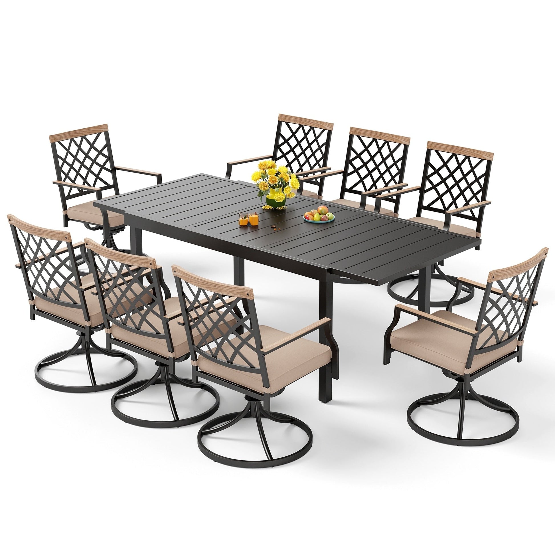 MAISON ARTS 7/9-Piece Outdoor Patio Dining Set, 6/8 Metal Swivel Dining Chairs, 1 Rectangular Expandable Table