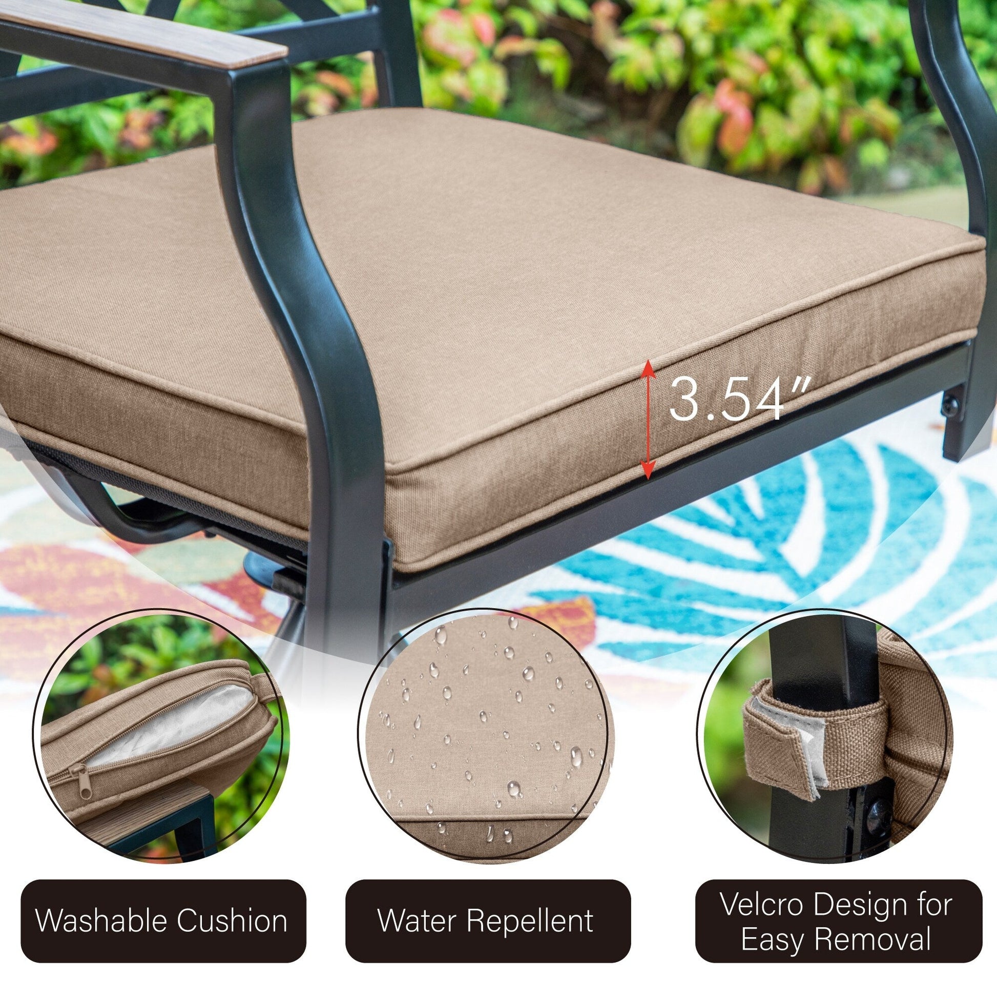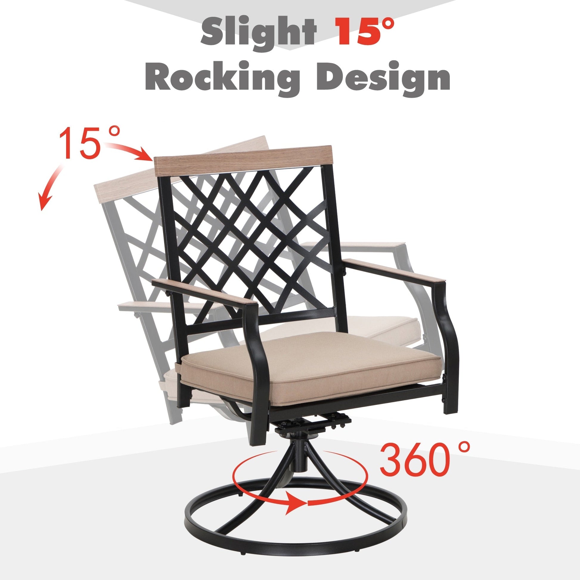 - 【Swivel Chairs】: For maximum stability, the frame is made of heavy-duty metal, and the seat bottom features a cross support that has a weight capacity of 350 pounds. Brandishing deep-seat cushions and the ability to both rock and swivel, you'll find yourself enjoying a glass of wine while sitting on a cloud.