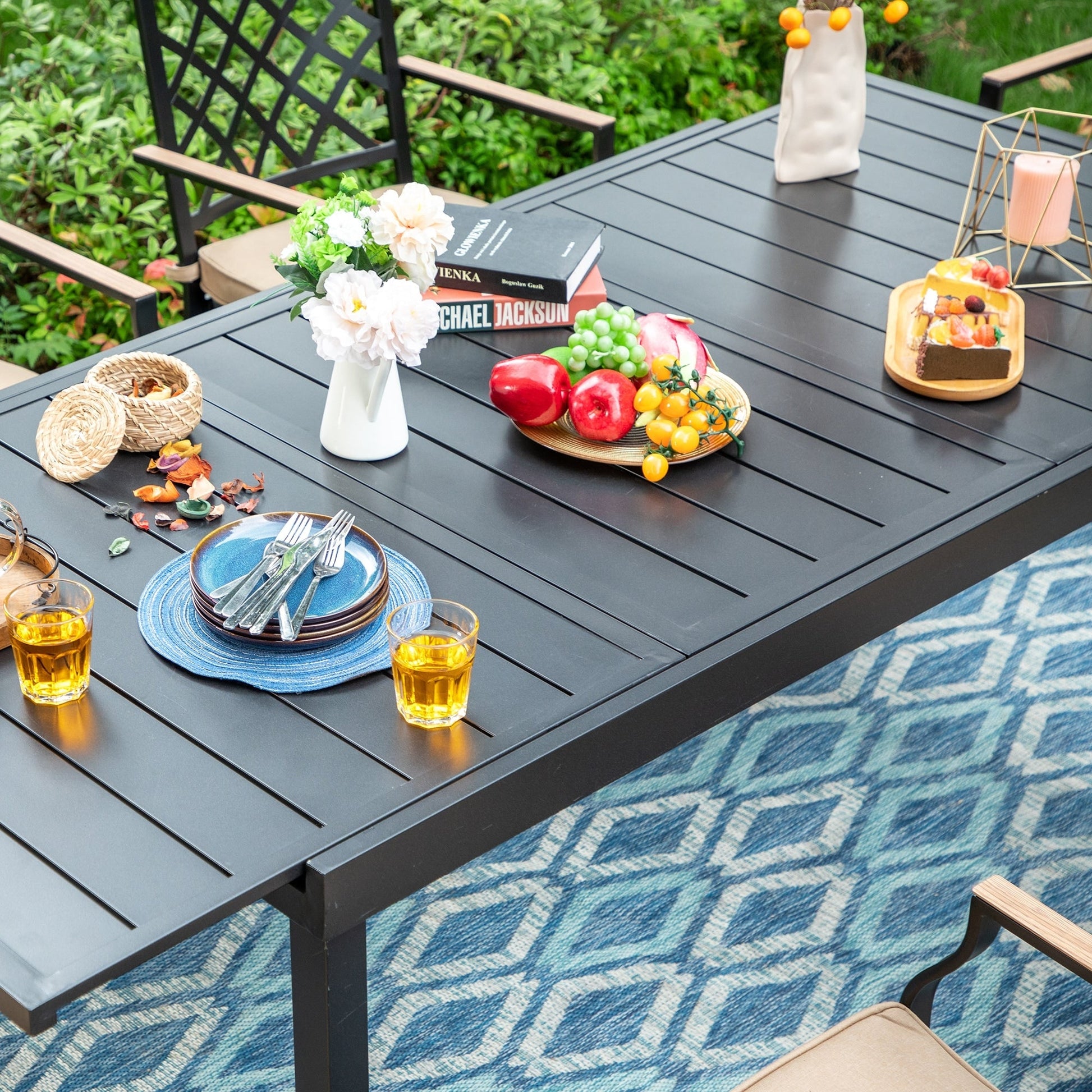 - 【Extendable Dining Table】Made of 100% Metal. The powder-coated heavy-duty construction makes this dining table resistant to weather, fading, cracking, splintering, or warping. Perfect for outdoor long-lasting use