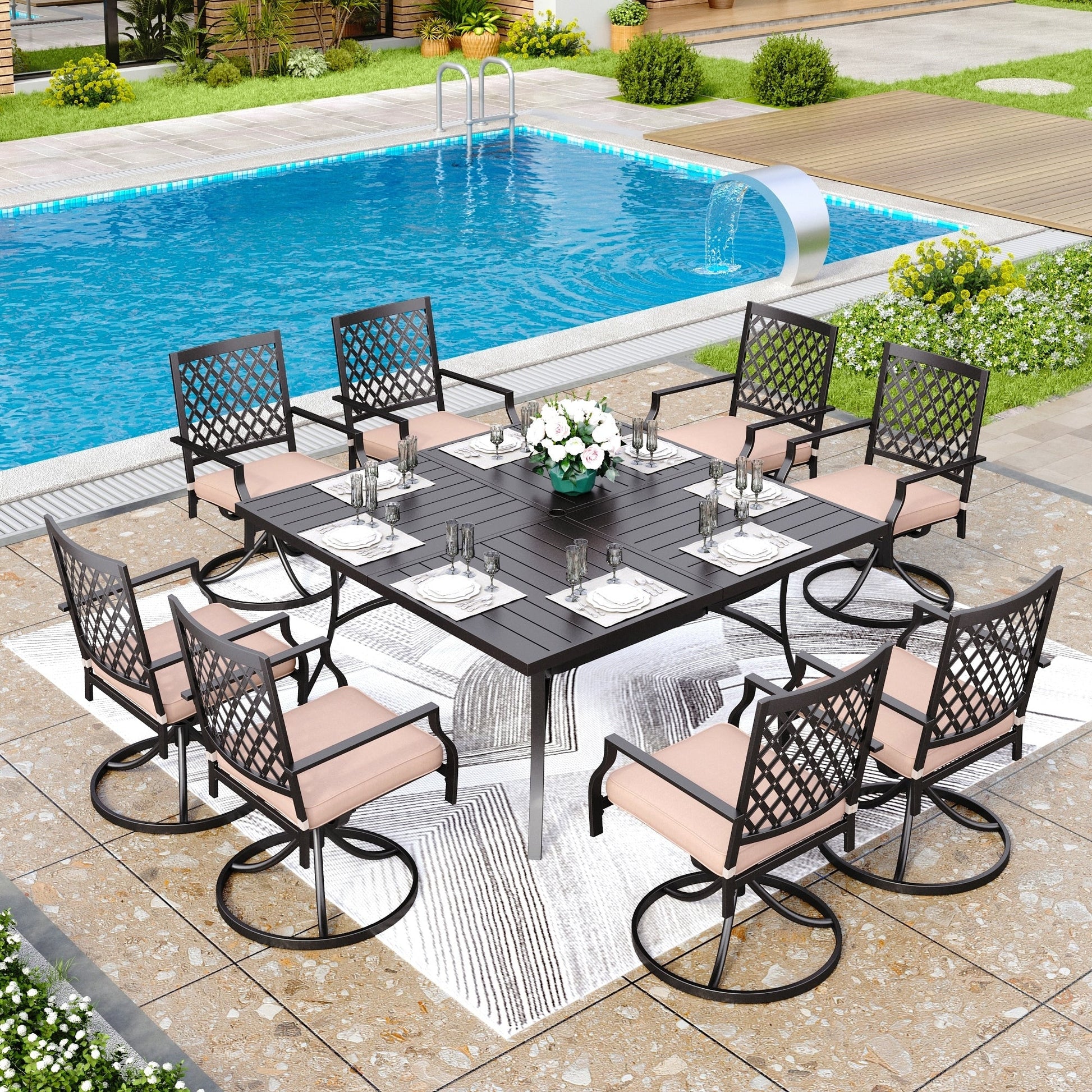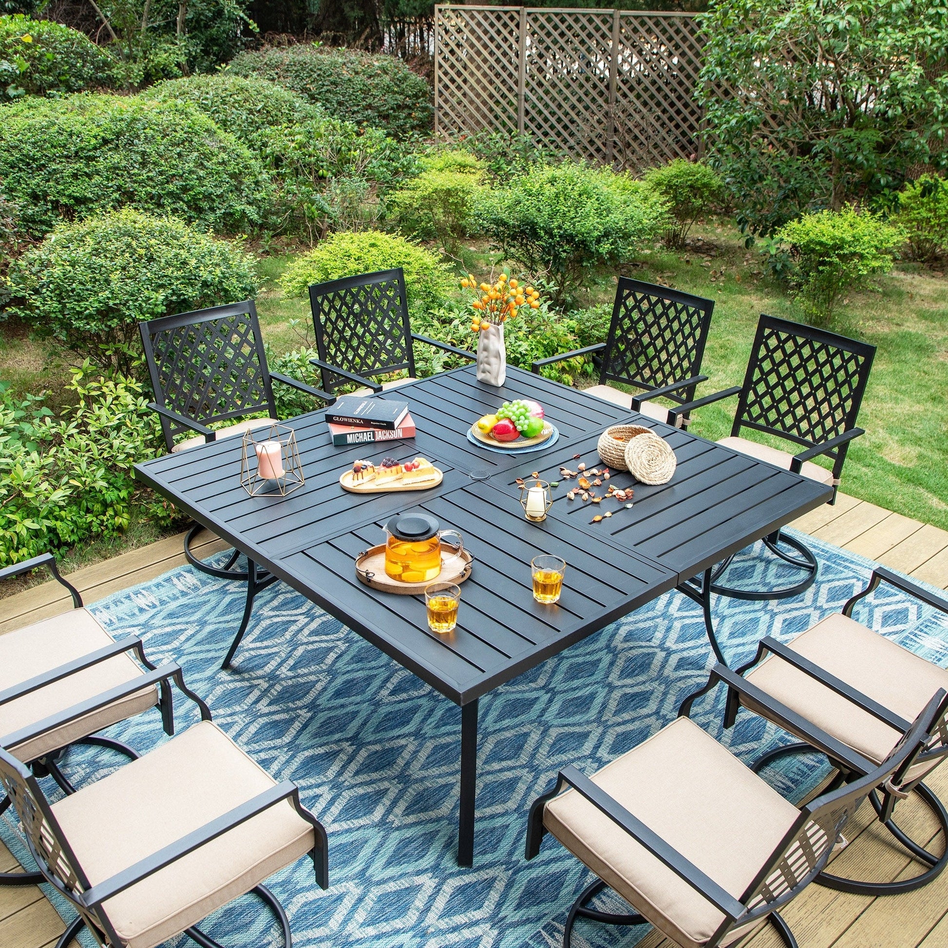 MAISON ARTS 9-Piece Patio Dining Set, 60 Inch Square Metal Table and 8 Swivel Dining Chairs