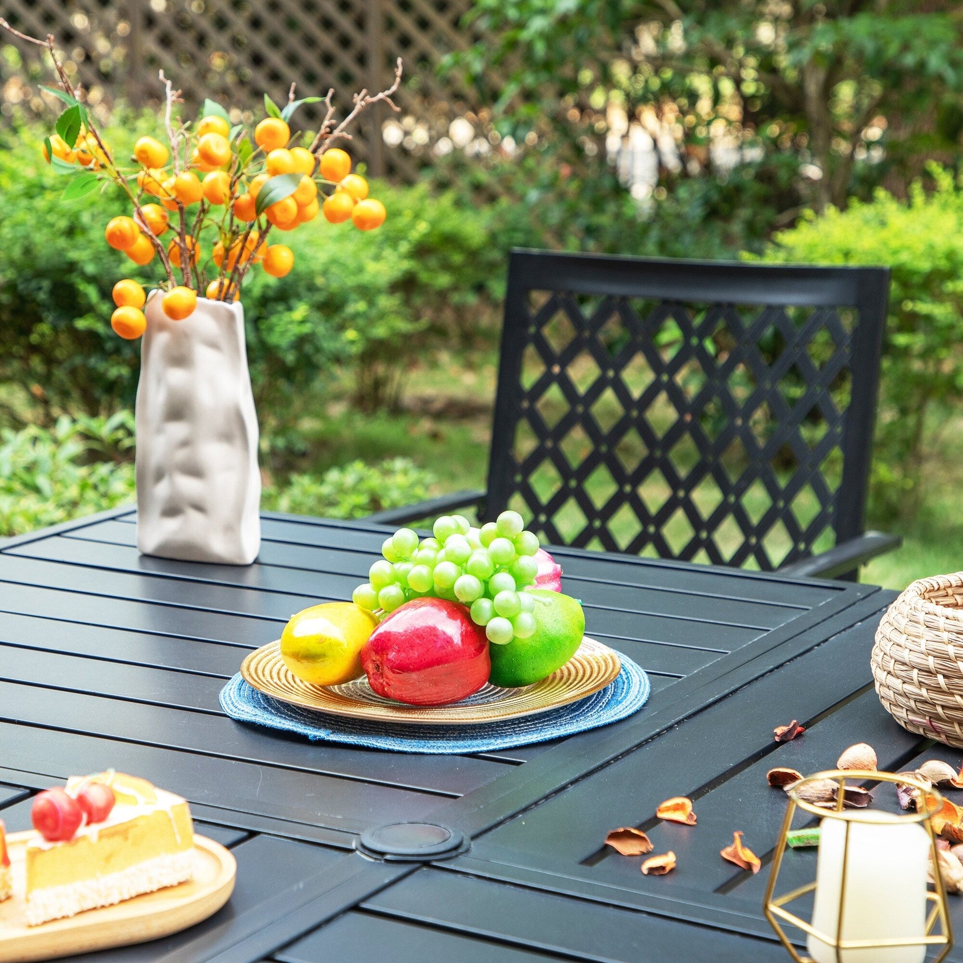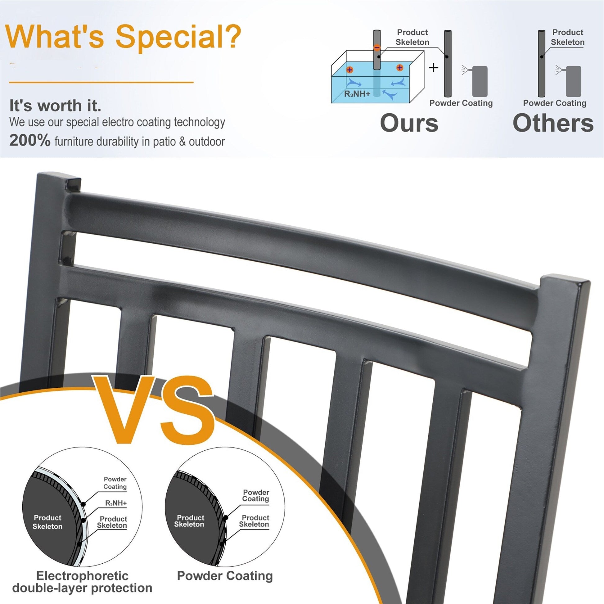 - Durable Metal Construction: Crafted from high-quality metal, this dining set is built to withstand the elements and provide long-lasting durability.