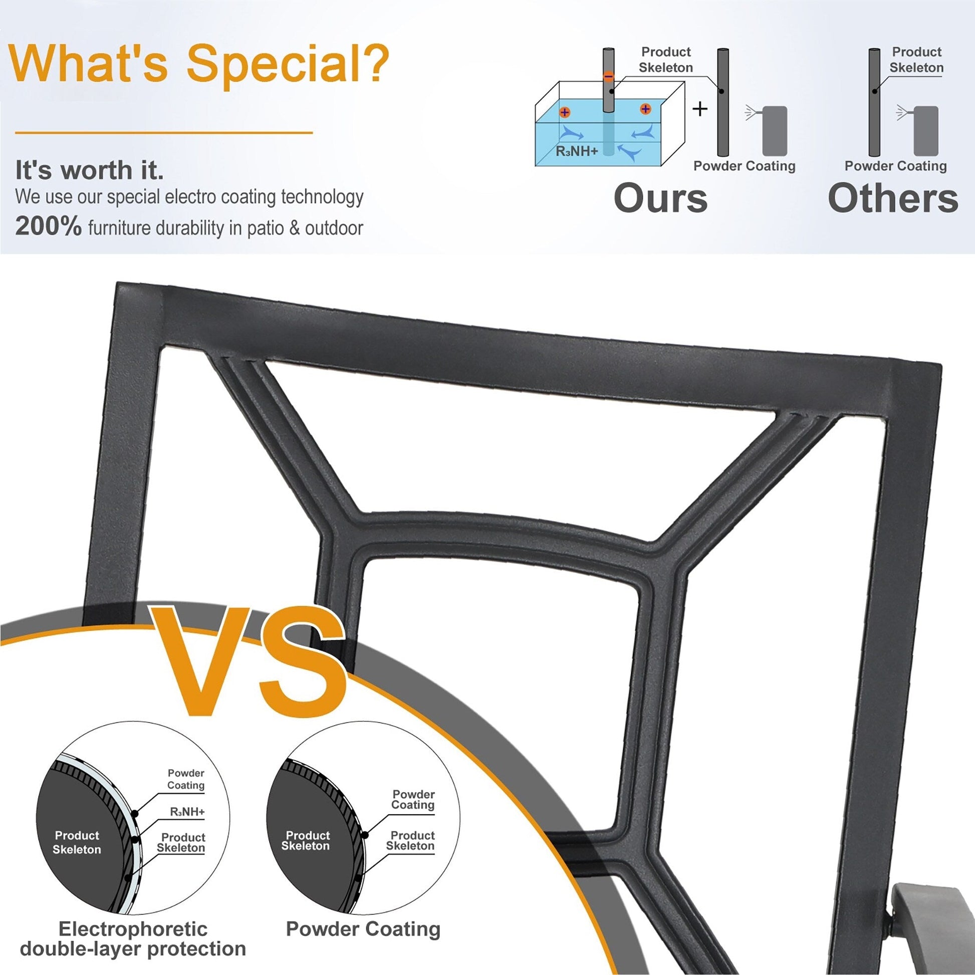Update your dining area with this 3-piece dining set. This set is made from high-quality metal material. The metal patio dining chairs is not only suitable for outdoor garden lawn patio pool coffee time but also suitable for indoor kitchen living room dinner time.