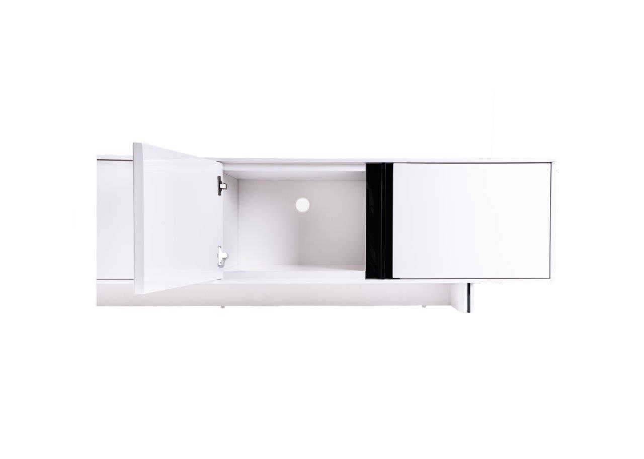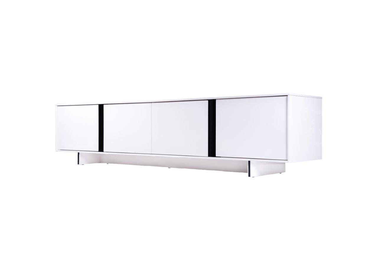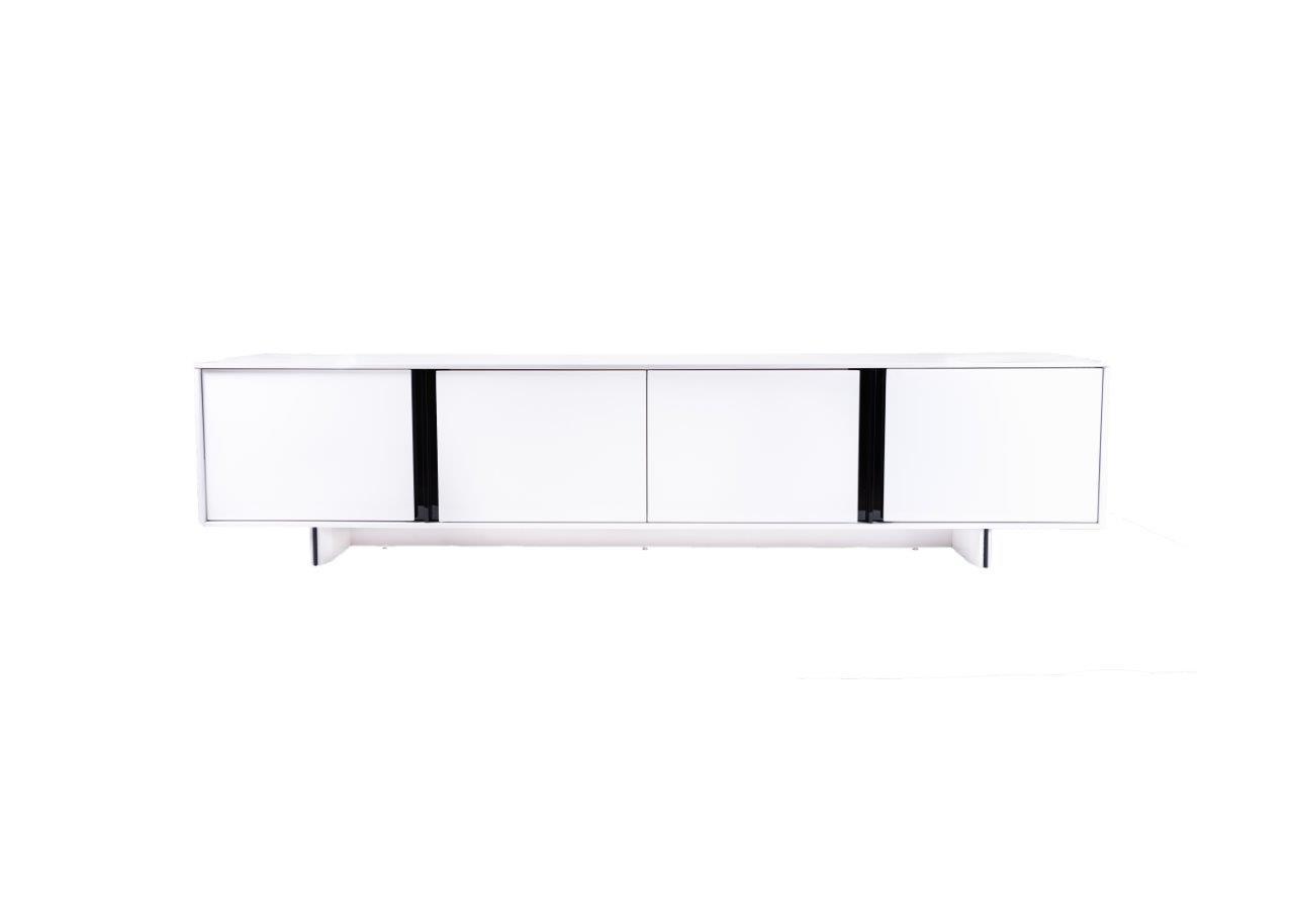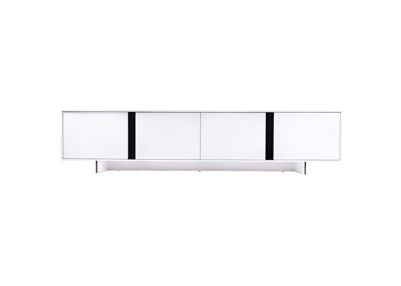 [description]Apportez design et fonctionnalité à votre salon avec le meuble TV Malmo. Ce superbe meuble affiche un style élégant et moderne et offre un espace de rangement derrière ses 4 portes. Son caisson repose sur un piètement contemporain laqué. Découvrez ses détails : l'acier nickelé noir entre les portes, qui s'ouvre, lui confère une touche d'originalité.[/description]