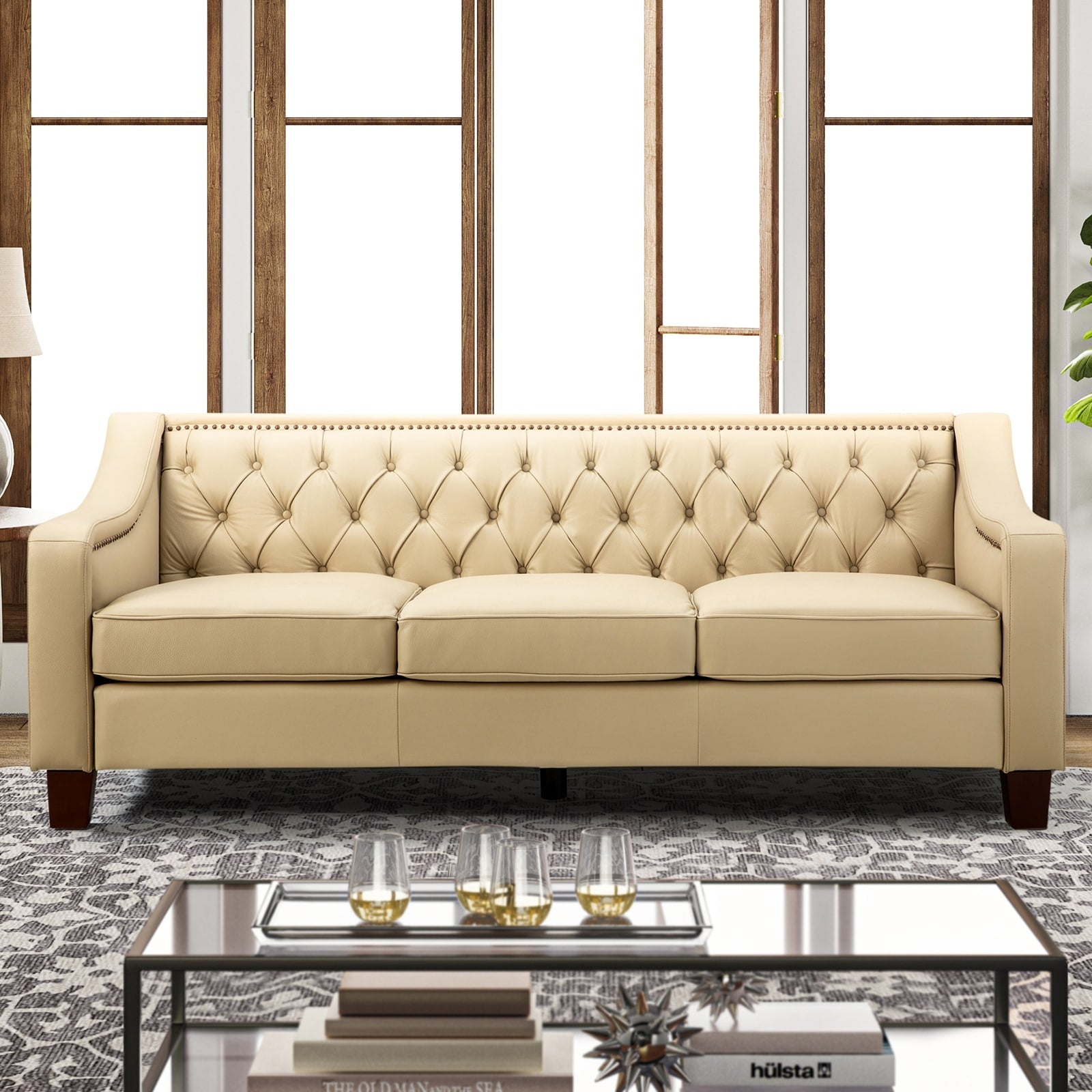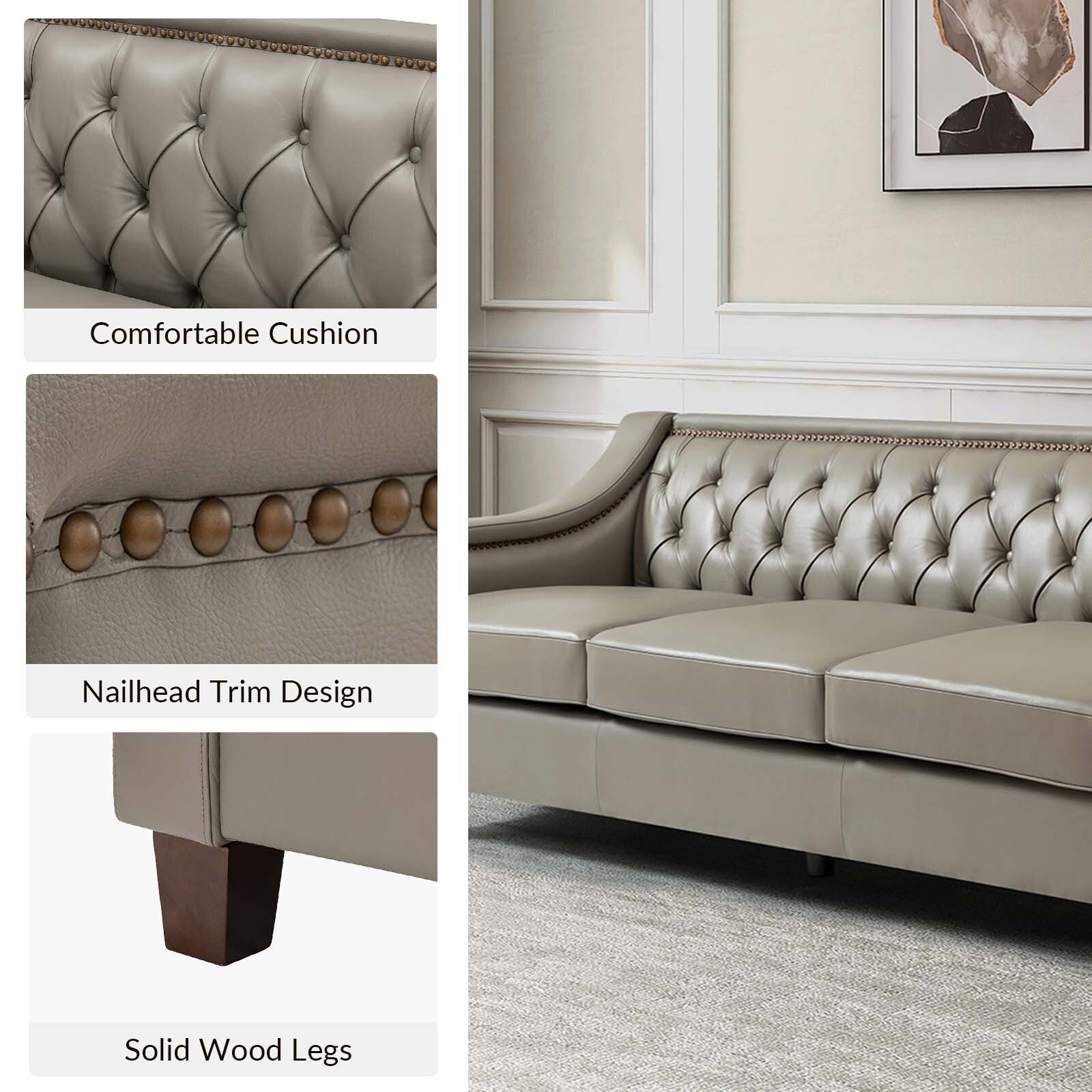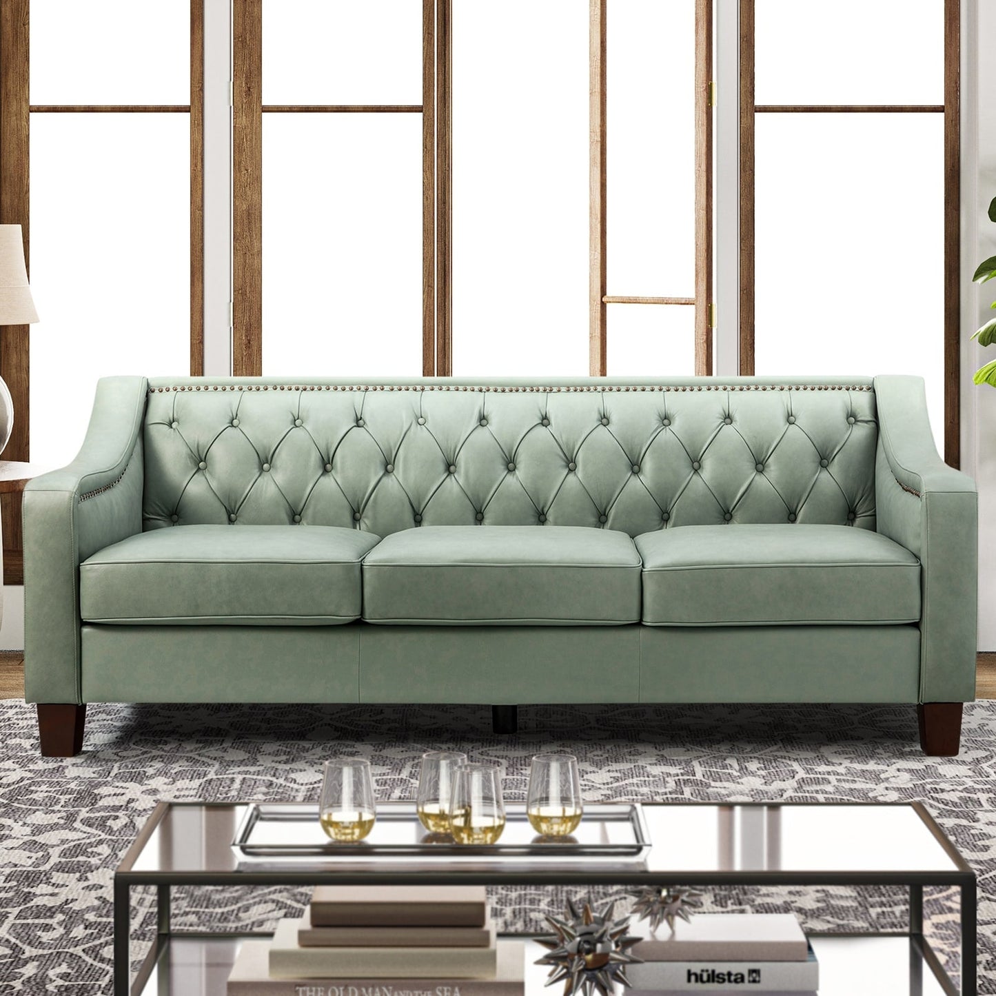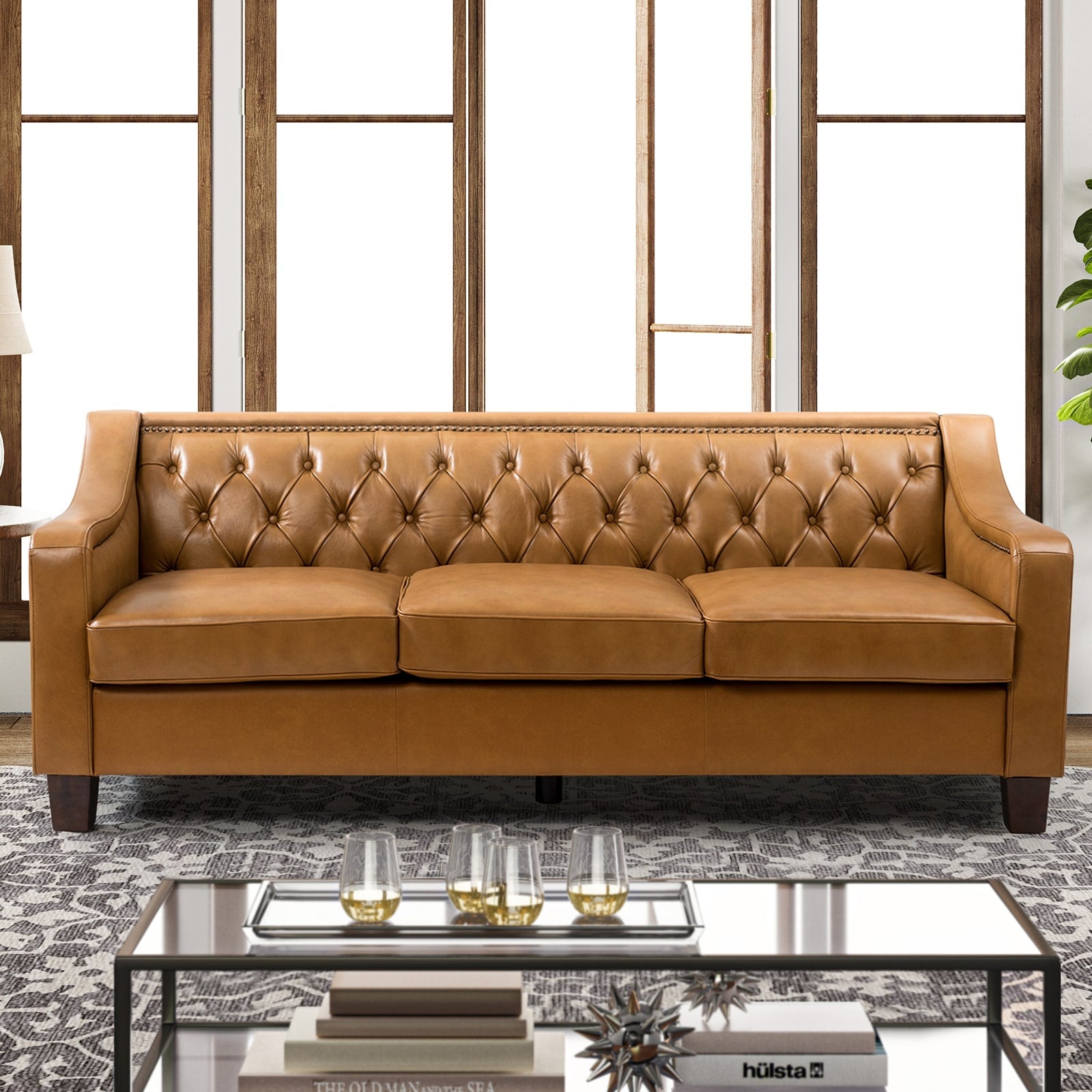 Mateo 82.28 Wide Transitional Genuine Leather Sofa with Nailhead Trim and Button-Tufted Back