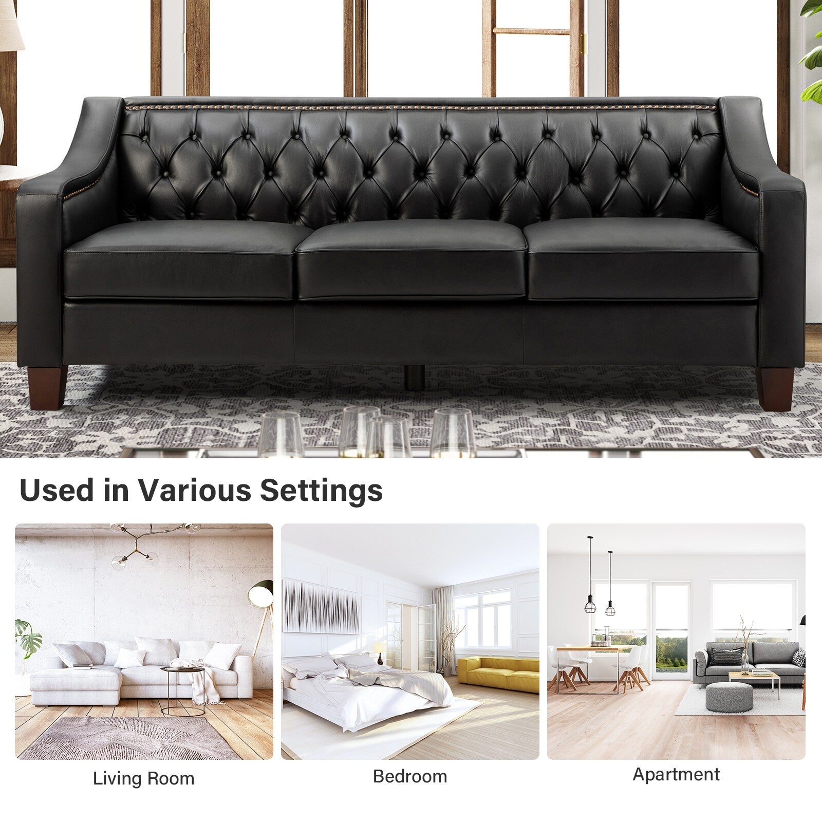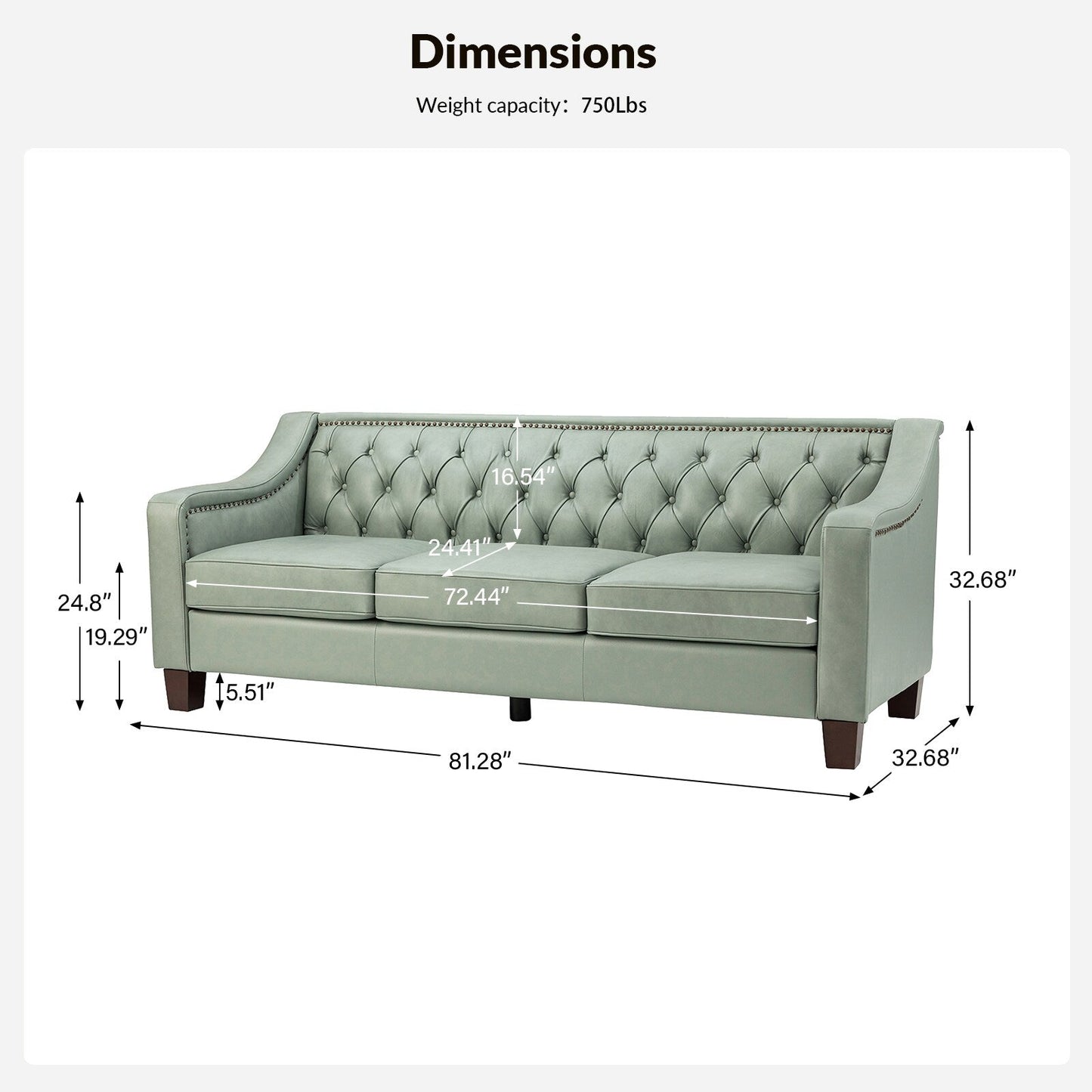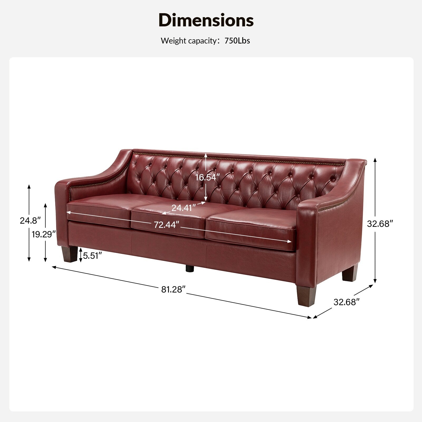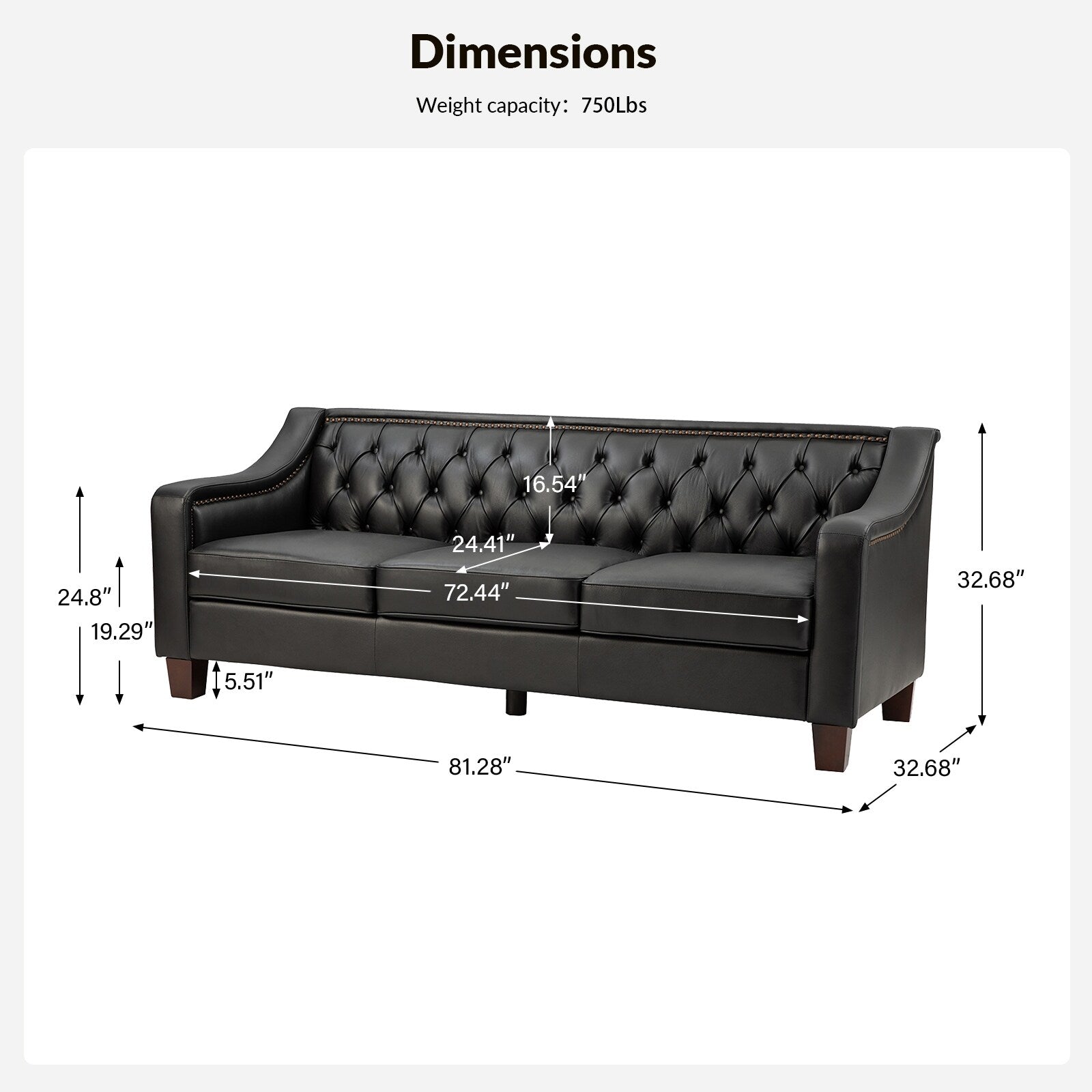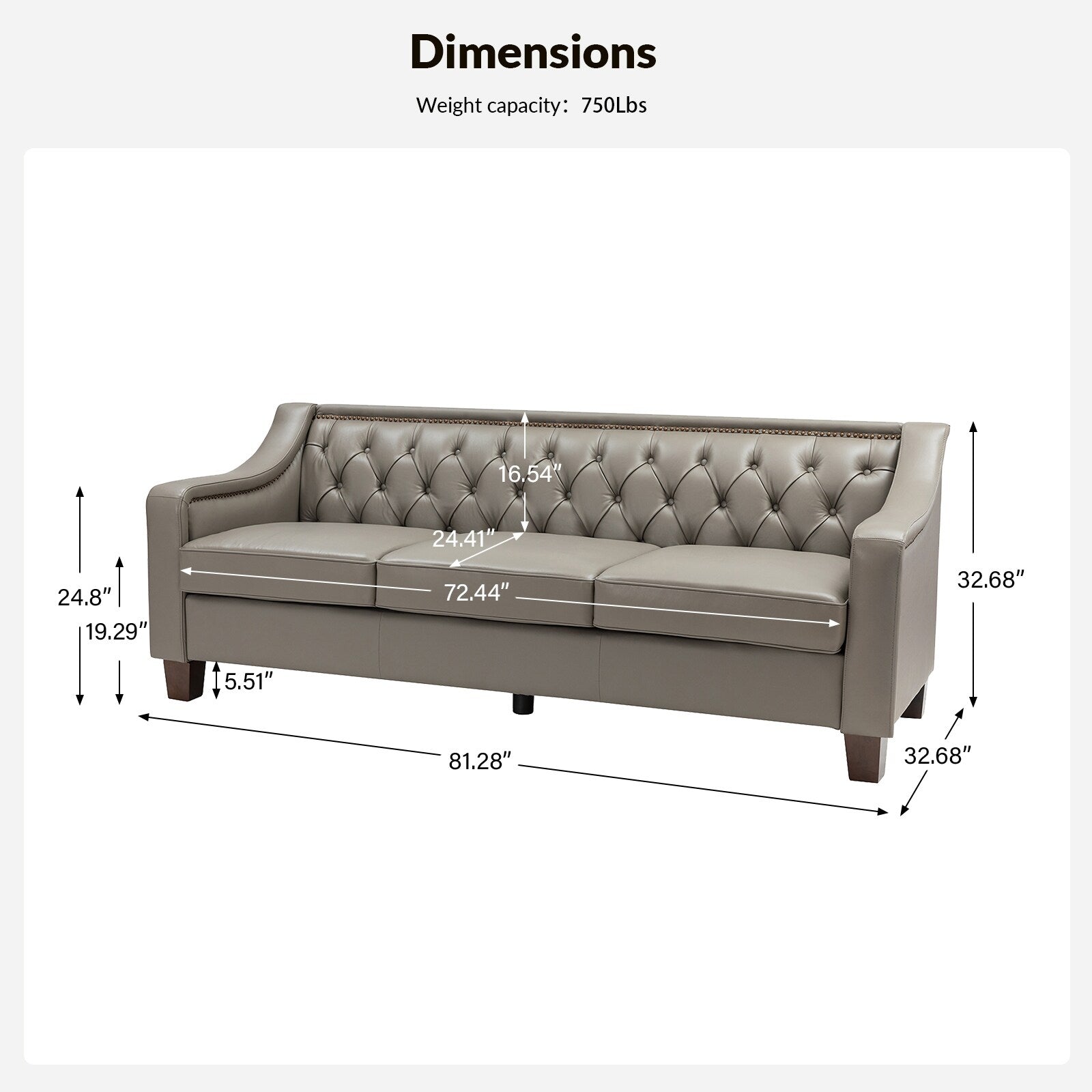 Mateo 82.28 Wide Transitional Genuine Leather Sofa with Nailhead Trim and Button-Tufted Back