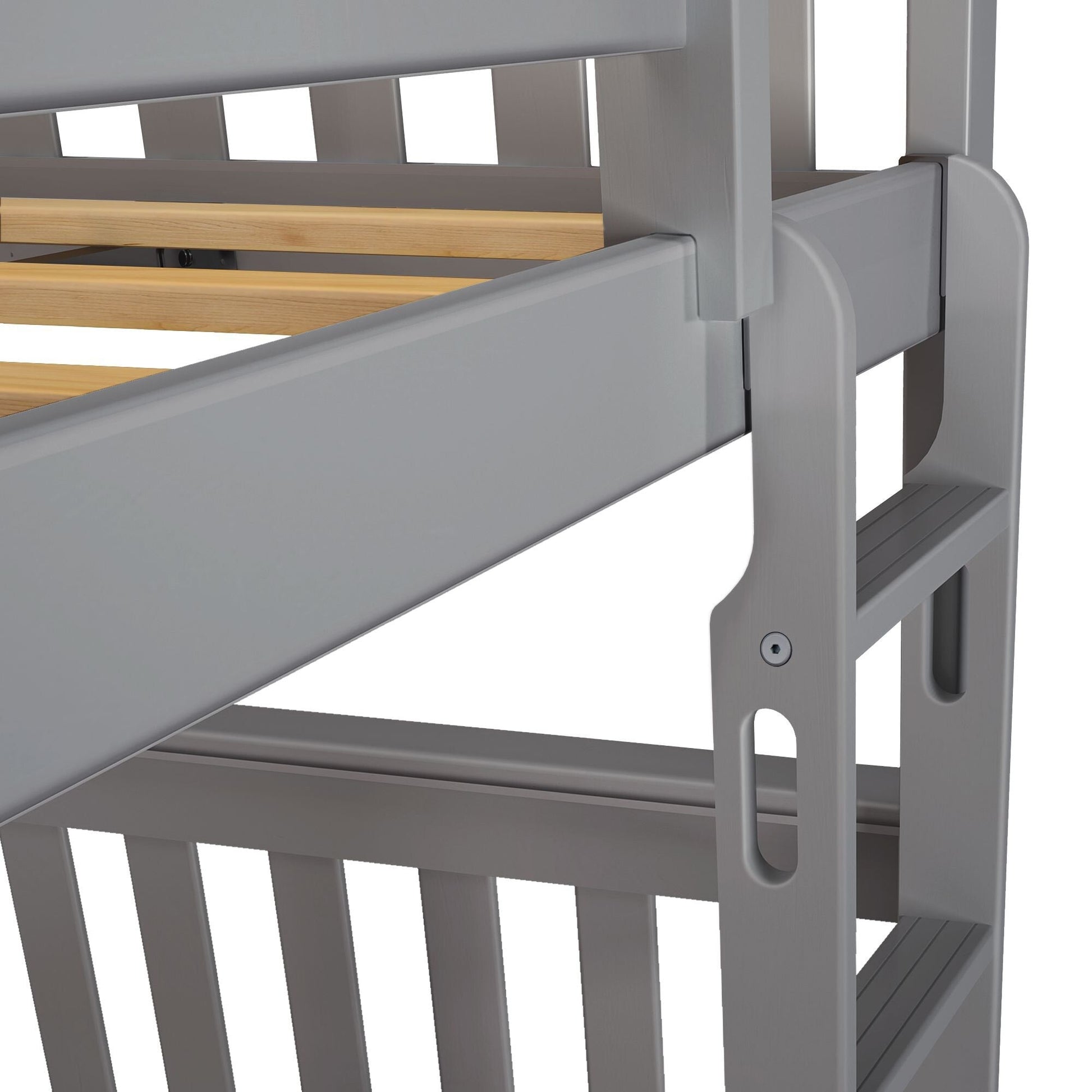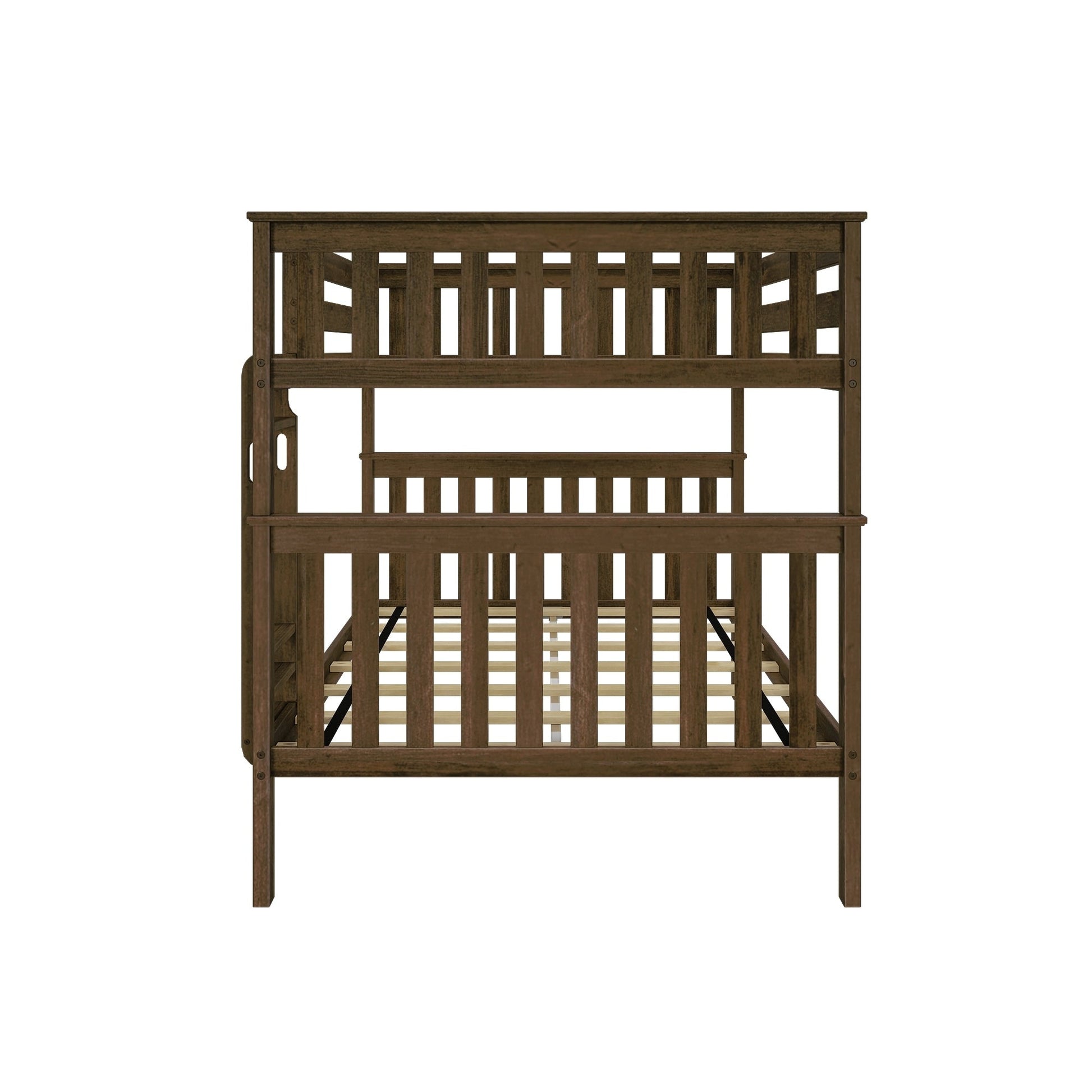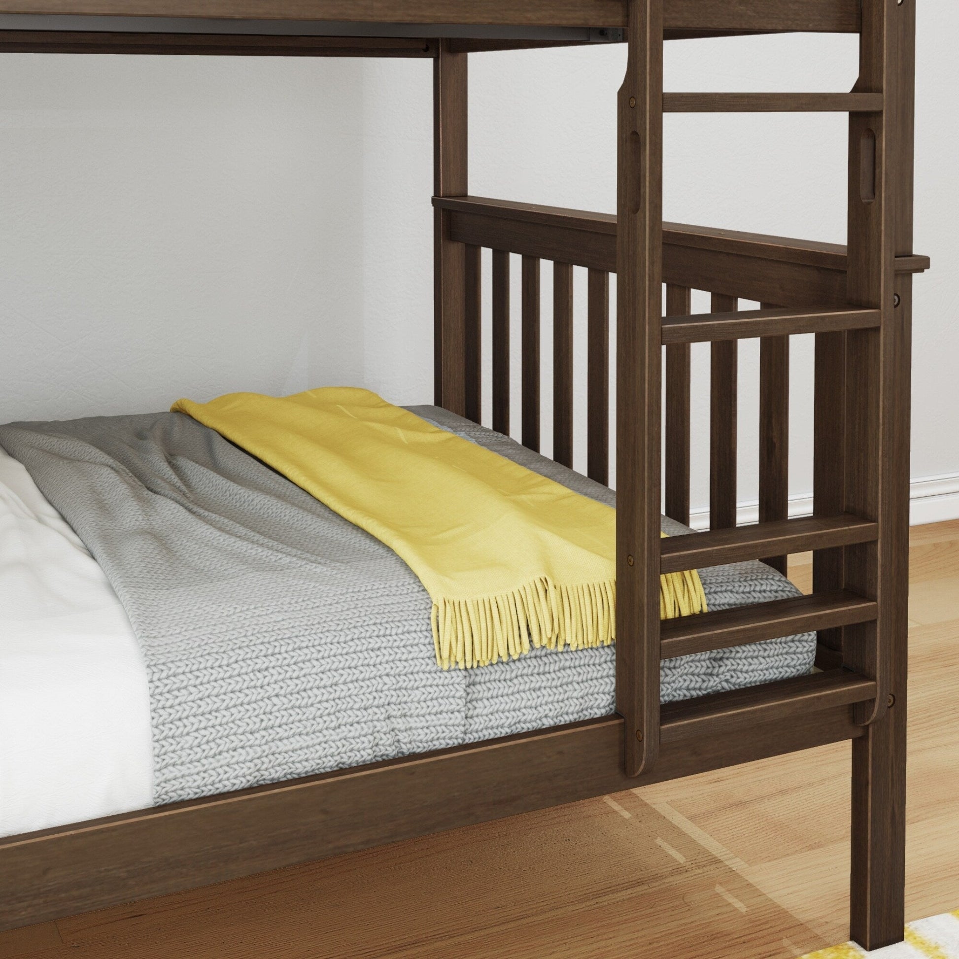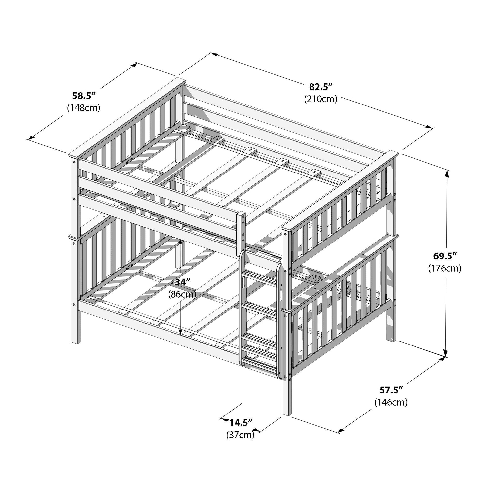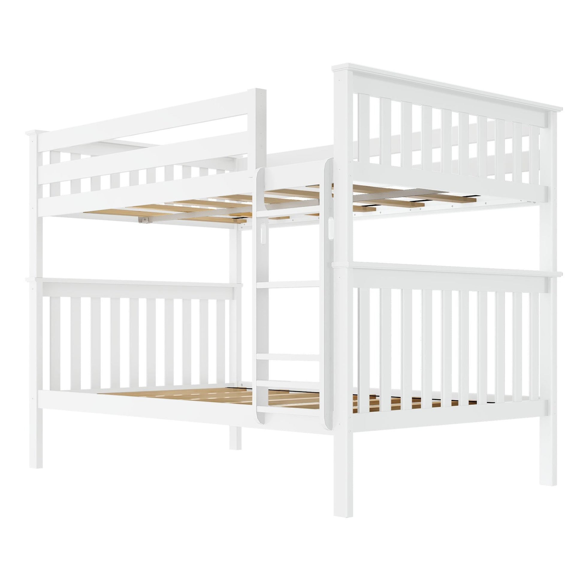 Plenty of room for sleep and play? Now that’s a win-win! The Max & Lily Full Over Full Bunk Bed is the perfect combination of functional and fun that both kids and parents love. Top bunk features tall 14” guardrails, so the bed safely fits standard mattress sizes. Angled ladder with rounded edges offers comfortable, easy climbing. Added bonus - ladder is both reversible and removable, so it is flexible to work with any space. Solid, knot-free New Zealand pine wood adds strength and stability. All Max & Lily products use a durable, low VOC finish. The slatted head and footboards and flush, color-matched hardware give this bunk bed a clean, modern look. Instructions, upper/lower slat rolls, and required hardware are included. With solid plywood slats and a metal support bar for the top bunk, each sleeping surface can support 400 pounds of resting weight. This bed meets or exceeds Federal safety standards for kids furniture. When it’s time for play, this bunk bed’s space saving design frees up plenty of floor space by stacking two sleeping surfaces. Add storage drawers or trundle to make this bed even more functional. 2+ adults make assembly simple and easy. This bunk bed is compatible with standard full size mattresses between 5 and 8 inches thick. No box spring or bunkie board is required for this bed. The Full Over Full Bunk Bed from Max & Lily offers exceptional quality and affordability that kids and their parents will enjoy for years to come. Max & Lily is a member of the Maxwood family of brands - the kids furniture experts bringing a tradition of superior quality, safety and fun!