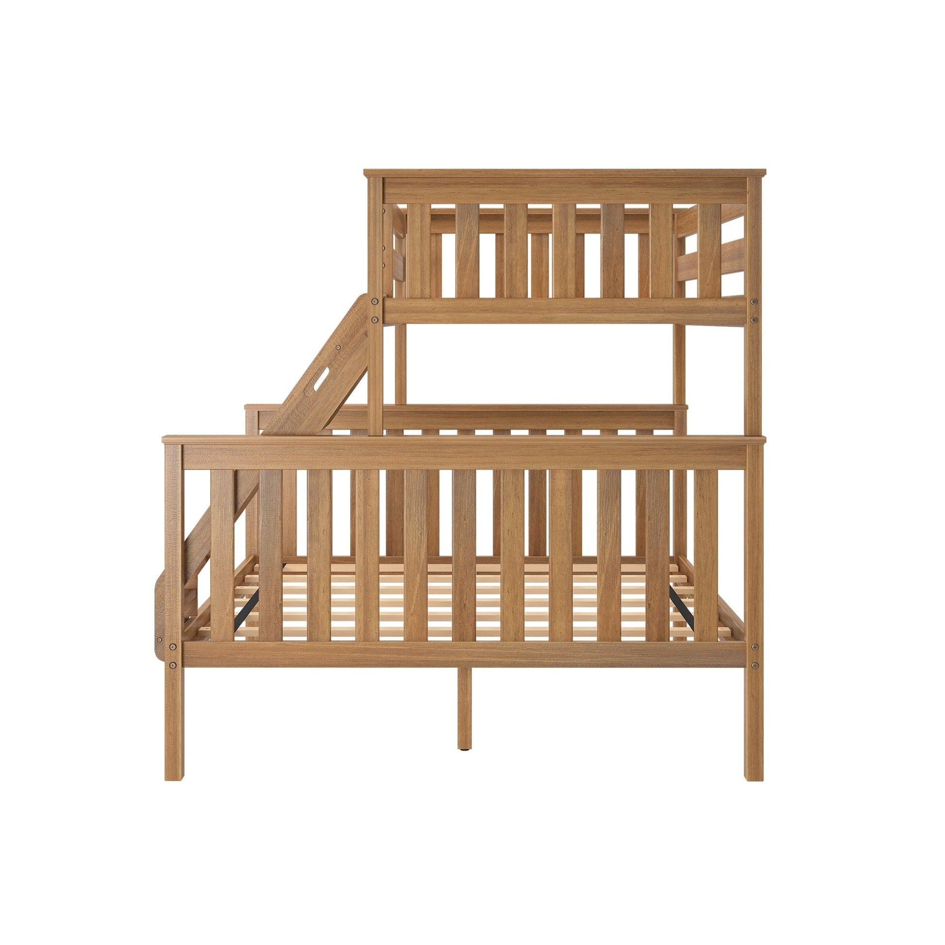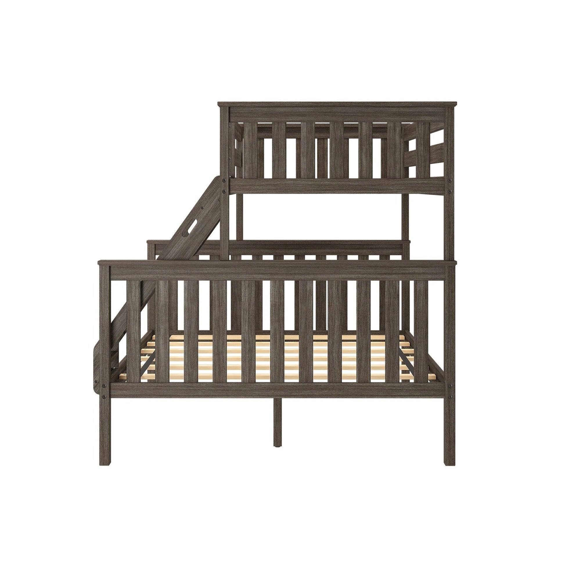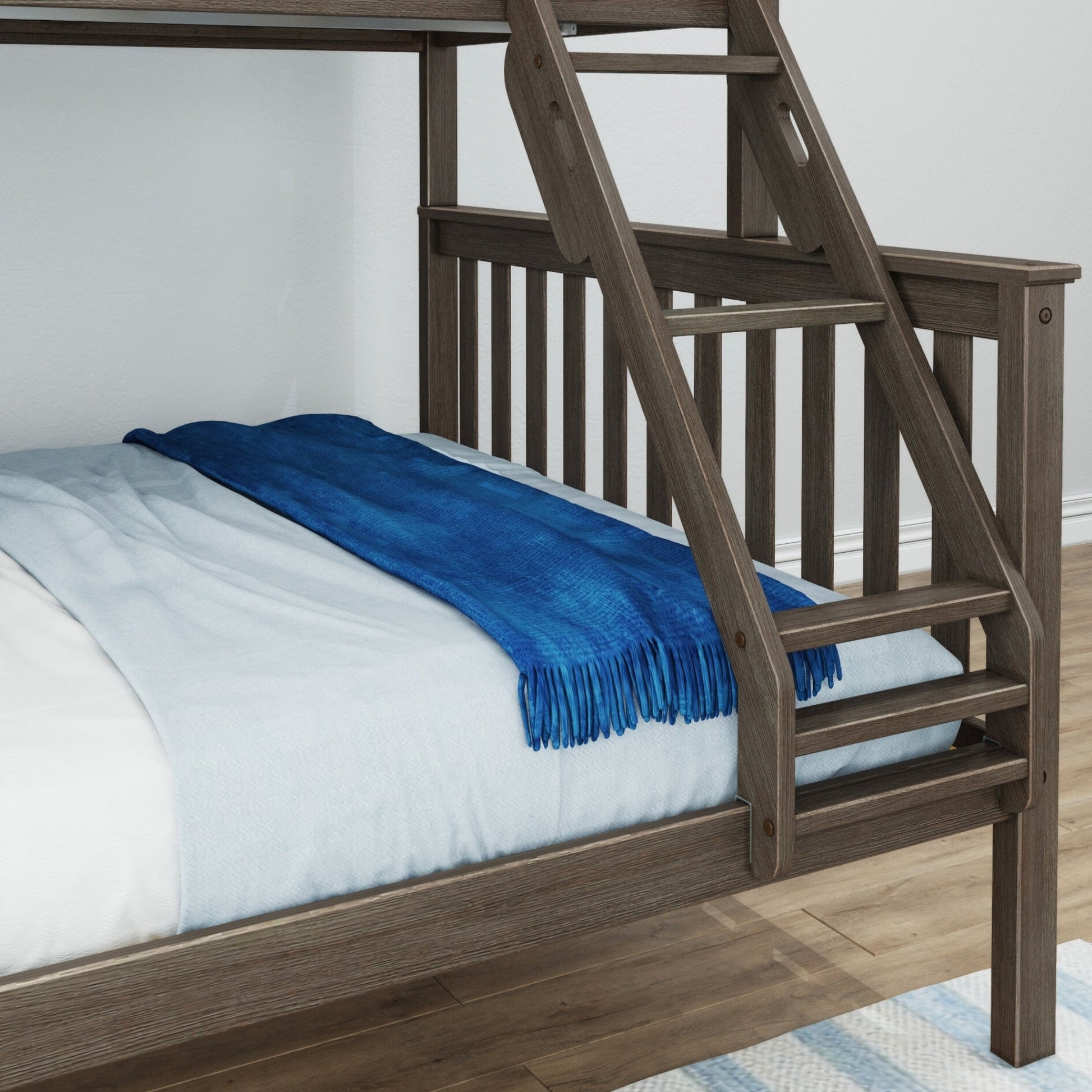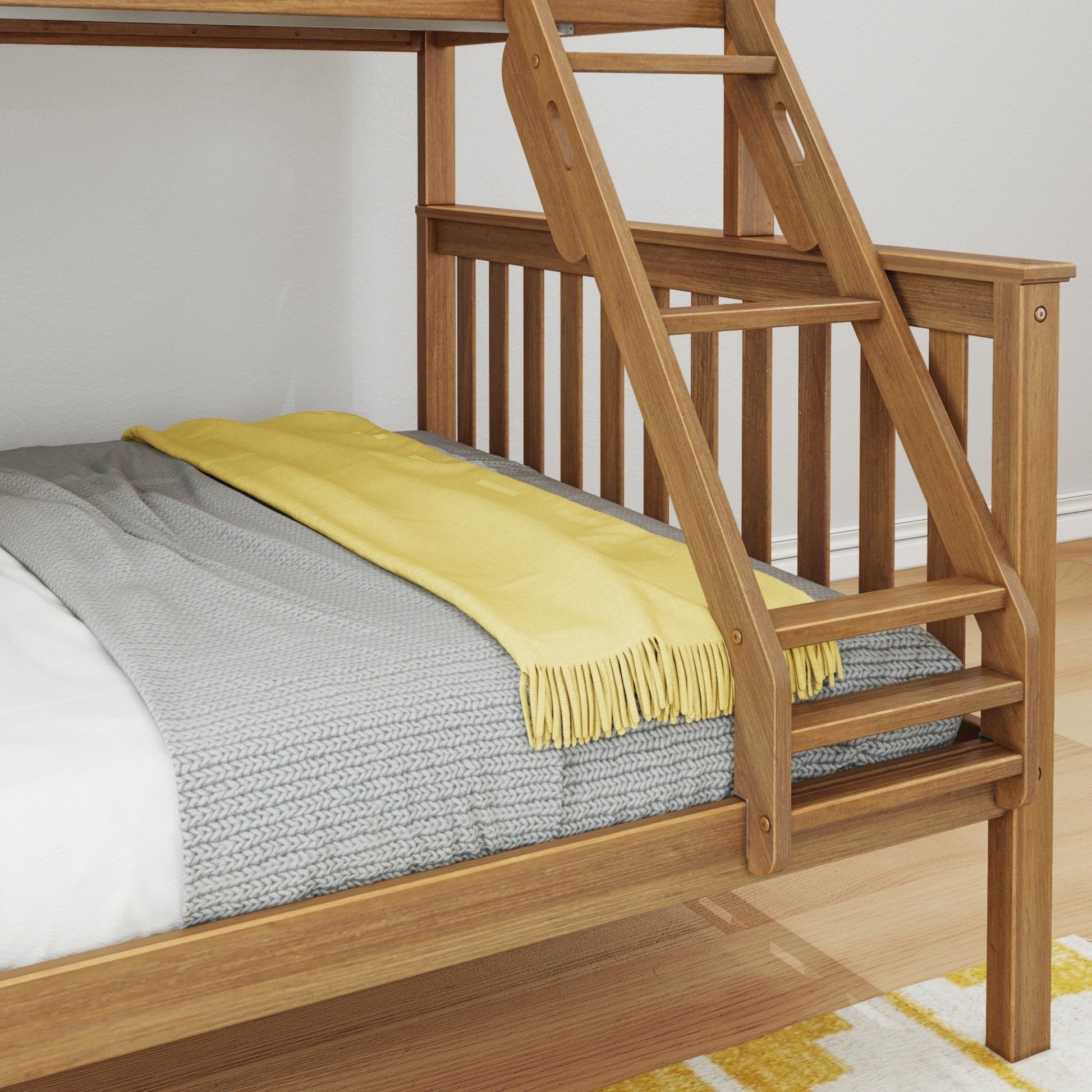 The Max & Lily Twin XL over Queen Bunk Bed perfectly combines fun and function for a design that both kids and parents love. The knot-free, solid wood bunk bed frame adds superior strength and stability. This twin XL over queen bunk bed for kids used a durable, low VOC finish that is ideal for your clean and healthy kid’s room. The bunk bed features tall, 14-inch guard rails, so the bunk bed safely fits standard mattress sizes up to 8 inches thick. A ladder with rounded edges offers comfortable, easy climbing. The versatile ladder can attach on either side of the bunk bed to fit your room perfectly. A queen size bed on the bottom and twin XL size bed on the top give plenty of room for growing kids to stretch out and read or sleep. The slatted headboards and footboards and flush, color-matched hardware create a clean, modern look. With solid plywood slats and a metal support bar, each sleeping surface can support 400 lbs. of resting weight. This bunk bed twin XL over queen includes easy-to-read instructions, hardware and all the tools you need for a quick setup. 2+ adults are recommended for assembling the bunk bed. This bunk bed is compatible with standard twin XL and queen size mattresses between 5 and 8 inches thick. No box spring or bunkie board is required for this bed. This kids bunk bed meets or exceeds Federal safety standards for kid’s furniture. The Twin XL over Queen Bunk Bed from Max & Lily offers exceptional quality and affordability that kids and their parents will enjoy for years to come. Max & Lily is a member of the Maxwood family of brands – the kids furniture experts brining a tradition of superior quality, safety and fun!