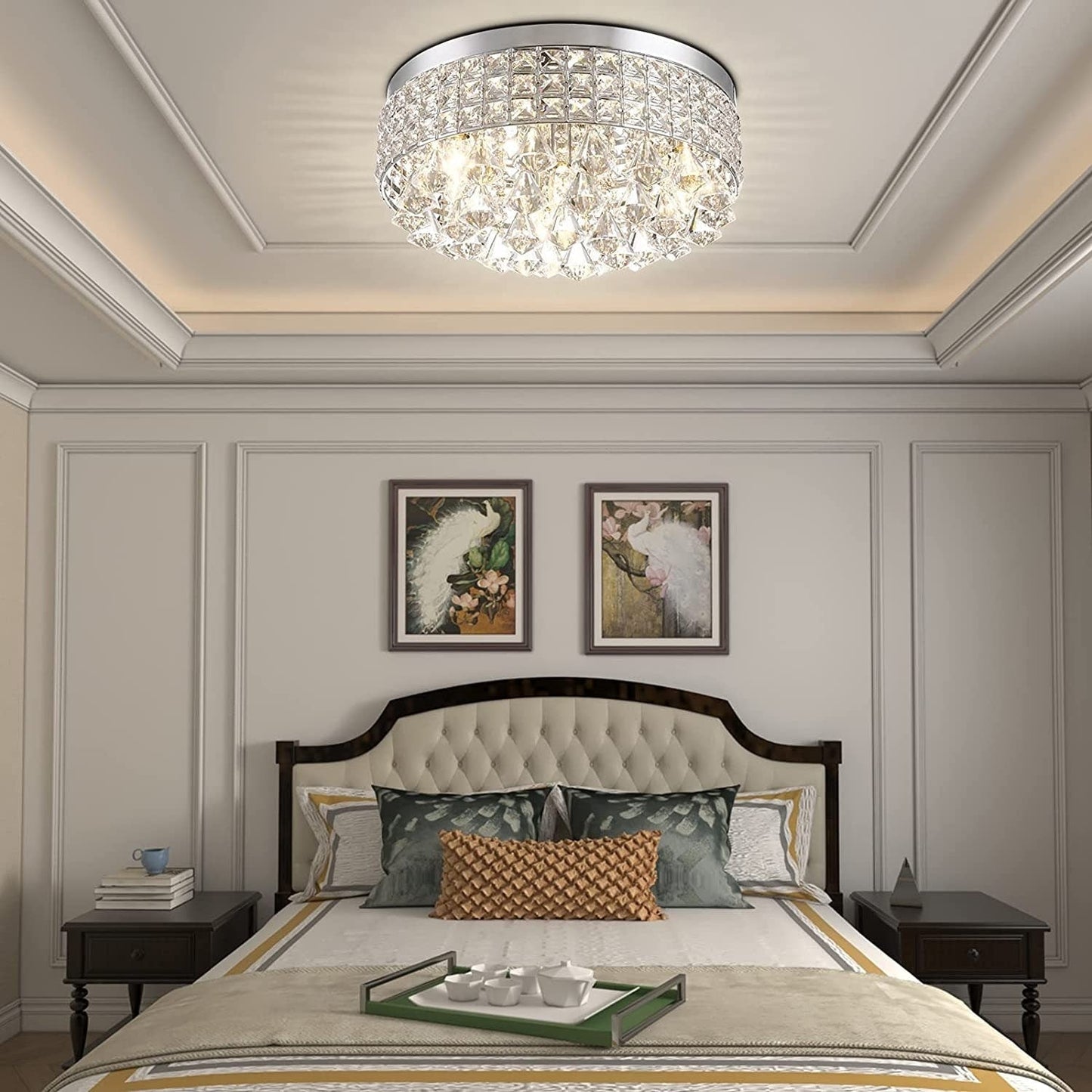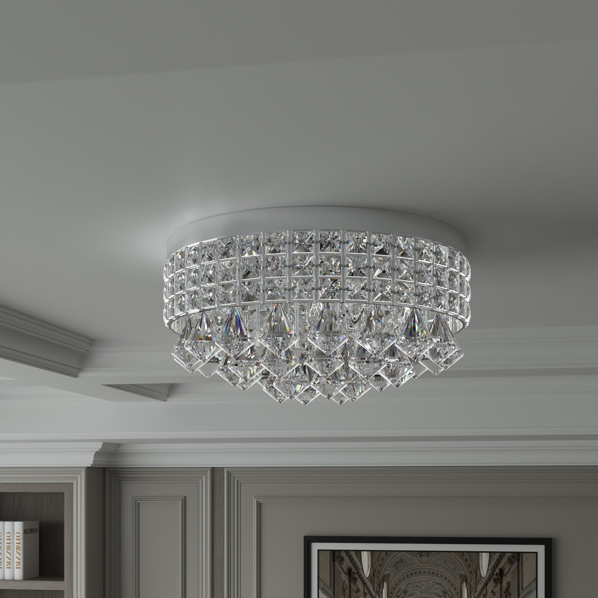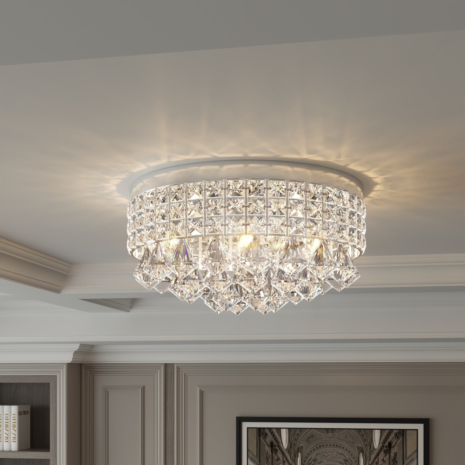Add a touch of elegance and glamour to any room with this Maxax 4-Light 15' Crystal Metal Flush Mount. This beautiful flush mount is adorned with 100% crystal balls that create stunning rainbow lights, making it the perfect addition to any space. The installation and assembly of the fixture is effortless, and the top-grade glass crystals ensure that they will not fade or discolor over time.