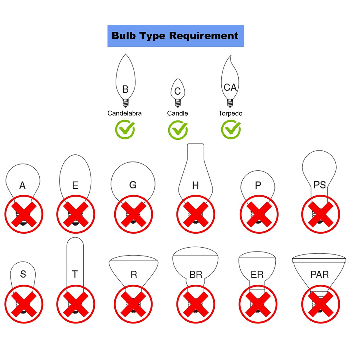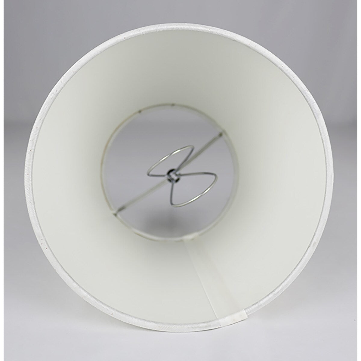 SHADES DIMENSIONS: 4' top diameter, 6' bottom diameter, and 5' height.FABRIC: Faux silk. HardbackFITTER: Clip-on fitter designed to fit teardrop or torpedo candelabra bulbs. NOT for standard regular light bulbs.SUGGESTED MAXIMUM WATTAGE: 40 watts.