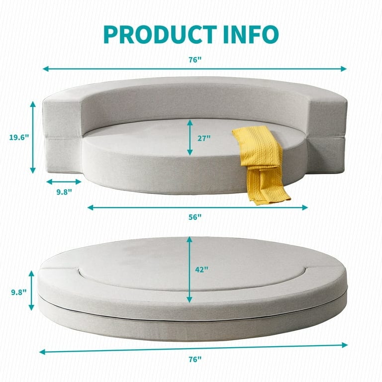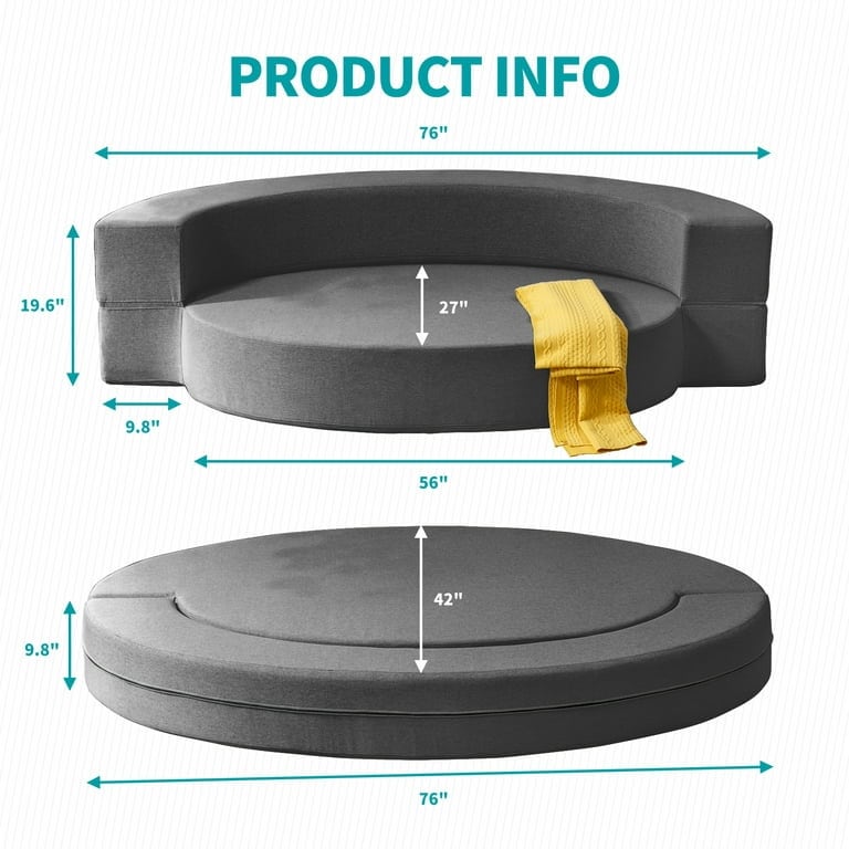 ð ãConvertible FormsãFrom folding couch bed to a floor mattress, this futon sofa bed stands out with its size that wonât overpower the space, measuring 76''W x 36.8''D x 19.6''H in sofa form and 76''W x 42''D x 9.8''H in mattress size. A versatile snug home module and perfect choice for furniture update.