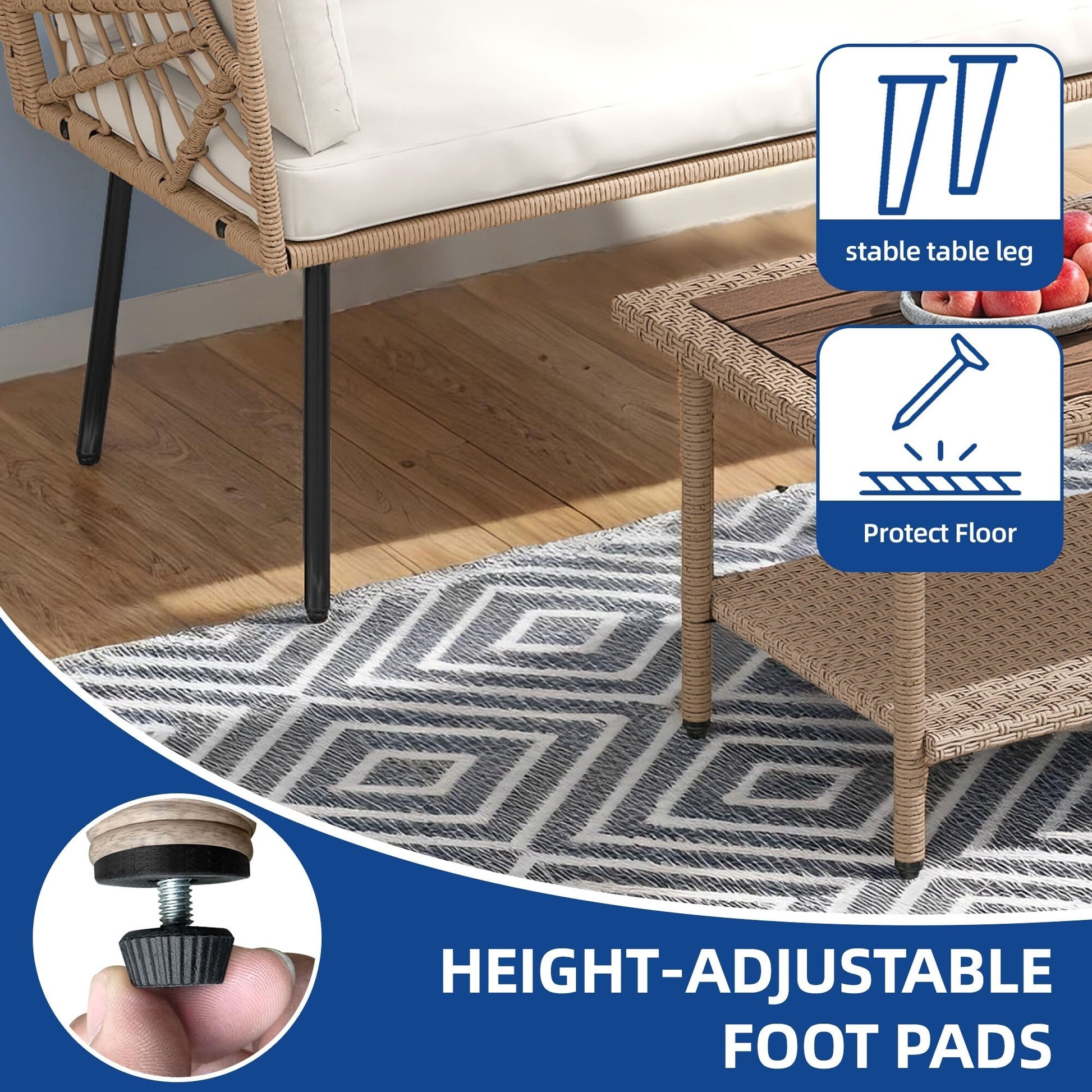 Introducing our stylish 2-piece patio furniture set - the perfect addition to any outdoor space. This set includes an all-weather wicker loveseat with thick cushions and a rattan coffee table.Designed to withstand any weather, this conversation set can be placed on your patio, balcony, backyard, deck, or by the poolside.The rattan coffee table offers a convenient spot for drinks and snacks as you relax in the comfortable loveseat, which is equipped with thick cushions for ultimate comfort.Built with durability in mind, the all-weather wicker ensures that this set will last for years to come, resisting both the elements and everyday wear and tear.Enhance your outdoor space with our stylish and functional 2-piece patio furniture set. Transform your outdoor area into a cozy and inviting retreat today.